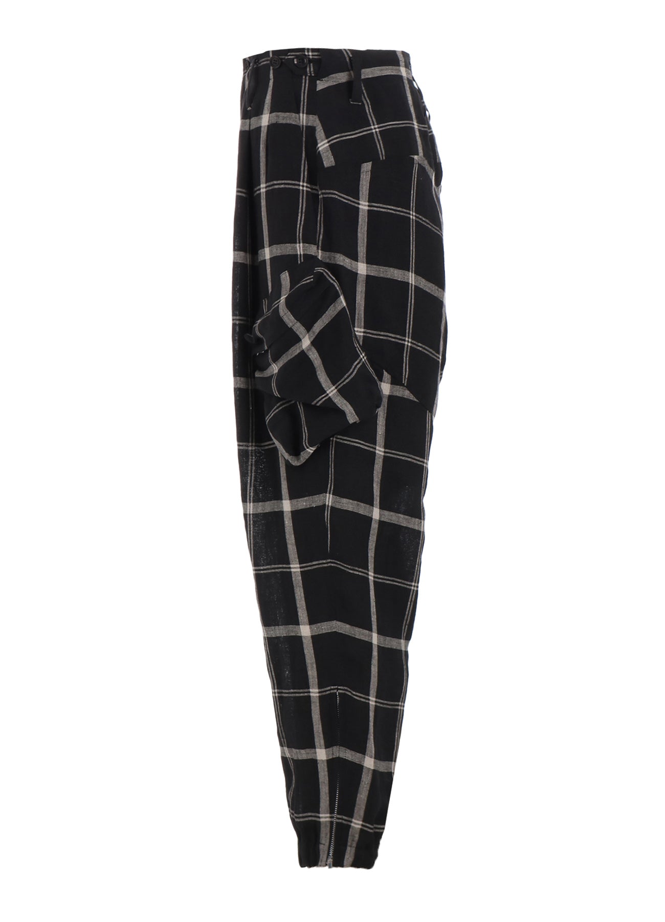 LINEN/NYLON PLAID ZIP POCKET PANTS
