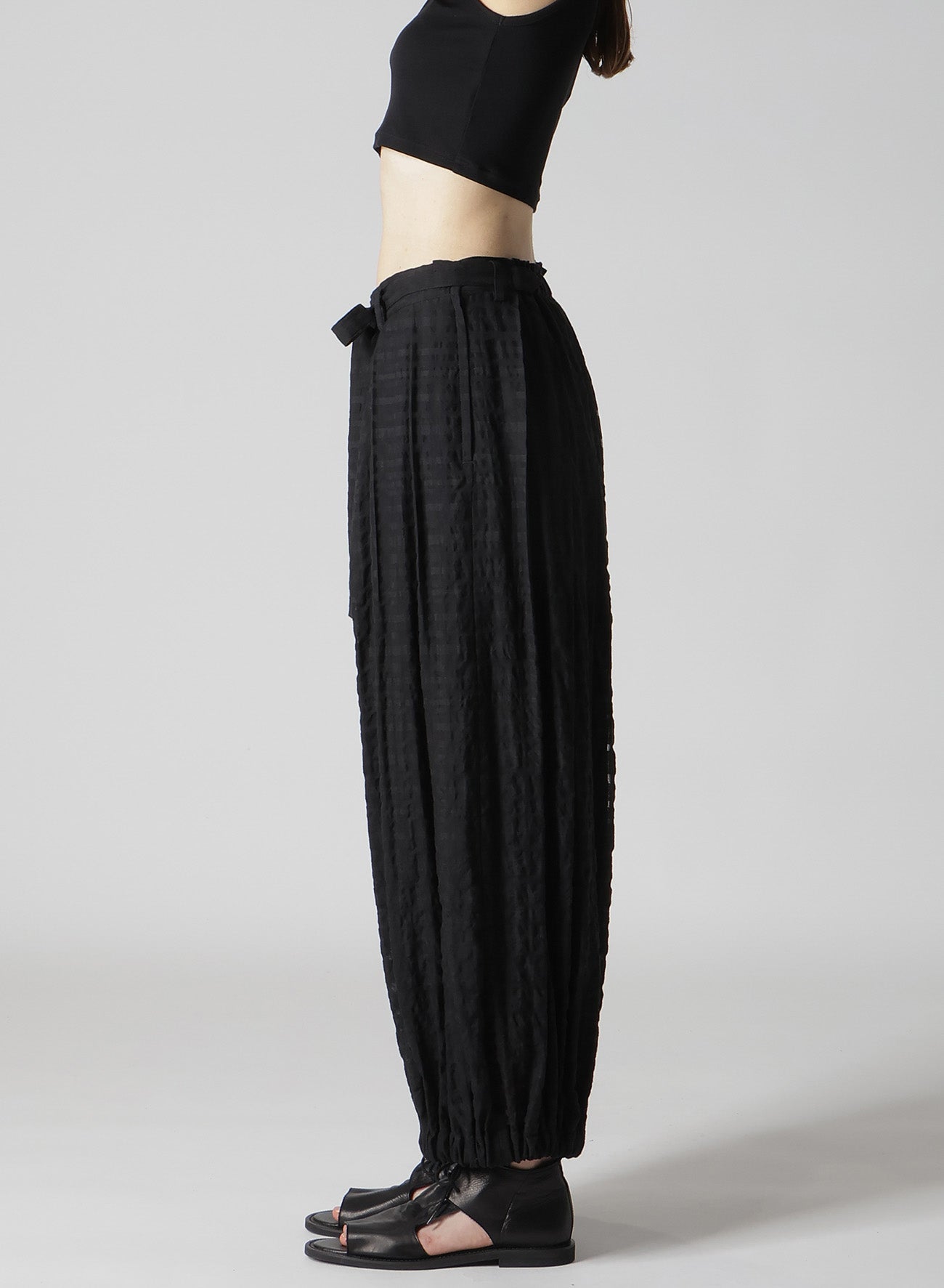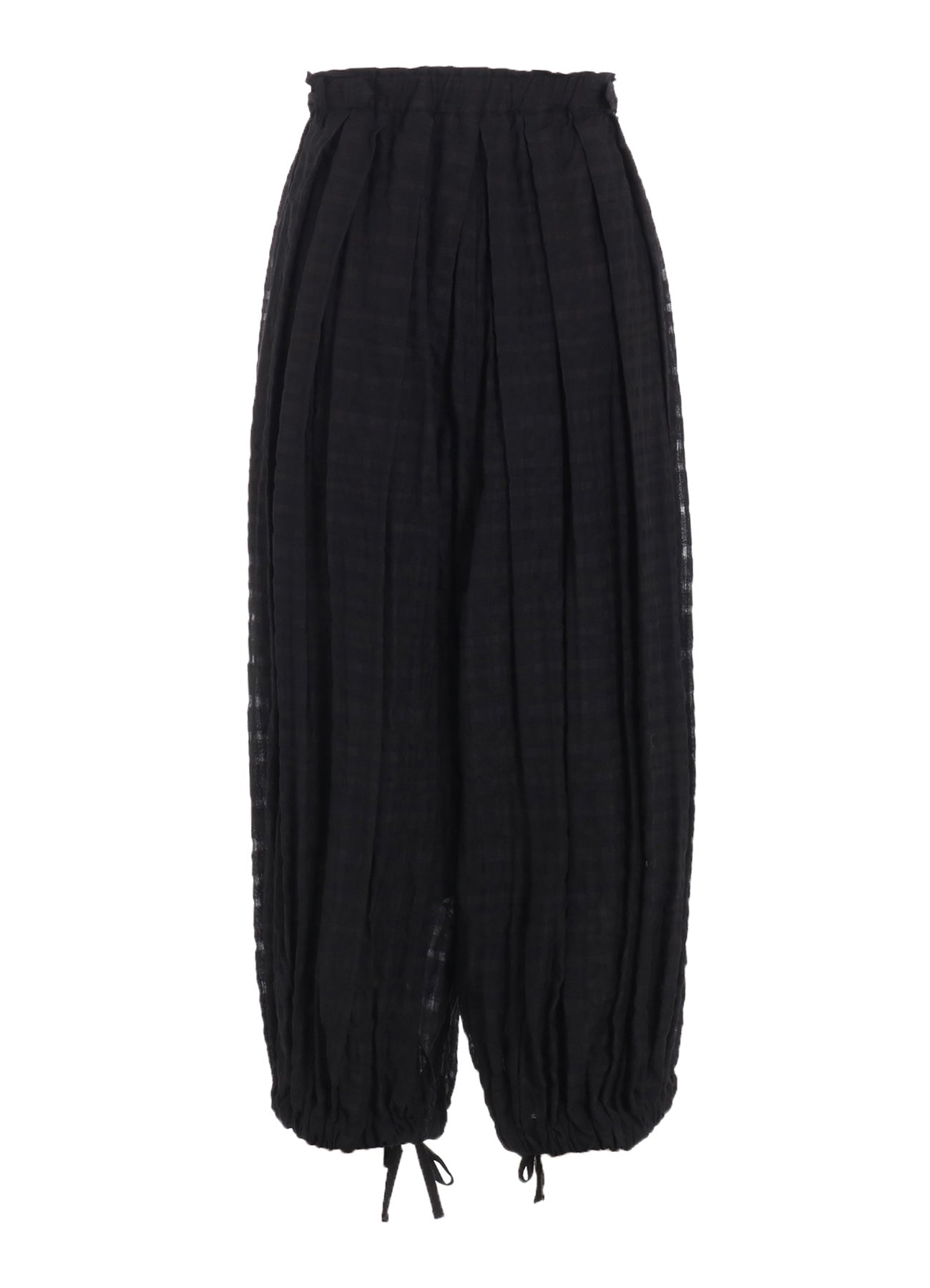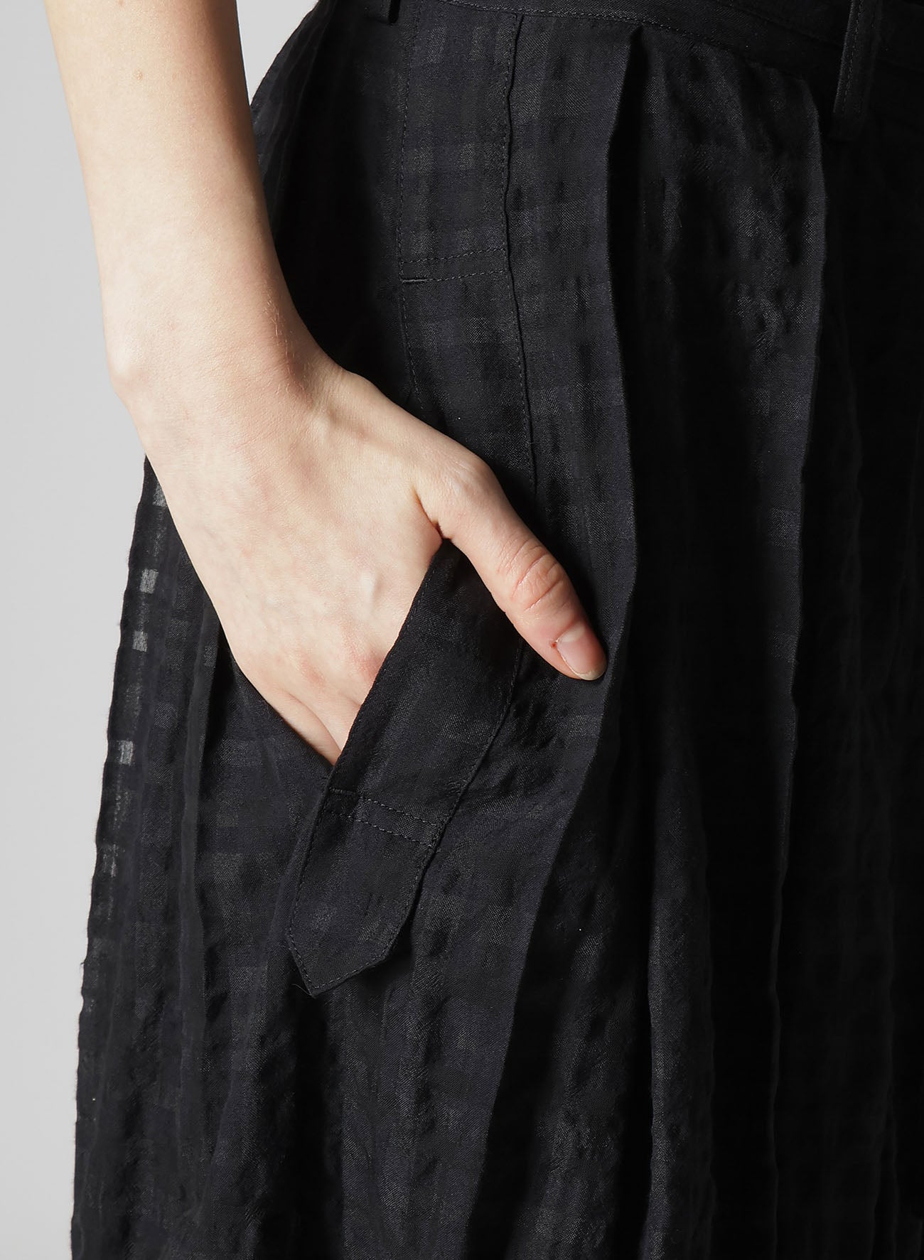 这款褶皱裤装采用针织方式呈现Glen plaid图案,丝质混合材质增加光泽和透明度。腰线简洁,材质丰富,裤脚可通过抽绳调整。后腰松紧设计提升舒适感。因喷雾处理,每个产品纹理略有不同。