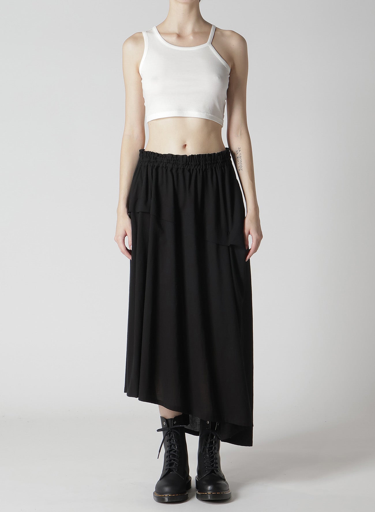 这款不对称裙采用Viyella棉制成,拥有柔软的泡泡状质感。侧面设计有大褶,形成不对称长度。弹性腰部设计佩戴方便,提供时尚独特外观。 - 柔软泡泡质感采用Viyella棉 - 不对称设计配大侧褶 - 弹性腰部便于穿戴 - 提供时尚独特外观