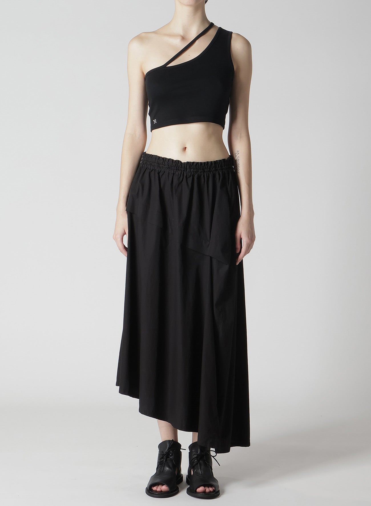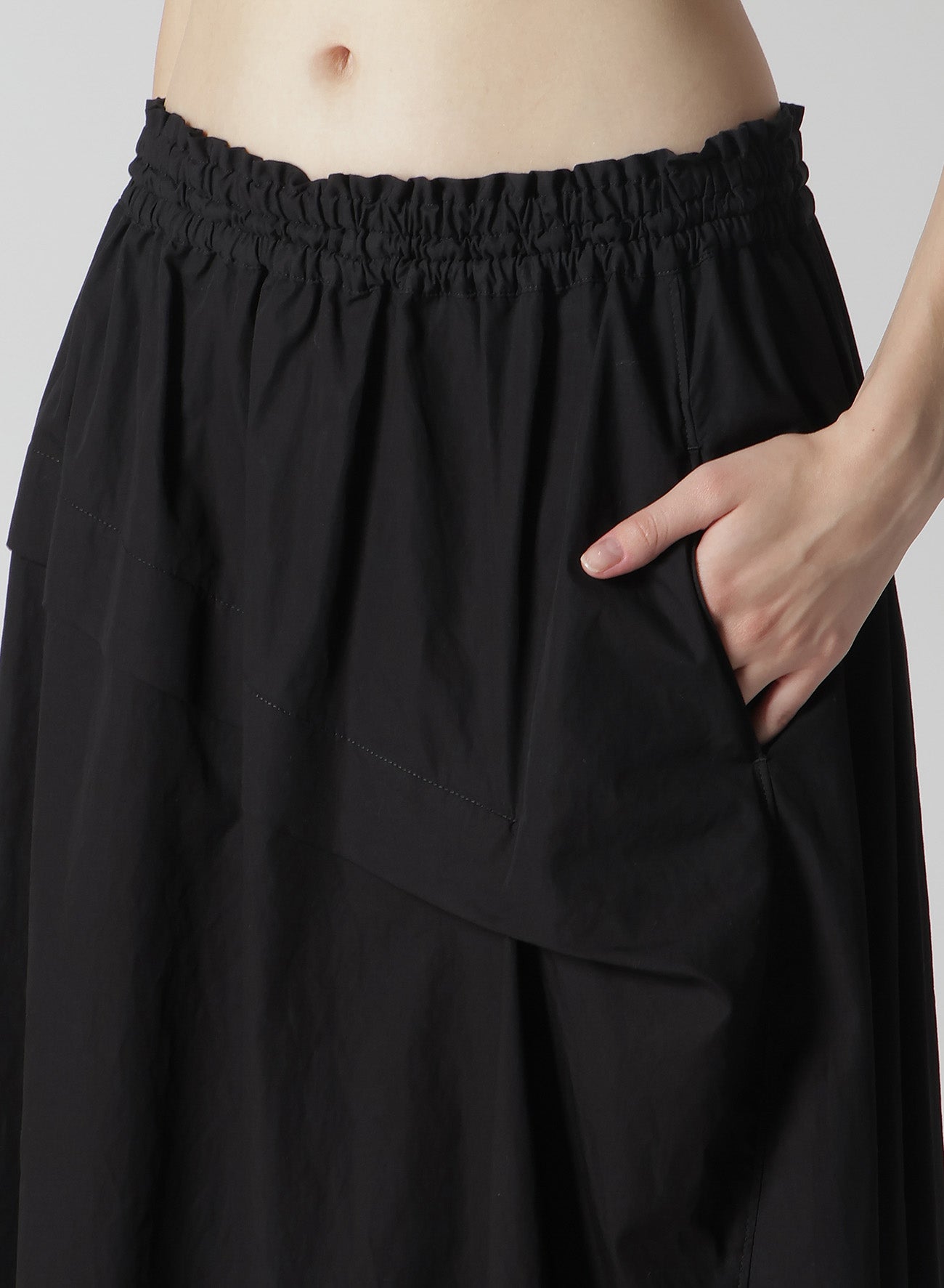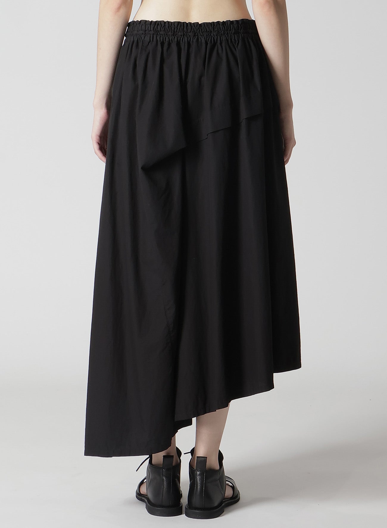 COTTON BROAD GARMENT DYEING RIGHT TUCKED ASYMMETRIC SKIRT