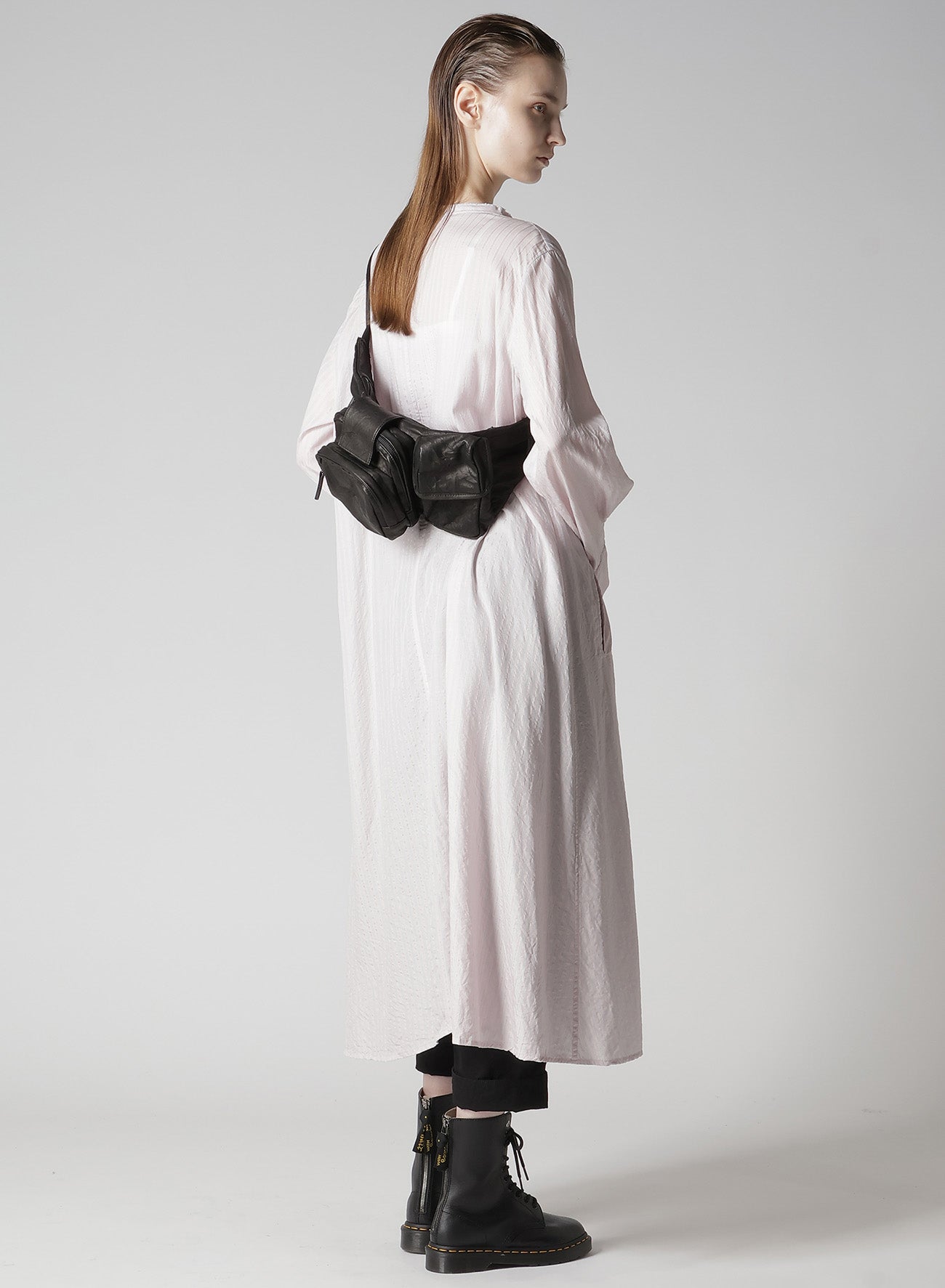 The crossbody bag is crafted from soft leather with a natural wrinkled texture, featuring an accentuated design with spacious outer pockets for added utility. Due to the leather's characteristics, slight color fading might occur with perspiration or friction.