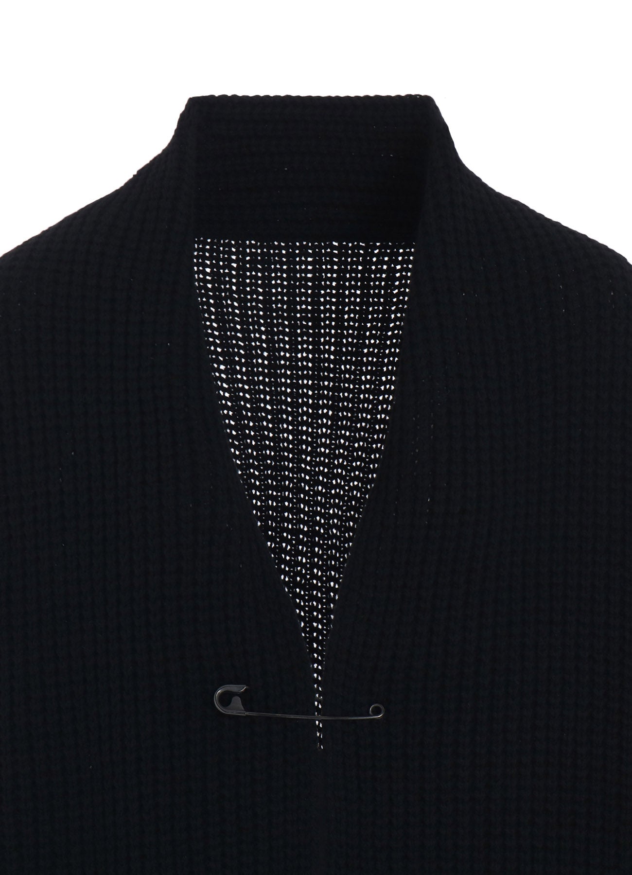 受2003年巴黎秋冬时装秀启发,Y's推出全新针织系列。此款短款毛衣为中长款样式,长袖设计。可通过别针搭配营造随性风格。