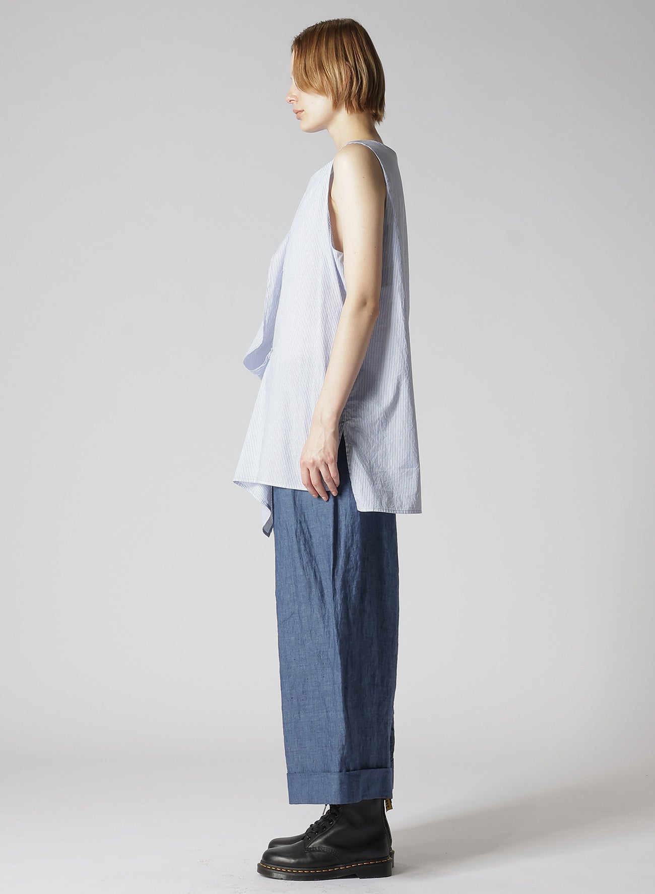 COTTON STRIPE FRONT DRAPE BLOUSE