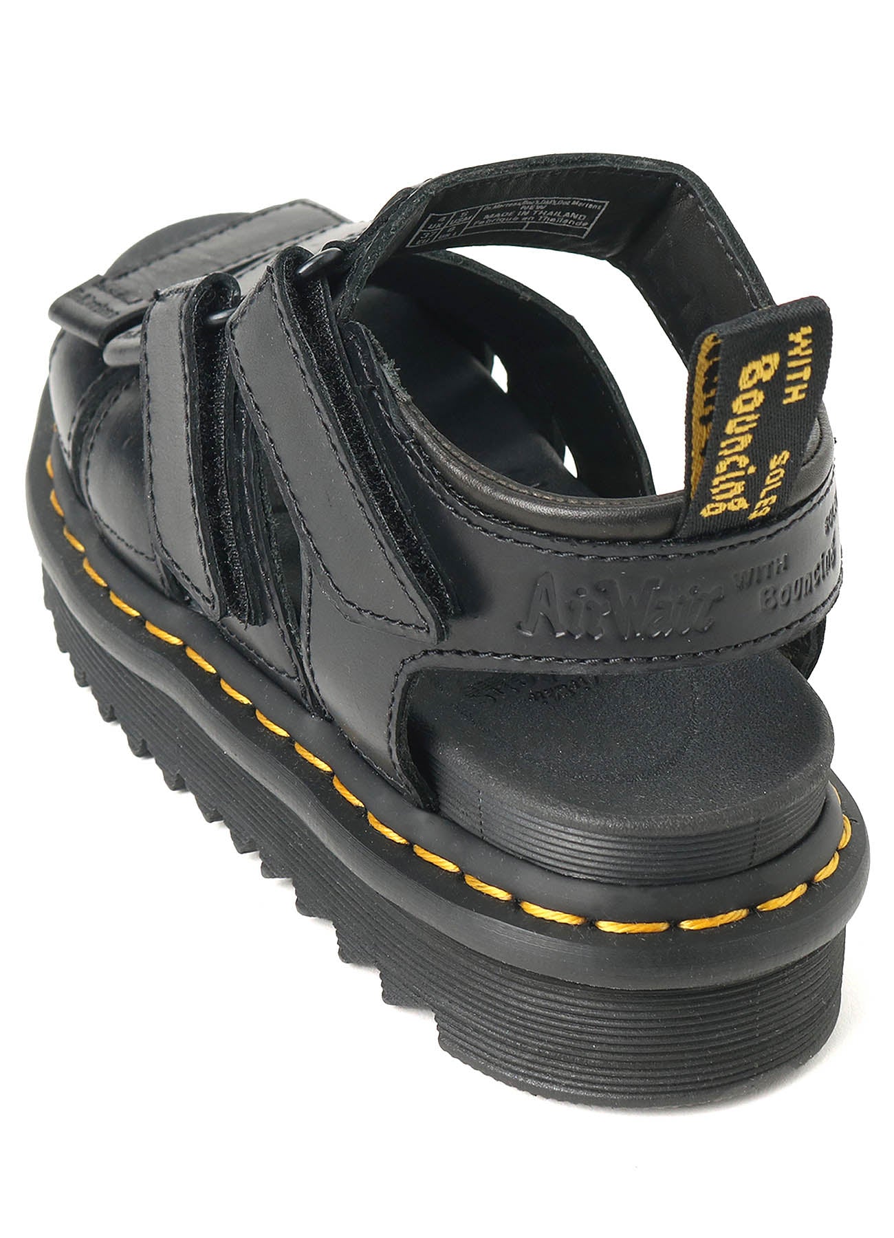Y’s × Dr. Martens "BLAIRE Y's" 设计采用魔术贴带,使用方便且舒适,配有轻便的 "ZEBRILUS" 鞋底。它保留了独特的 "AirWair" 鞋跟环和黄色缝线。可调节的带子提供良好的贴合度,使其在温暖季节实用。
