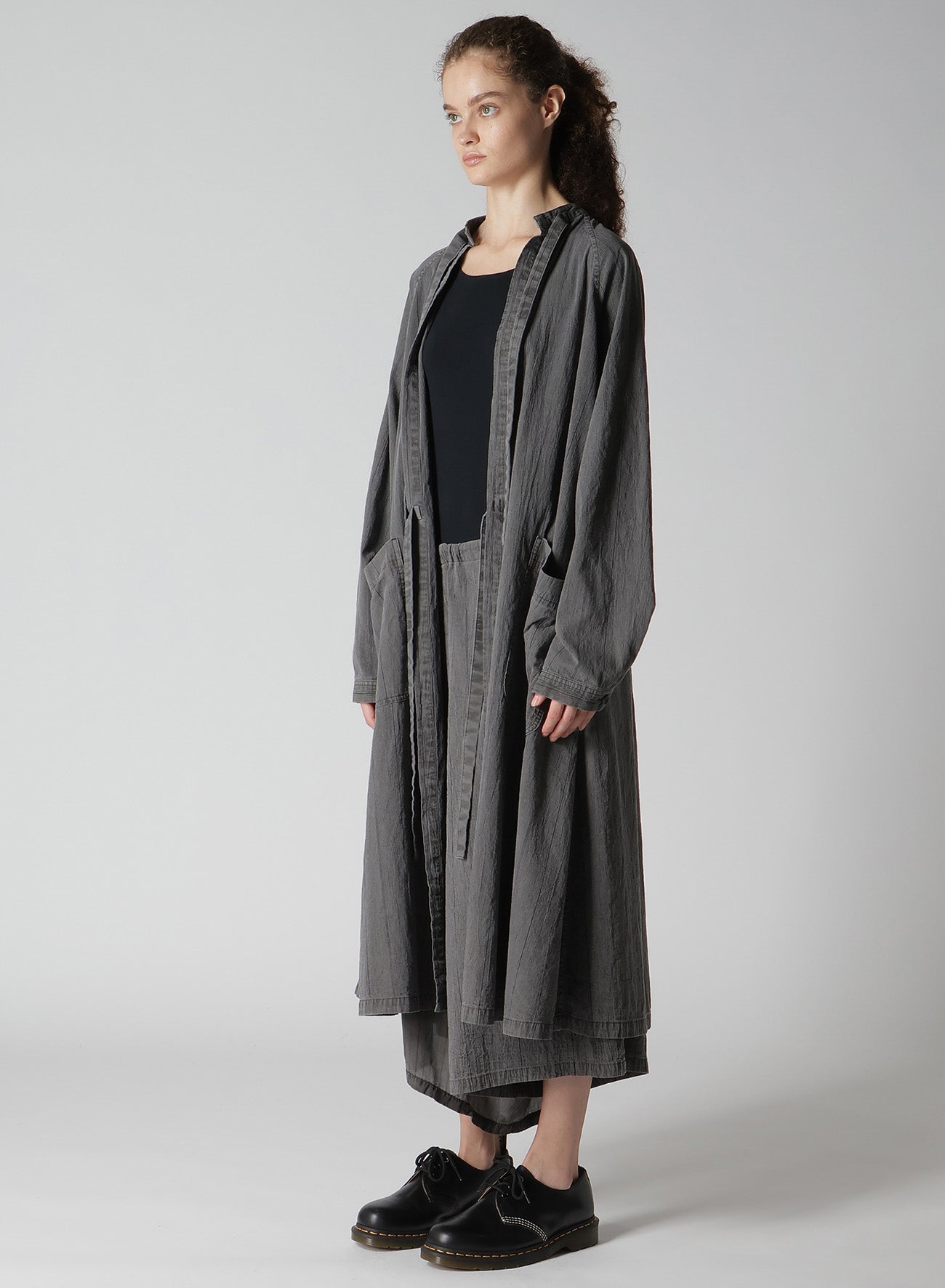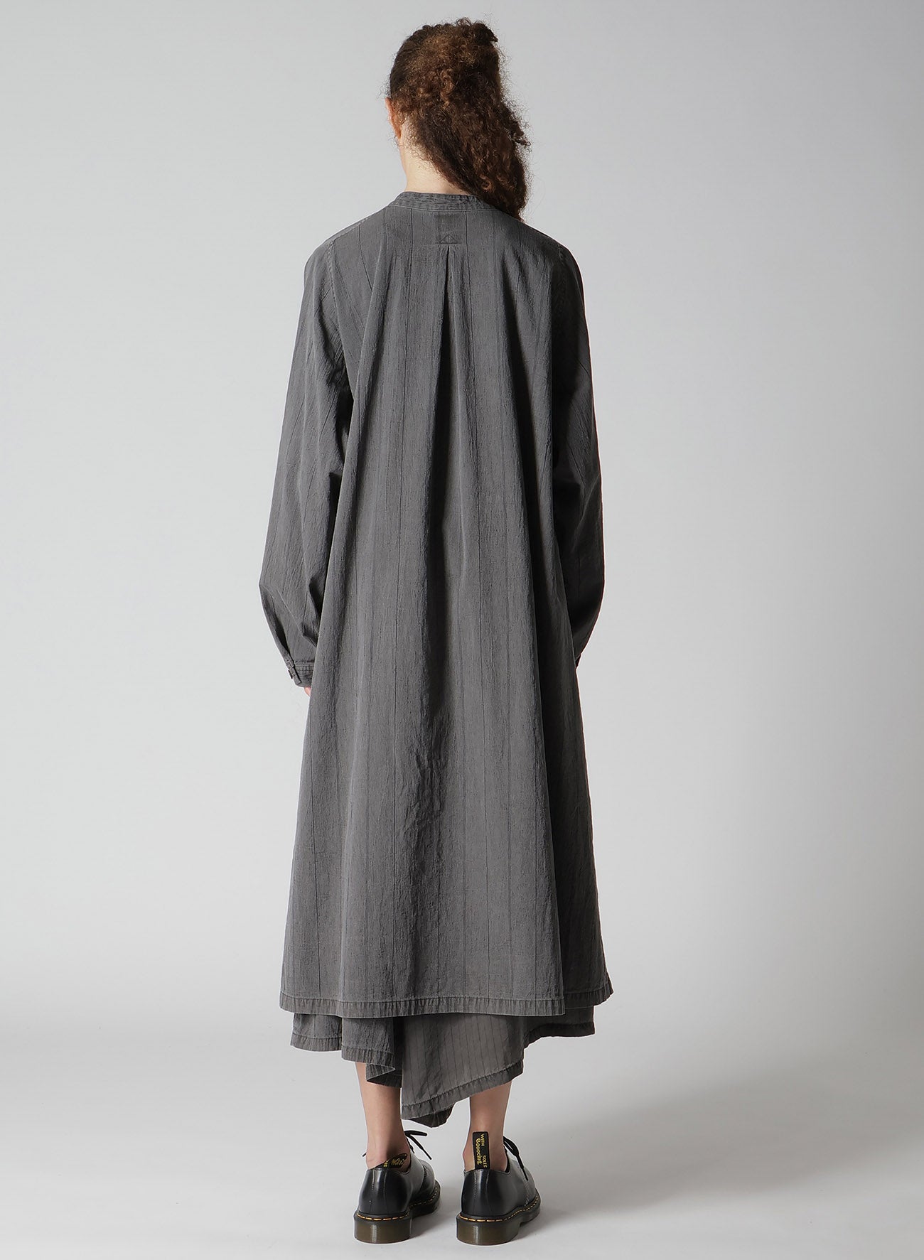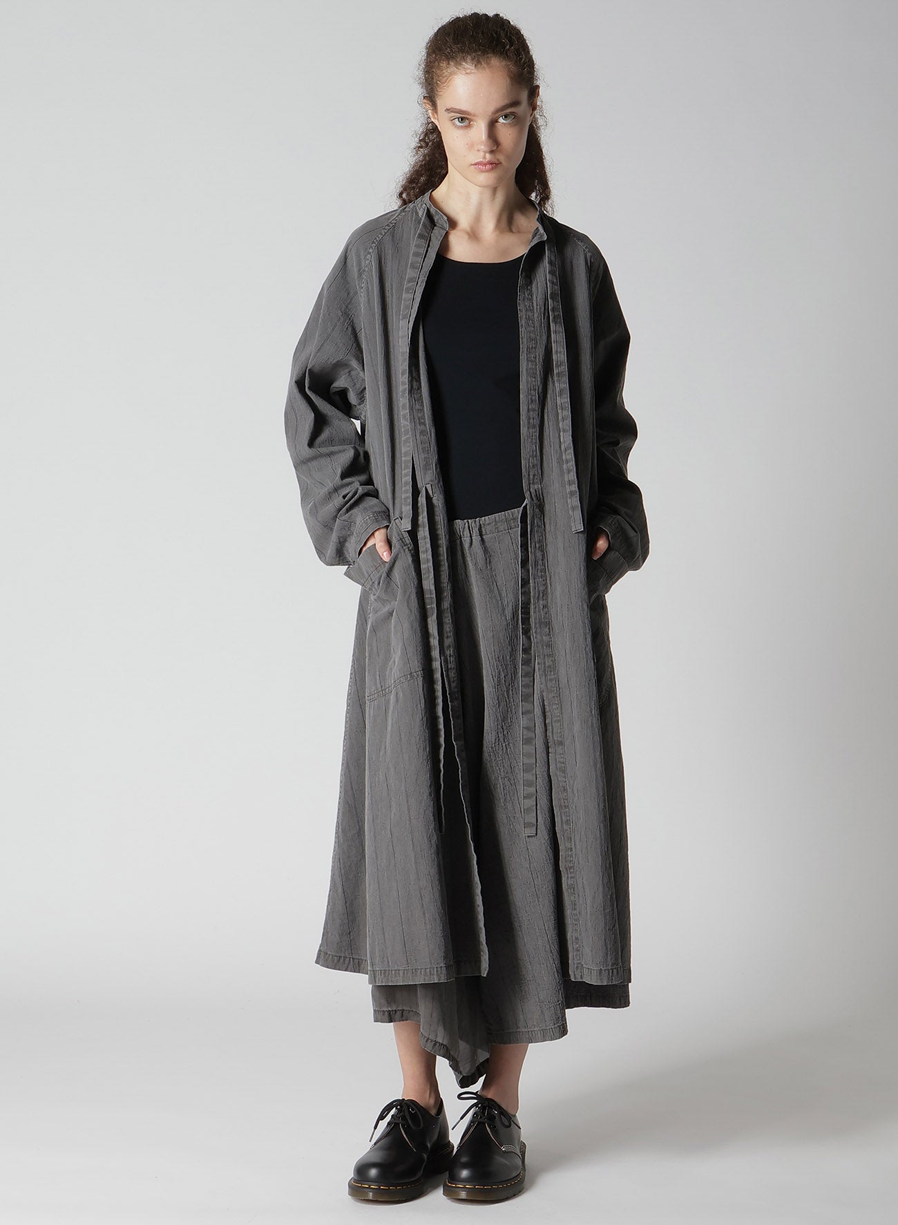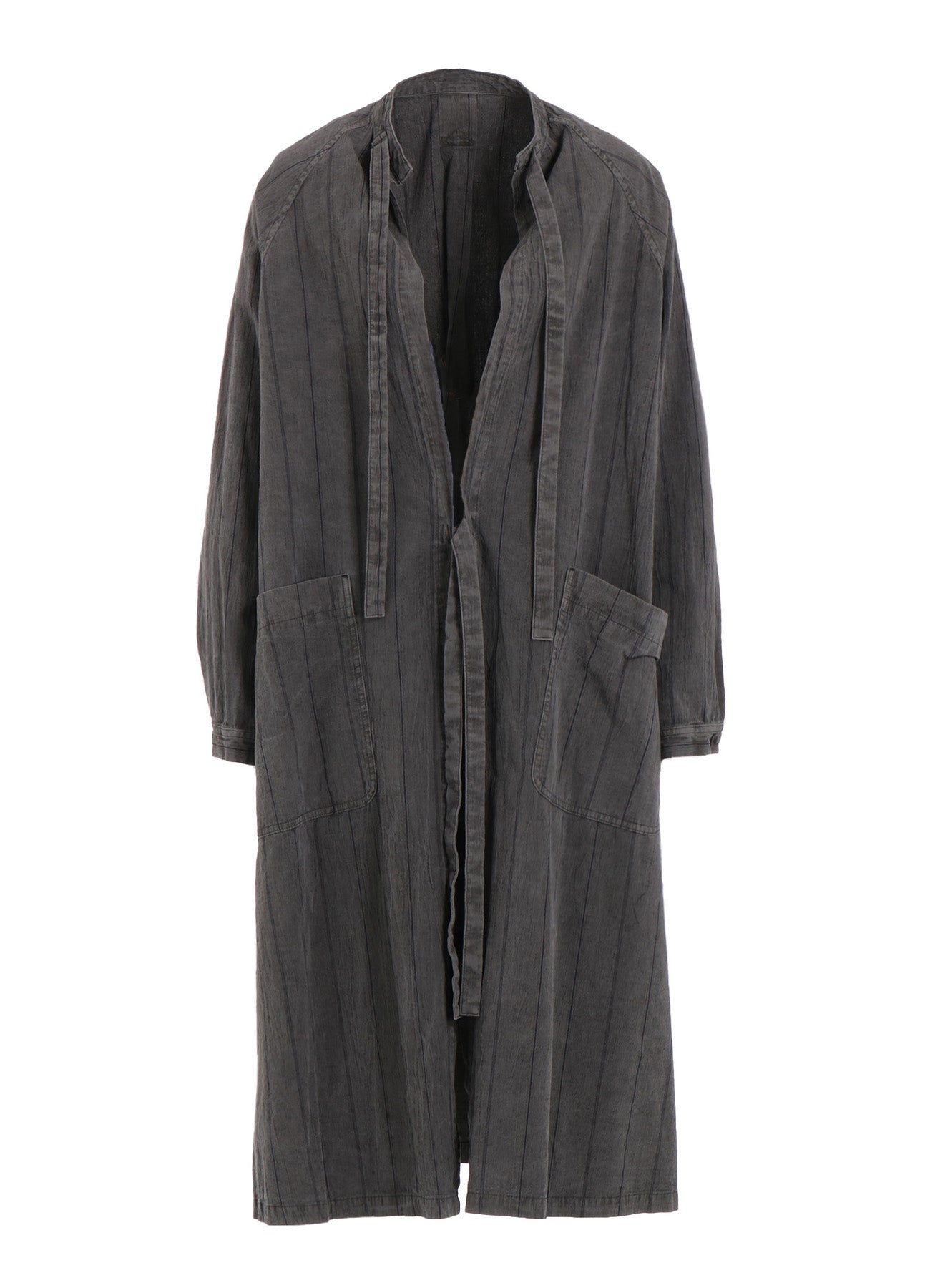 有机棉条纹手术袍,复古风格,灵感来自军事手术袍,具有独特的反转图案设计。建议挂带穿着。由于颜料染色可能导致颜色渗出,务必单独清洗。每件在颜色与质感上因面料特性及加工处理而不同。
