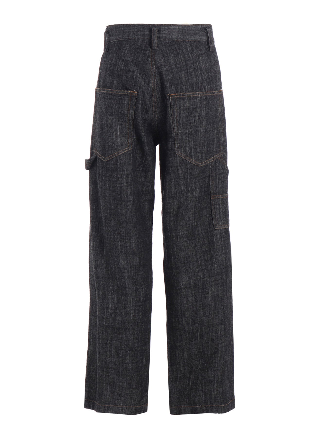 这些牛仔工作裤采用反毛纱制成,具有独特的质感和丰盈感。宽松的腰围适合臀部穿着,背部的褶皱设计则带来精致的轮廓。经过柔和水洗处理,确保舒适,可能会有细微的差异。
