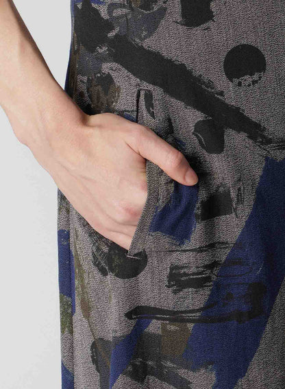 这款吊带裙以点状涂鸦为特色,使用夹花纱线织成,经纱创造出丰富的纹理色彩。整齐排列的点与动感的涂鸦形成独特对比。裙摆呈温和的不对称轮廓,一侧更长。