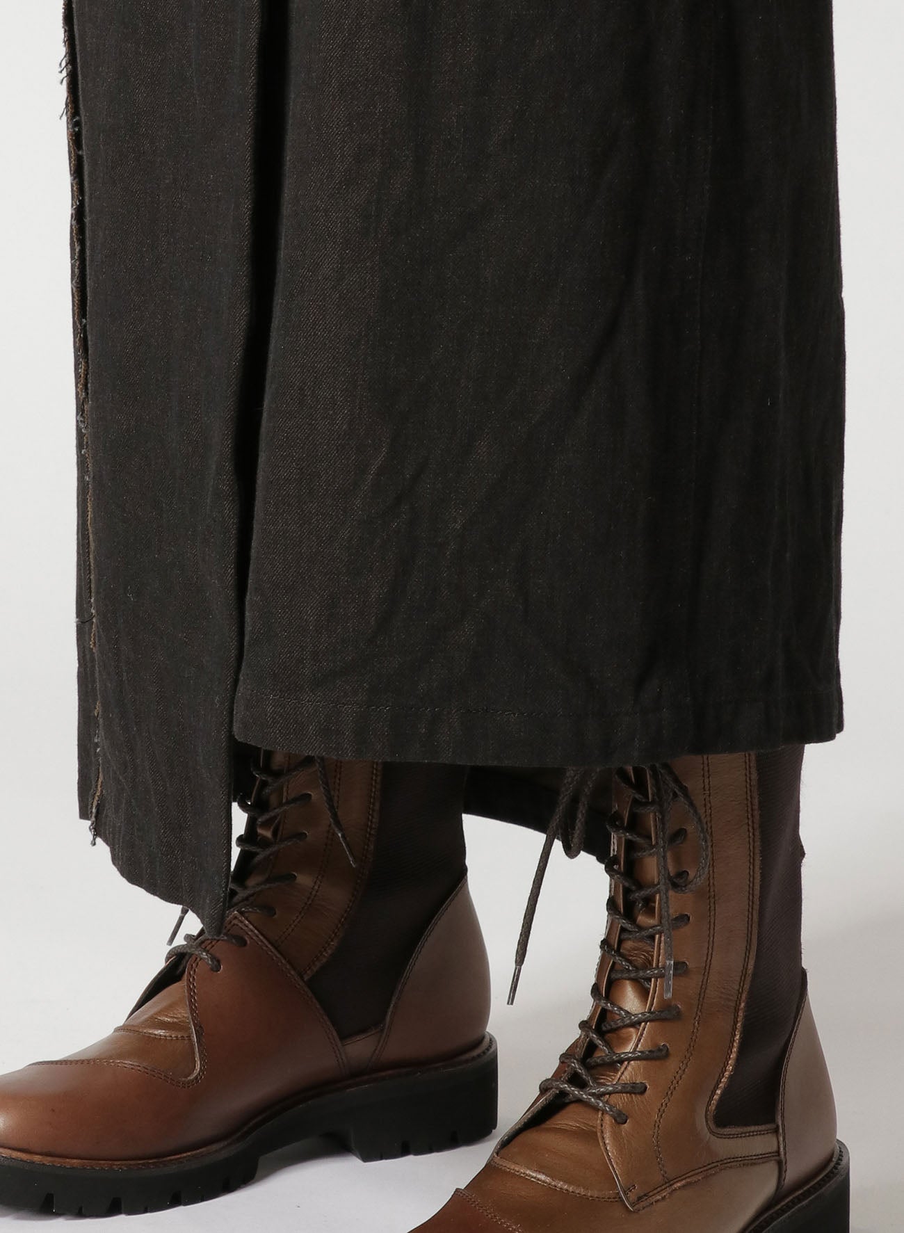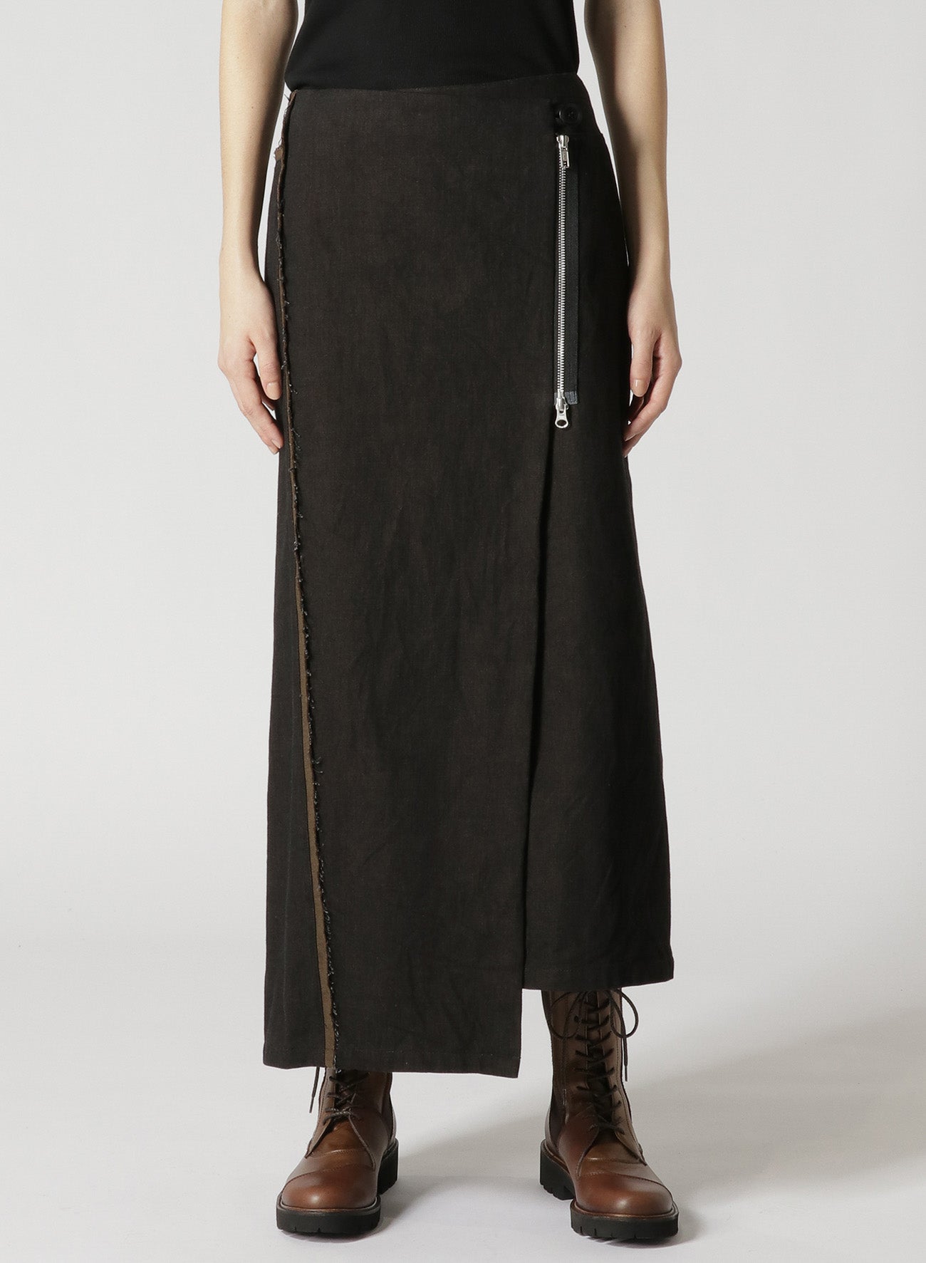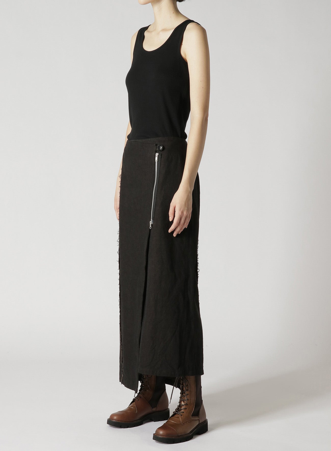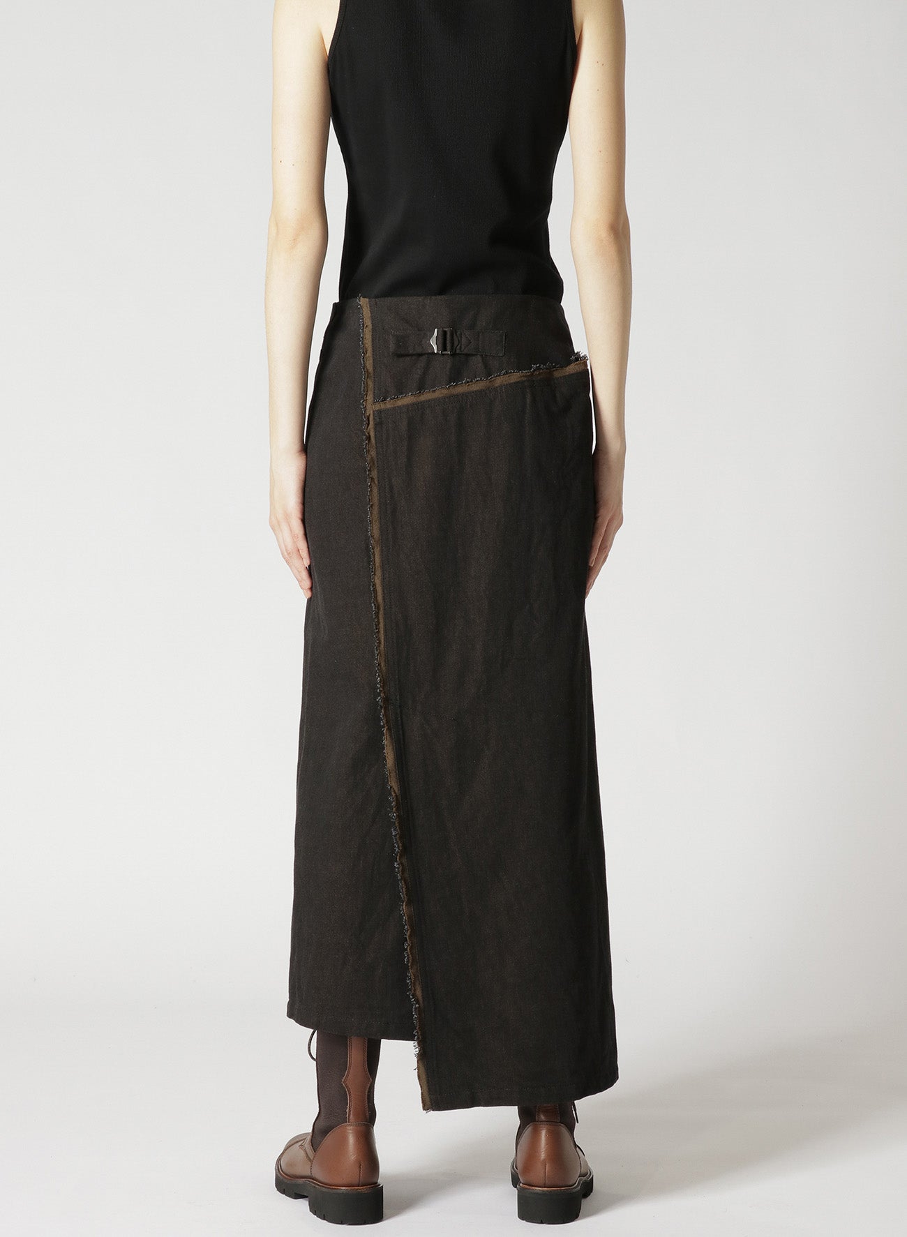 一款前后颜色不同的牛仔包裙。它的特点是适度的褪色和经过生物洗涤和石洗工艺处理后的柔软质感。后面的生边面料增添了动感的点缀。它具有直筒轮廓和后口袋,使其成为多功能的日常穿着。