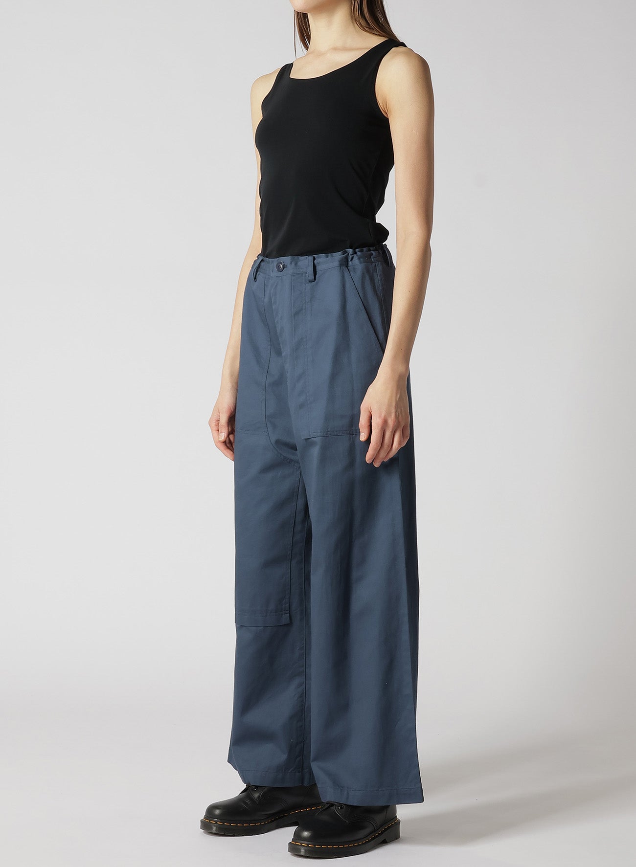 “Y's - BORN PRODUCT”系列采用从Y's档案中挑选的轮廓,采用棉质斜纹布制作。这款裤子以其舒适性和质感而闻名,宽松但干净的外观,深腰设计和可调节的绳带腰围。经过柔软洗涤,手感愉悦,可能存在个体差异。
