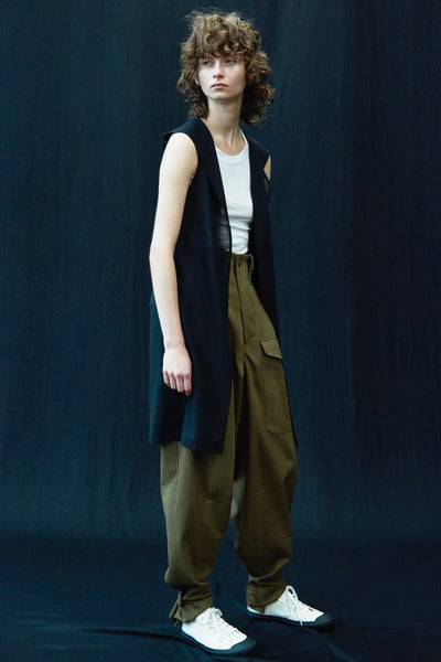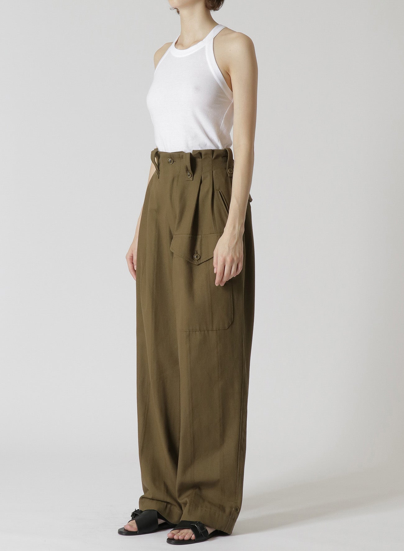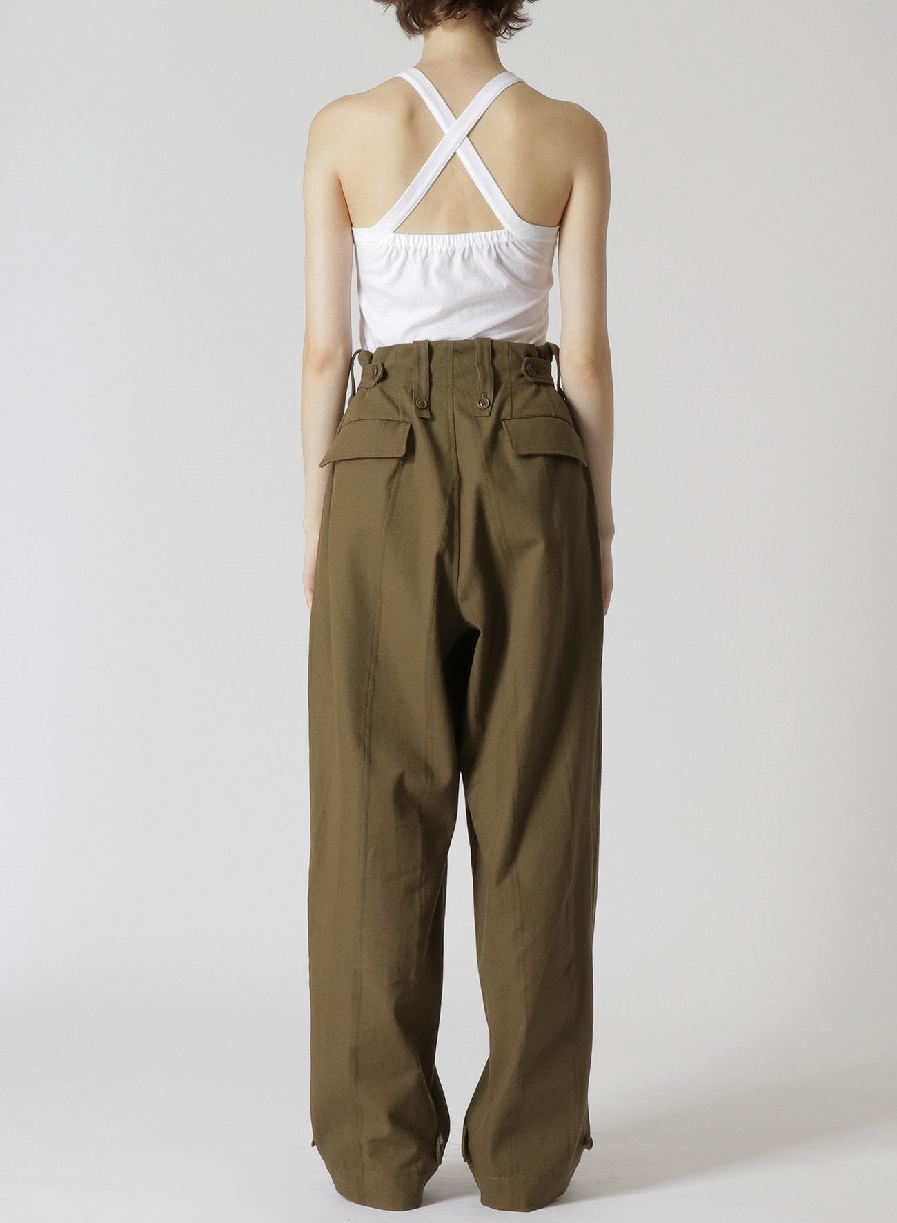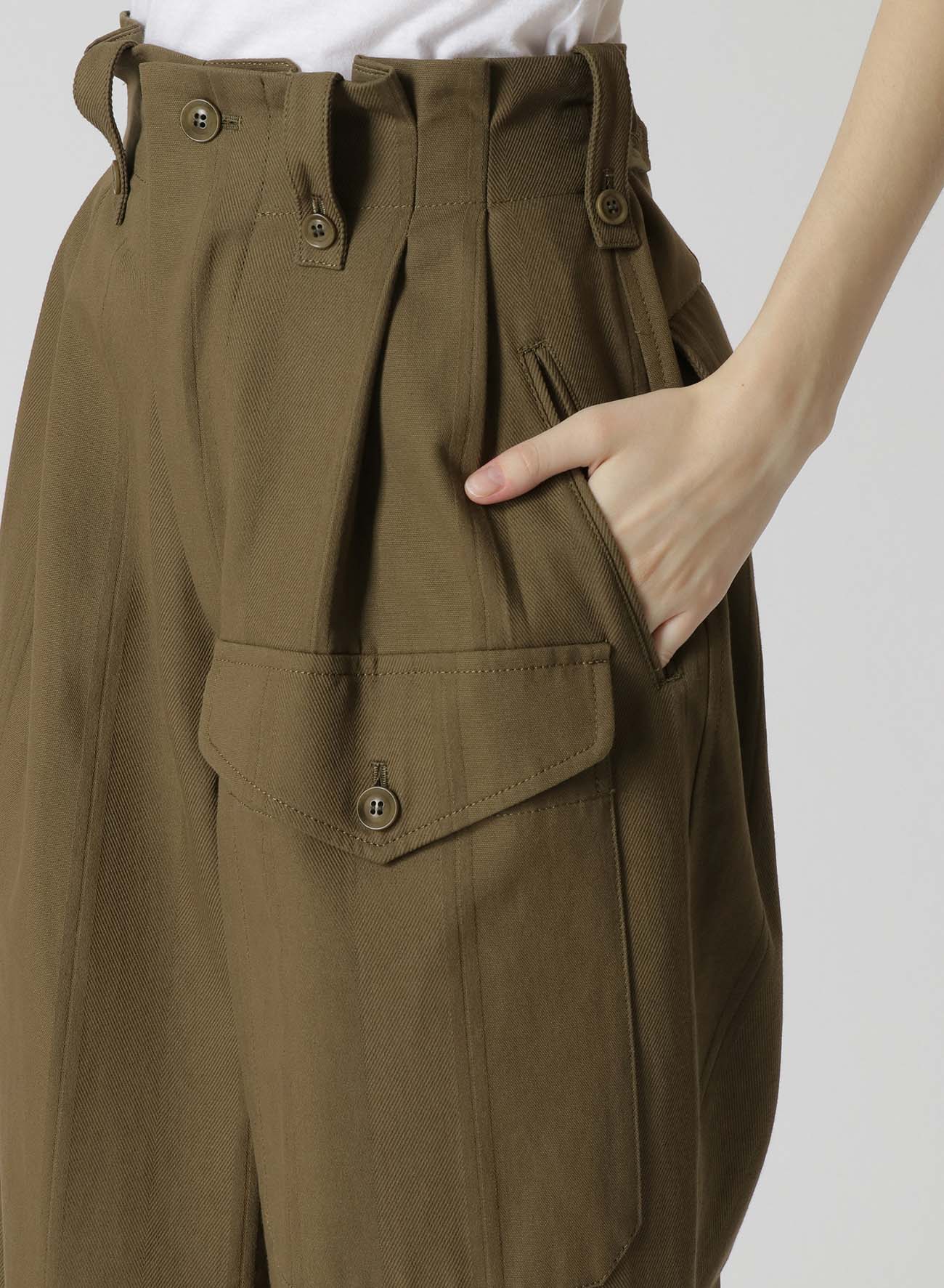 这款大口袋的工装裤采用高腰和直腿设计,搭配紧身上衣和针织品,展现干净利落的外观。略宽的军装风格剪裁,突显女性曲线,腰部的褶皱设计从纤细的腰部延伸。面料混合了人字纹、缎面和牛津织物,提供了质感和结构感。