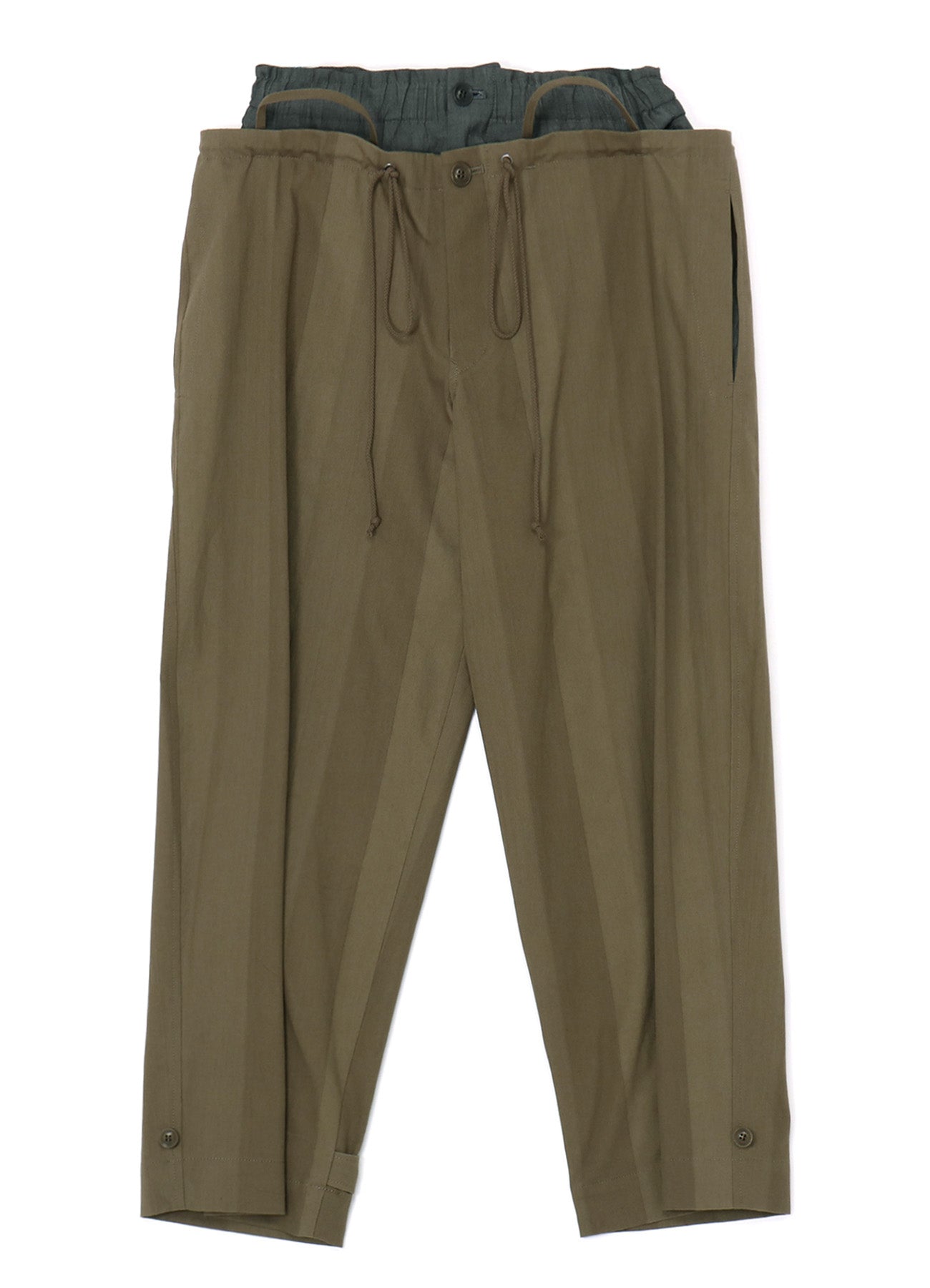 MULTI STRIPED DOBBY FABRIC UNEVENLY DYED DOUBLE LAYERED PANTS