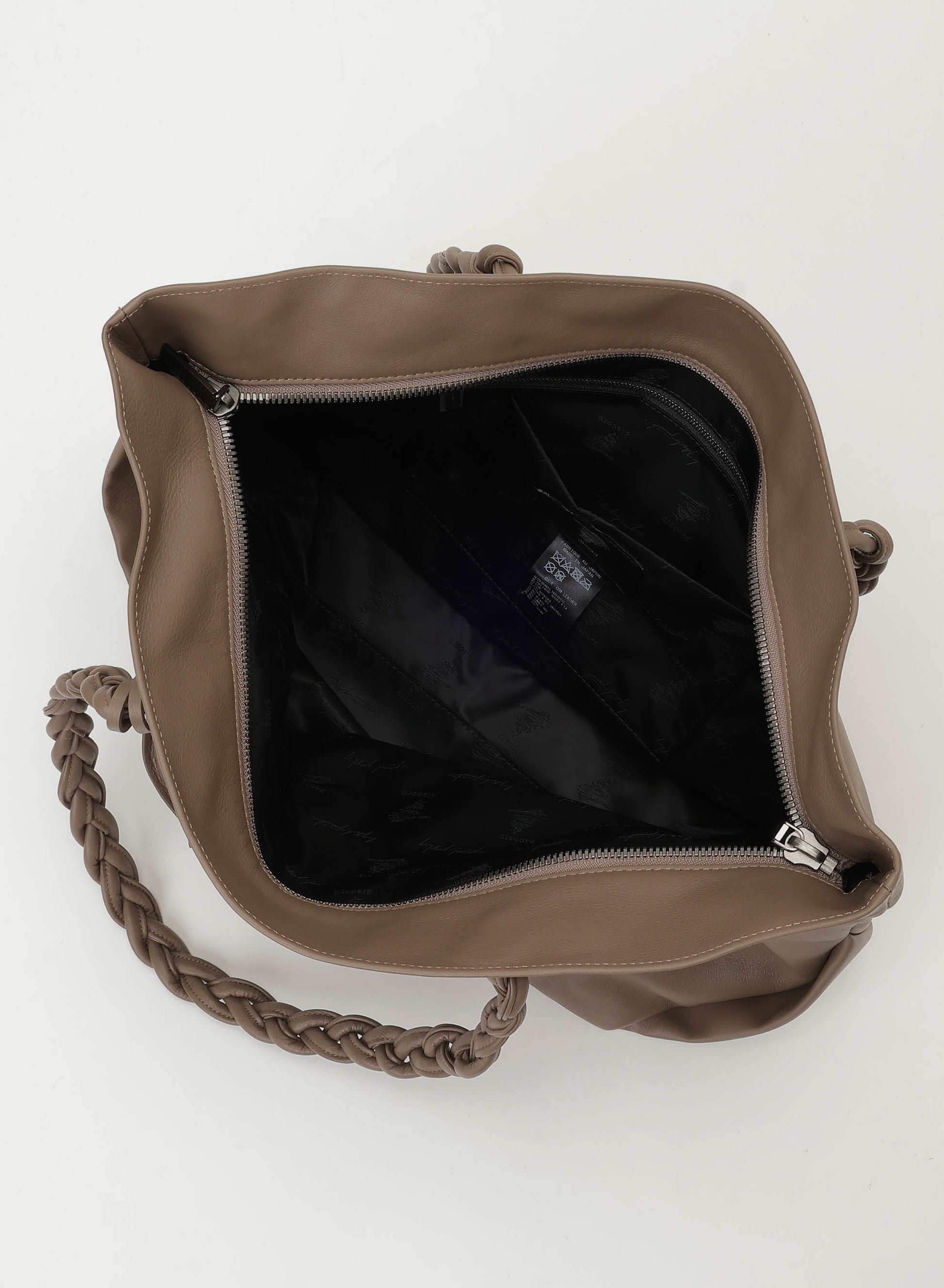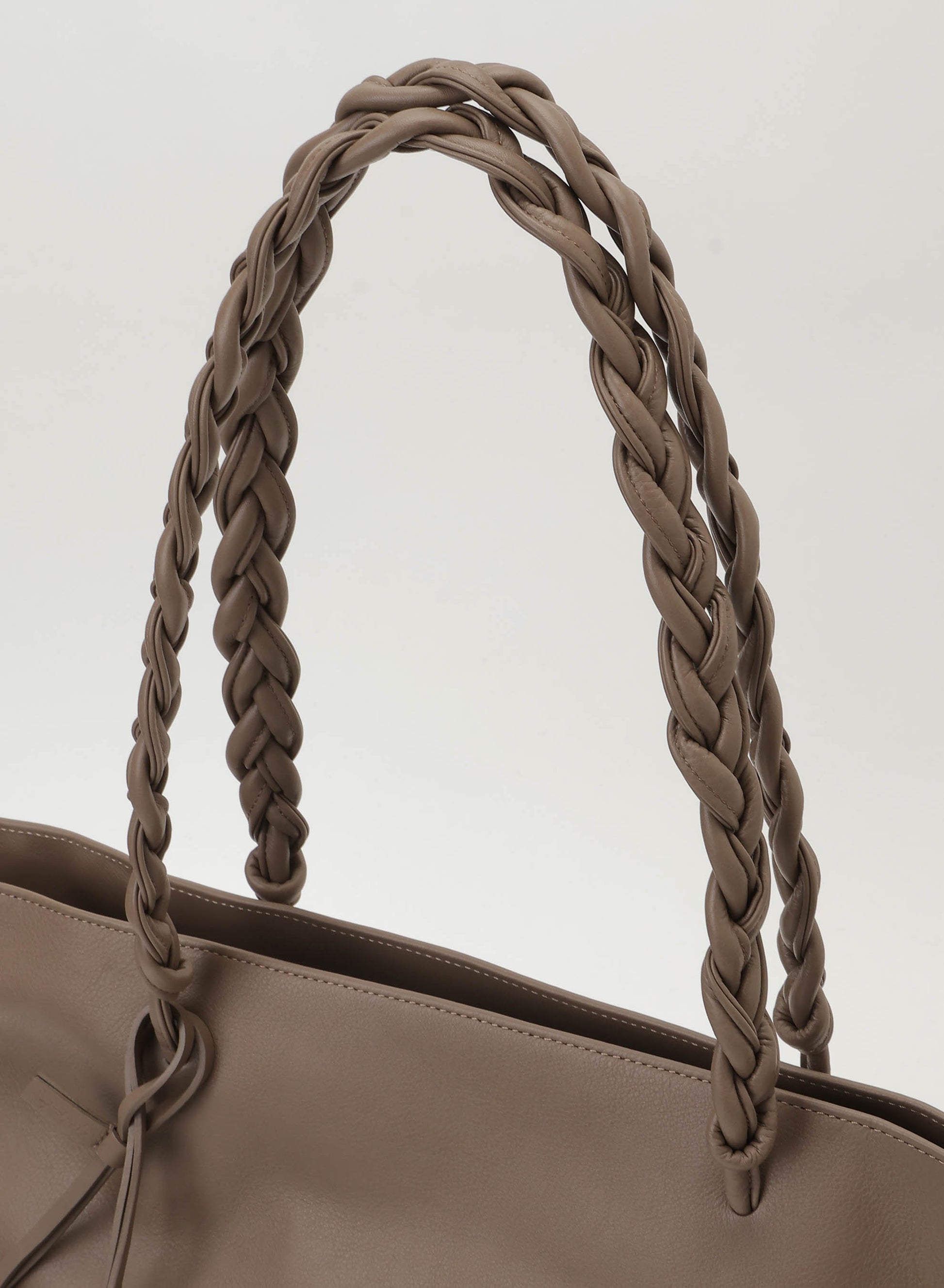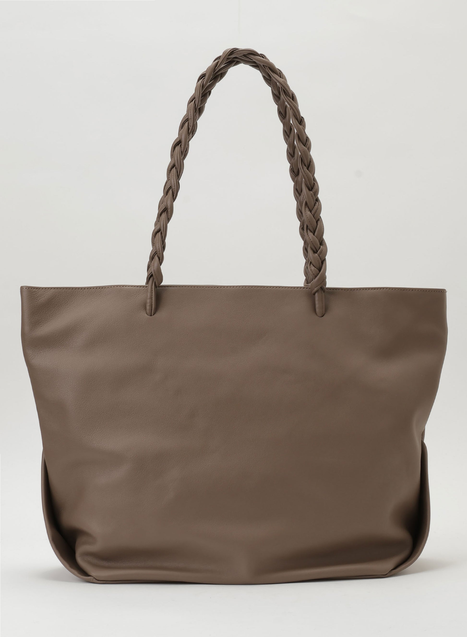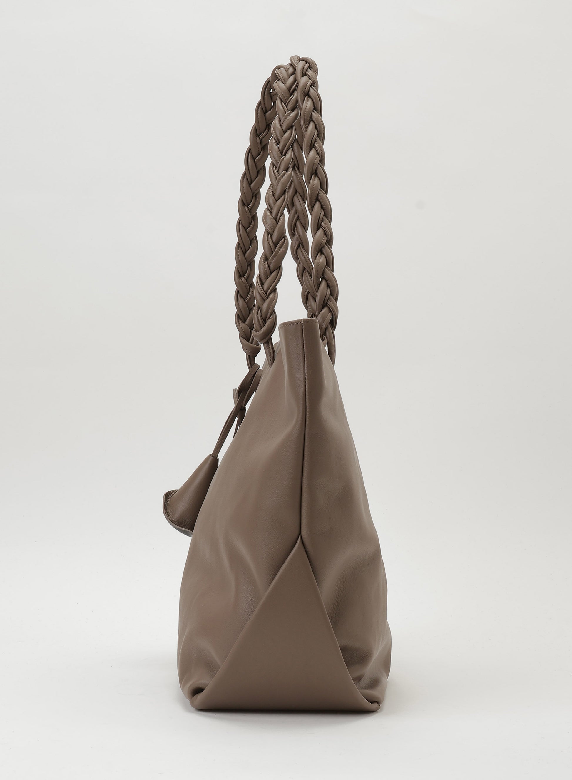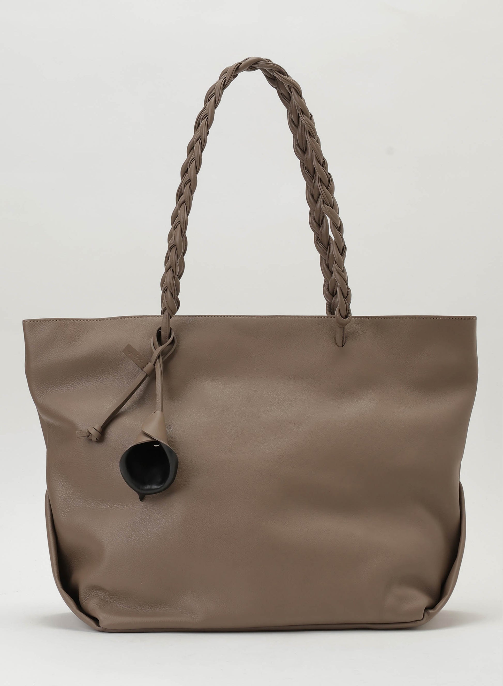 這款托特包的提把由編織皮革繩製成,為成熟的皮革增添了現代且堅固的美感,從底部到側面呈現出摺紙般的摺痕。作為discord系列的一部分,這款設計結合了獨特性和趣味性,是一款既實用又時尚的配件。