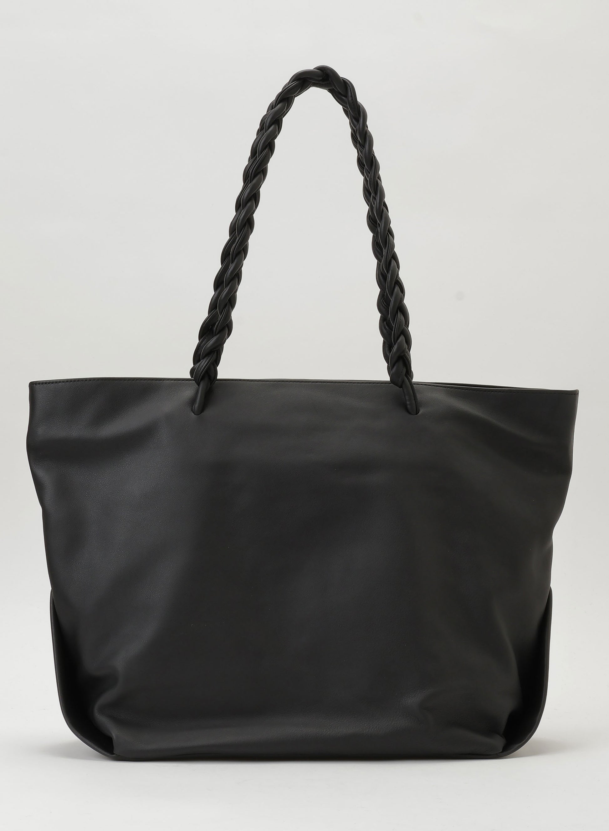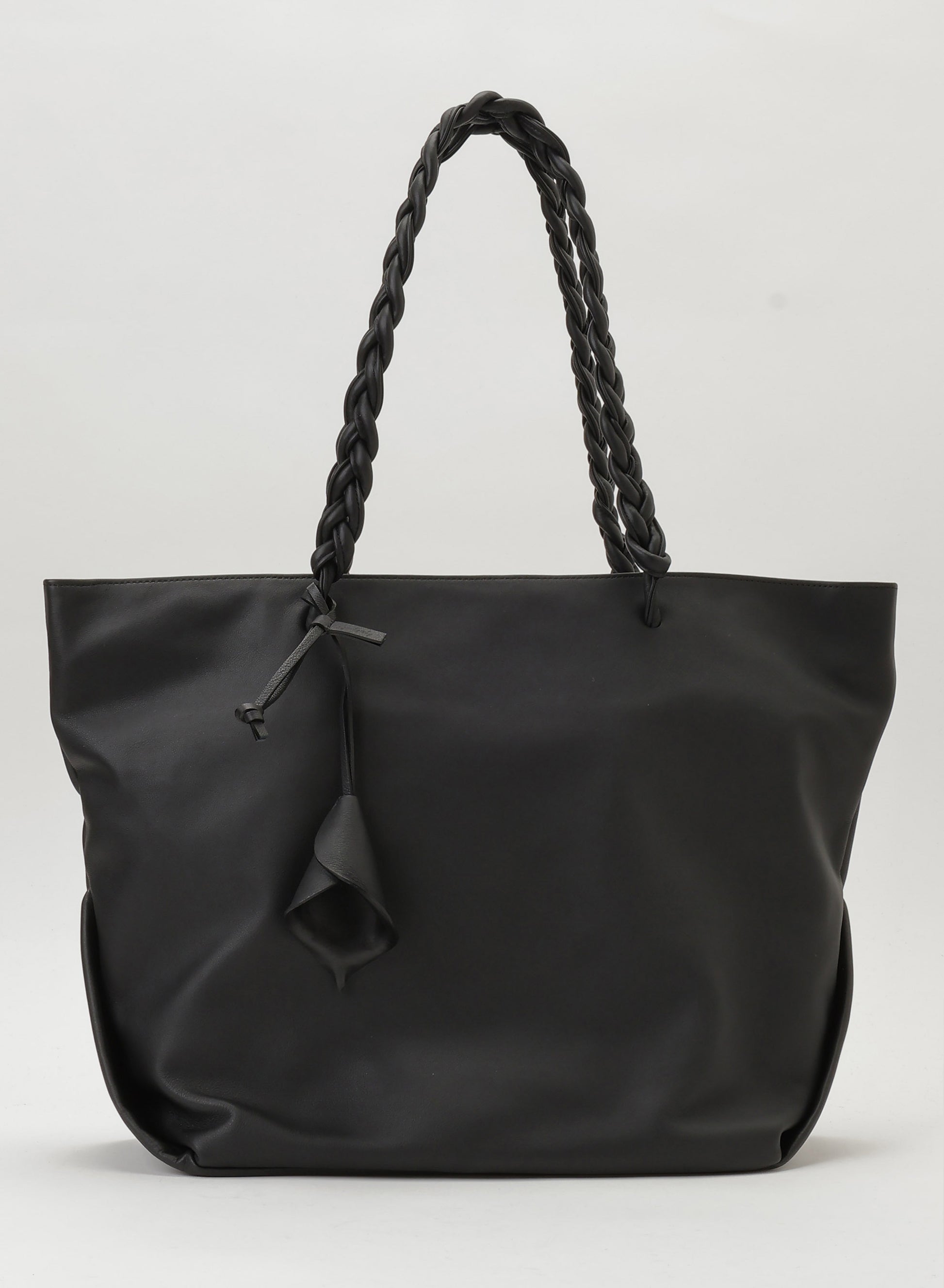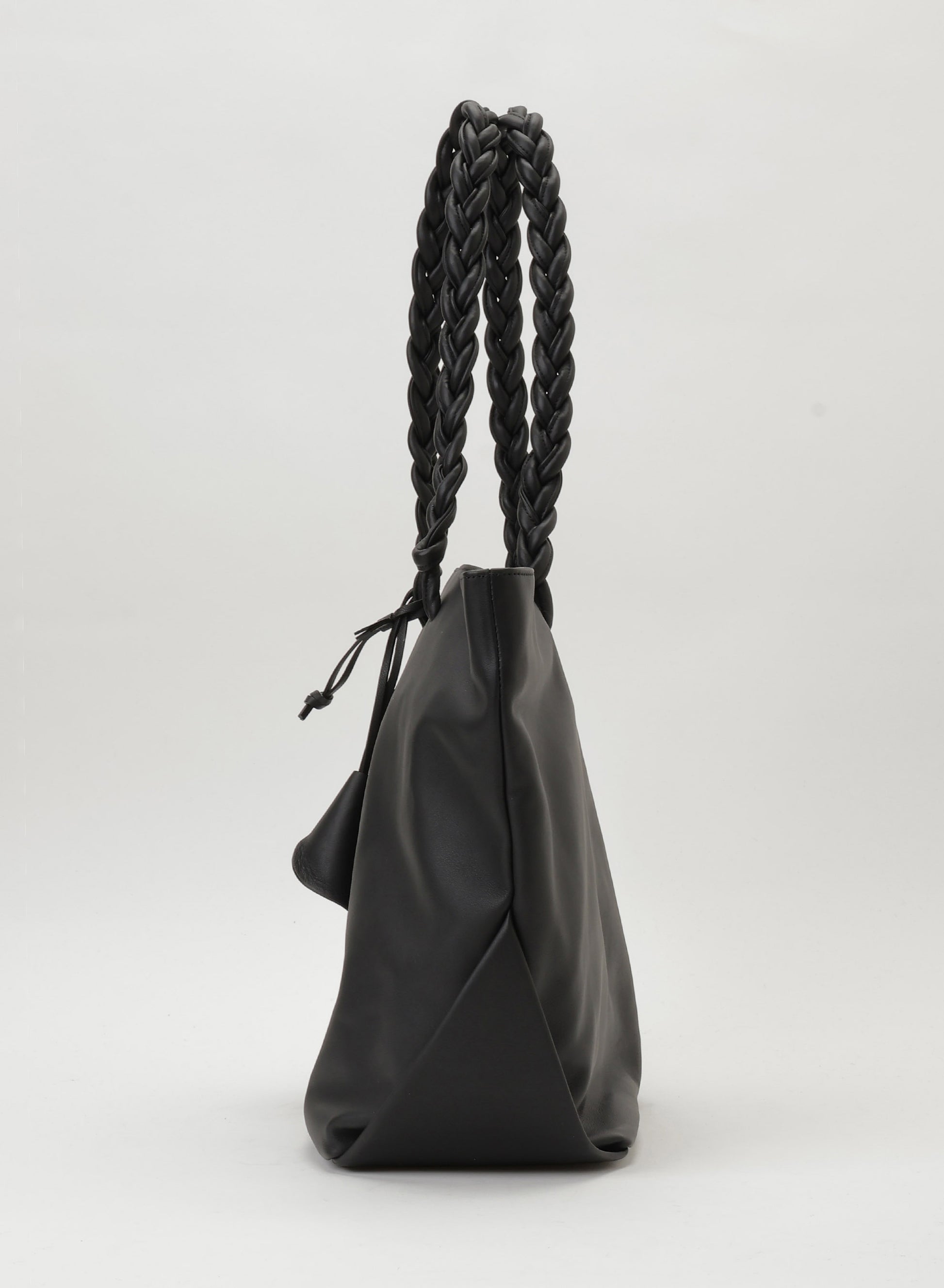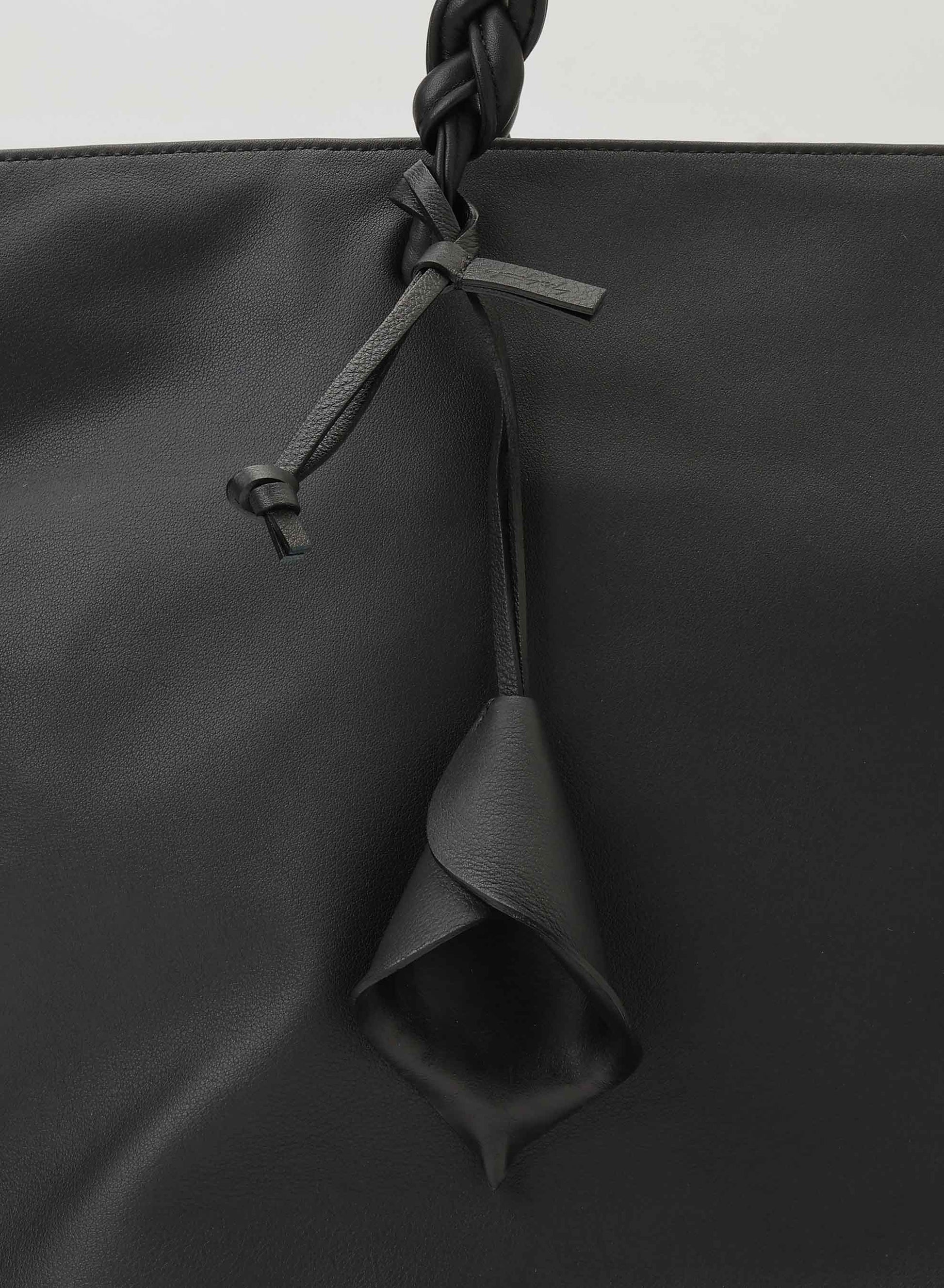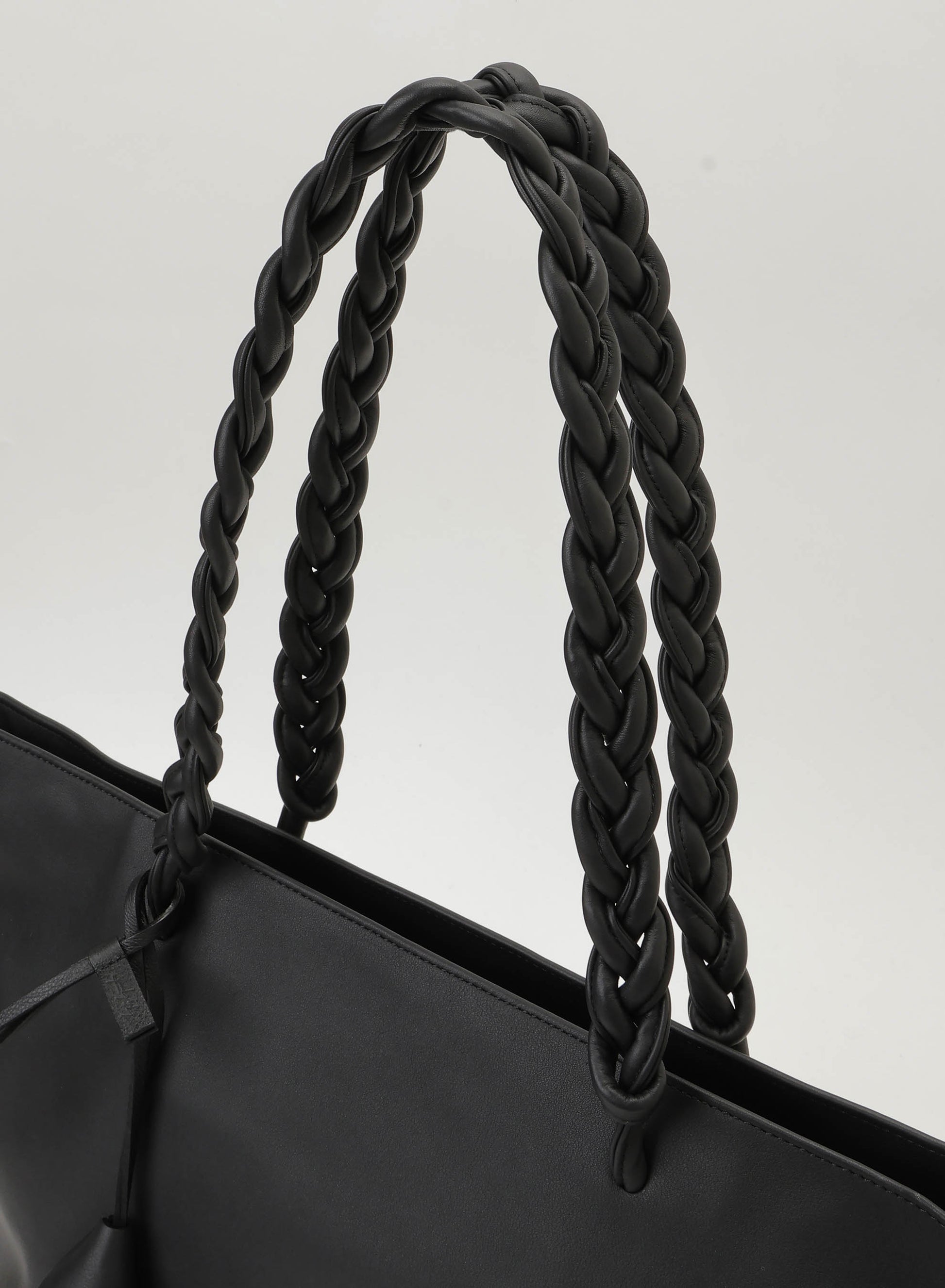 這款托特包的提把由編織皮革繩製成,為成熟的皮革增添了現代且堅固的美感,從底部到側面呈現出摺紙般的摺痕。作為discord系列的一部分,這款設計結合了獨特性和趣味性,是一款既實用又時尚的配件。