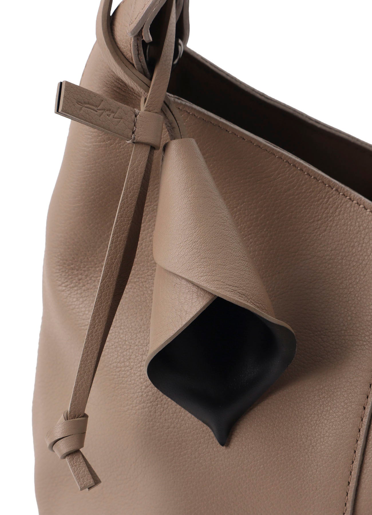 This modern, small shoulder bag made with premium Spanish leather offers a soft and lightweight design suitable for various occasions. It features a key charm resembling a flower and a removable middle board, allowing you to use it as a handbag as well.
