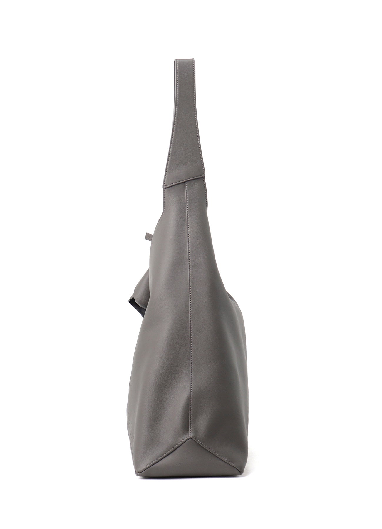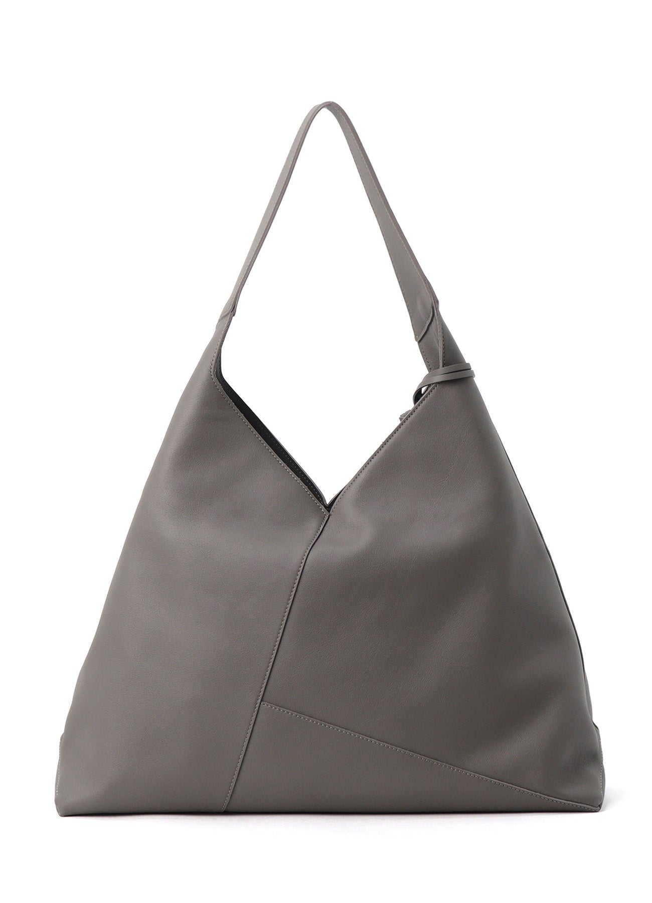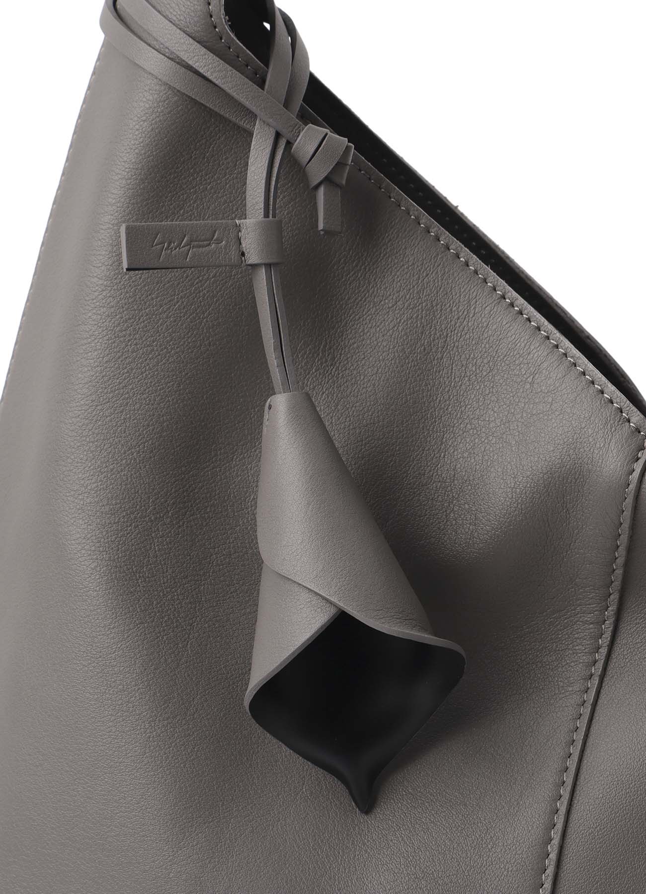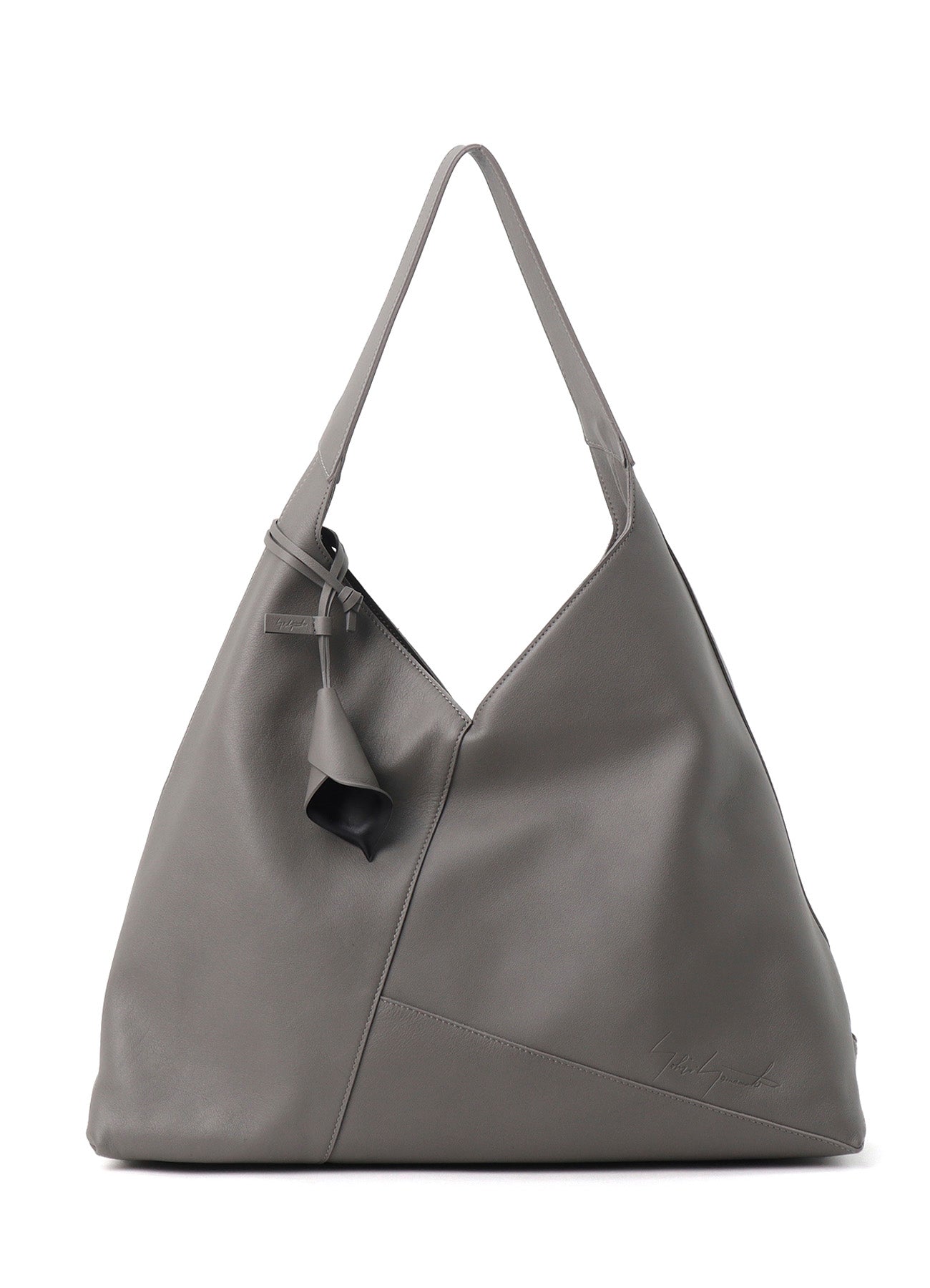 This modern L-size shoulder bag features premium Spanish leather and a floral-shaped key charm. It is both soft and lightweight, suitable for various occasions. The removable inner board allows it to be carried by hand as well.