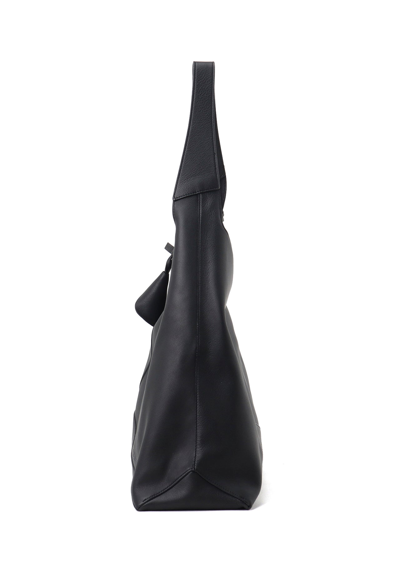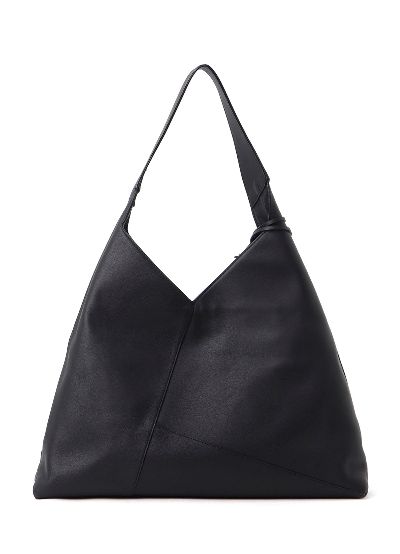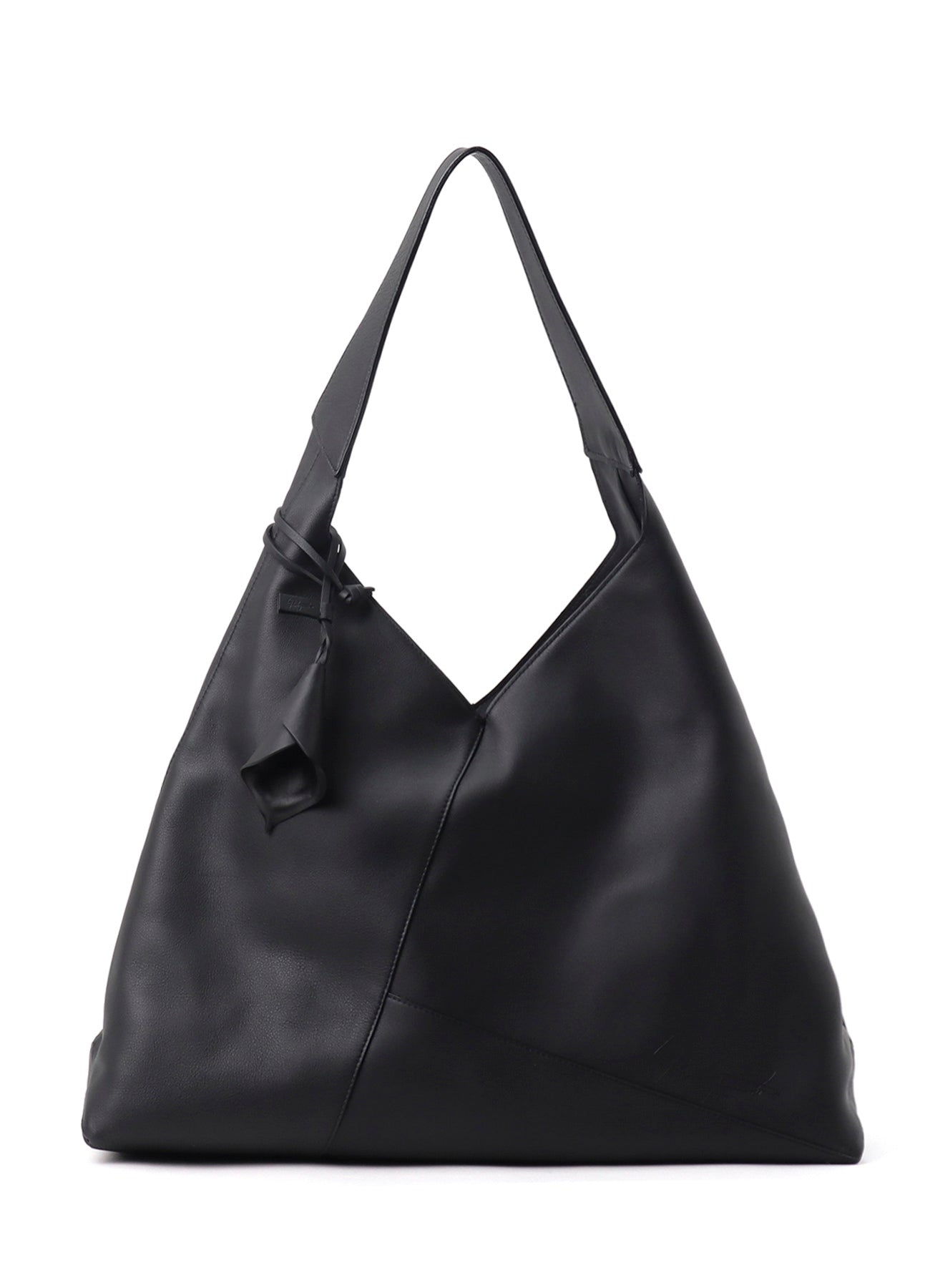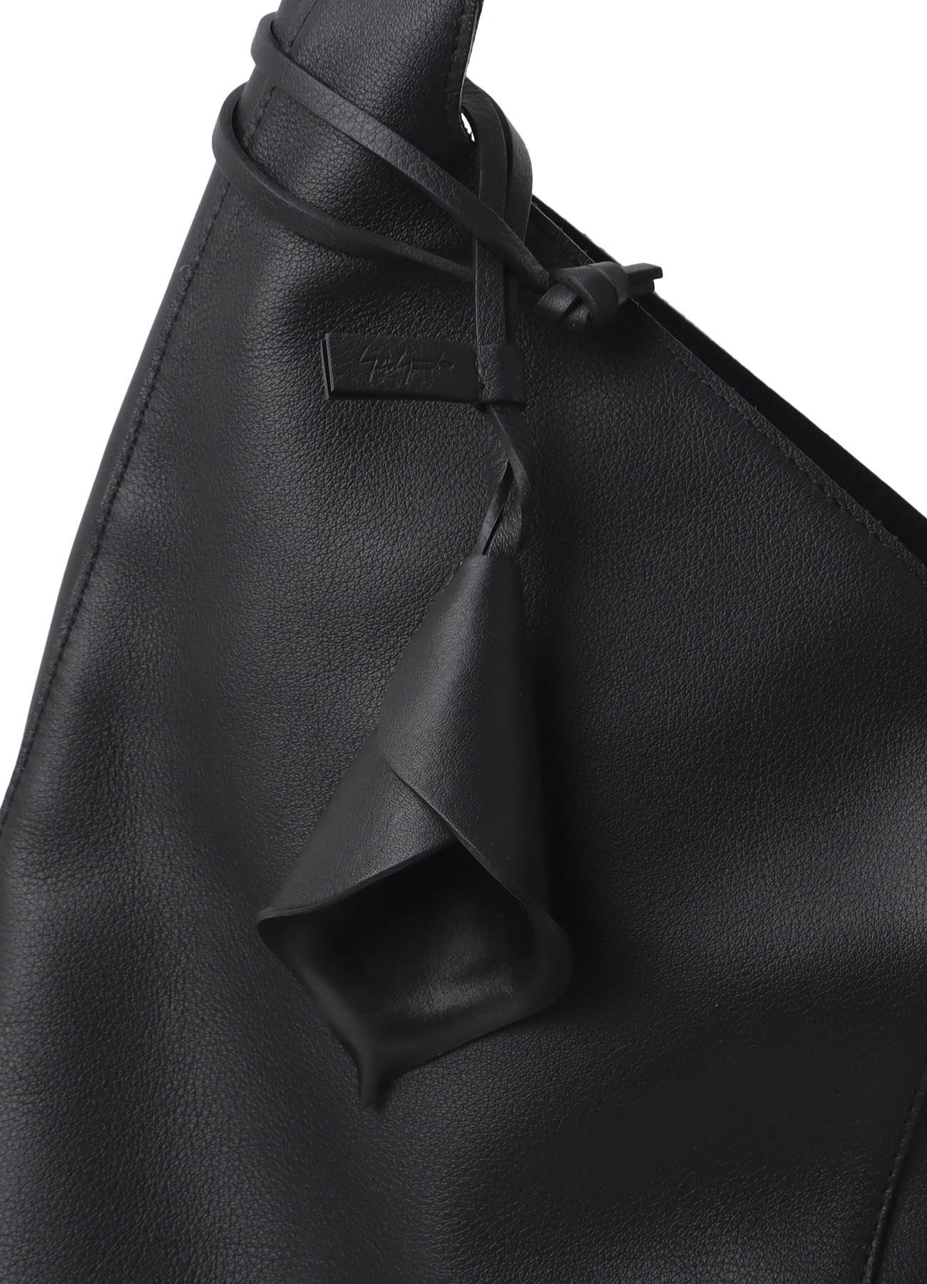 This modern L-size shoulder bag features premium Spanish leather and a floral-shaped key charm. It is both soft and lightweight, suitable for various occasions. The removable inner board allows it to be carried by hand as well.