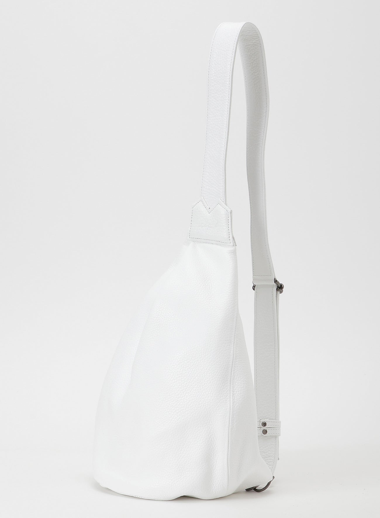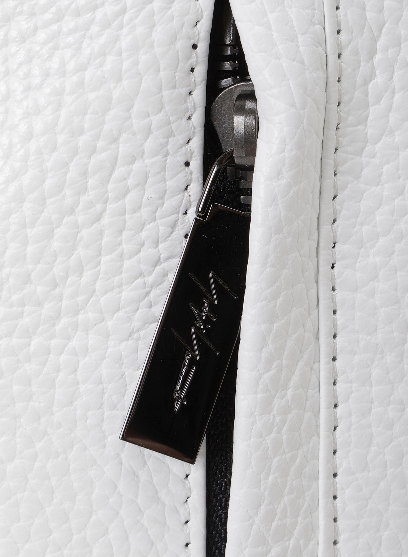 discord Yohji Yamamoto's signature [Y] series introduces a new color with this uniquely shaped S-size one-shoulder bag. Its adjustable clasp lets you switch its position for right or left shoulder use. For security purposes, it features a zipper only on the back. The bag is made using vibrant Italian shrink leather.