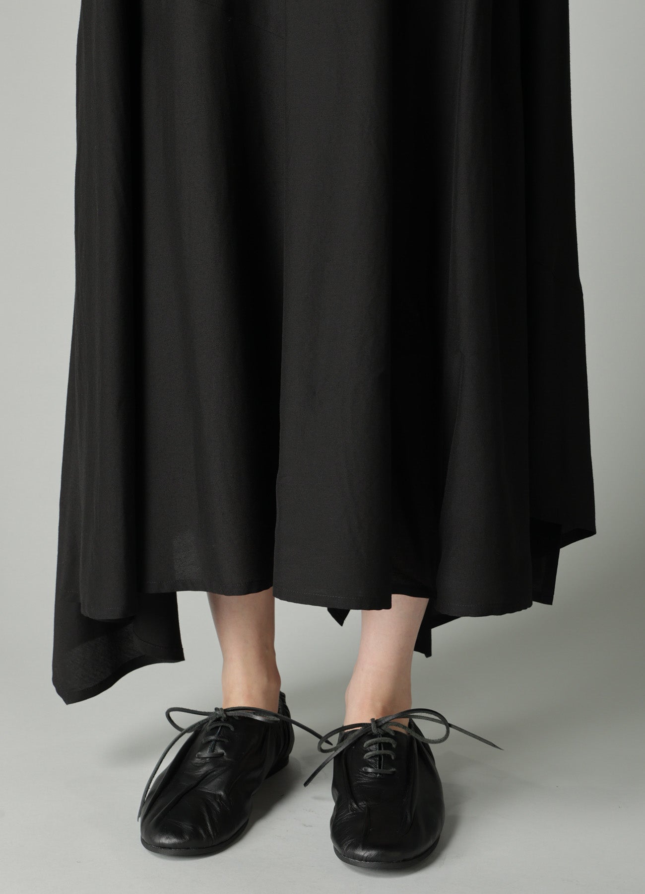 This long dress features an elegant flared design enhanced by its drapery and layered fabric. The flowing material creates a graceful and vibrant effect. Please note that the model is wearing a sample item, and actual goods may vary in size and texture. Refer to SIZE INFO for details.