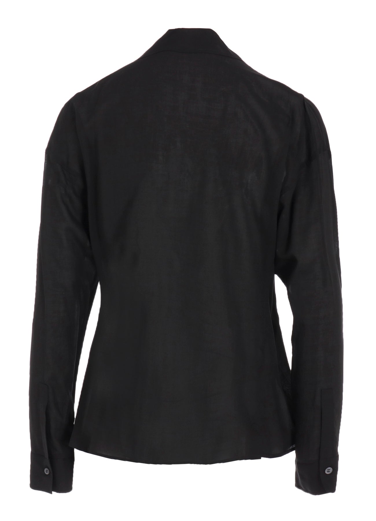 這款長袖襯衫以精美的拼接設計展現出優美的垂墜感。採用能增強膨鬆感和垂墜感的材質製作,可作為輕便夾克穿搭,適合搭配各種褲裝。模特兒圖片為樣品,請查看 SIZE INFO 了解實際產品細節。