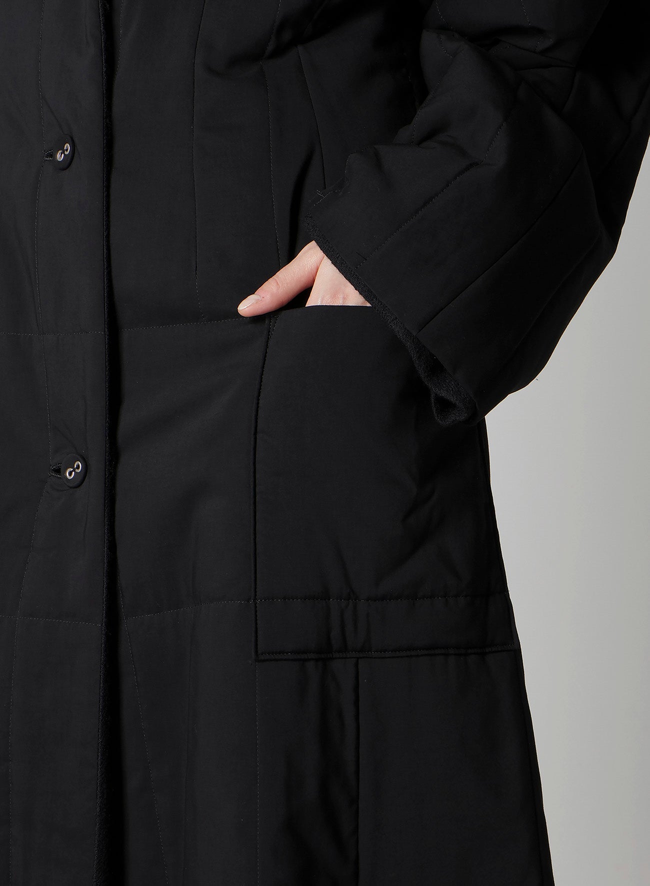 這款可翻轉連帽外套重量輕盈,內襯採用精心縫製。雖然具有豐滿的輪廓,但材質使其穿著方便。請參考尺寸信息,因為圖片樣品可能在尺寸或質地上與最終商品有所不同。