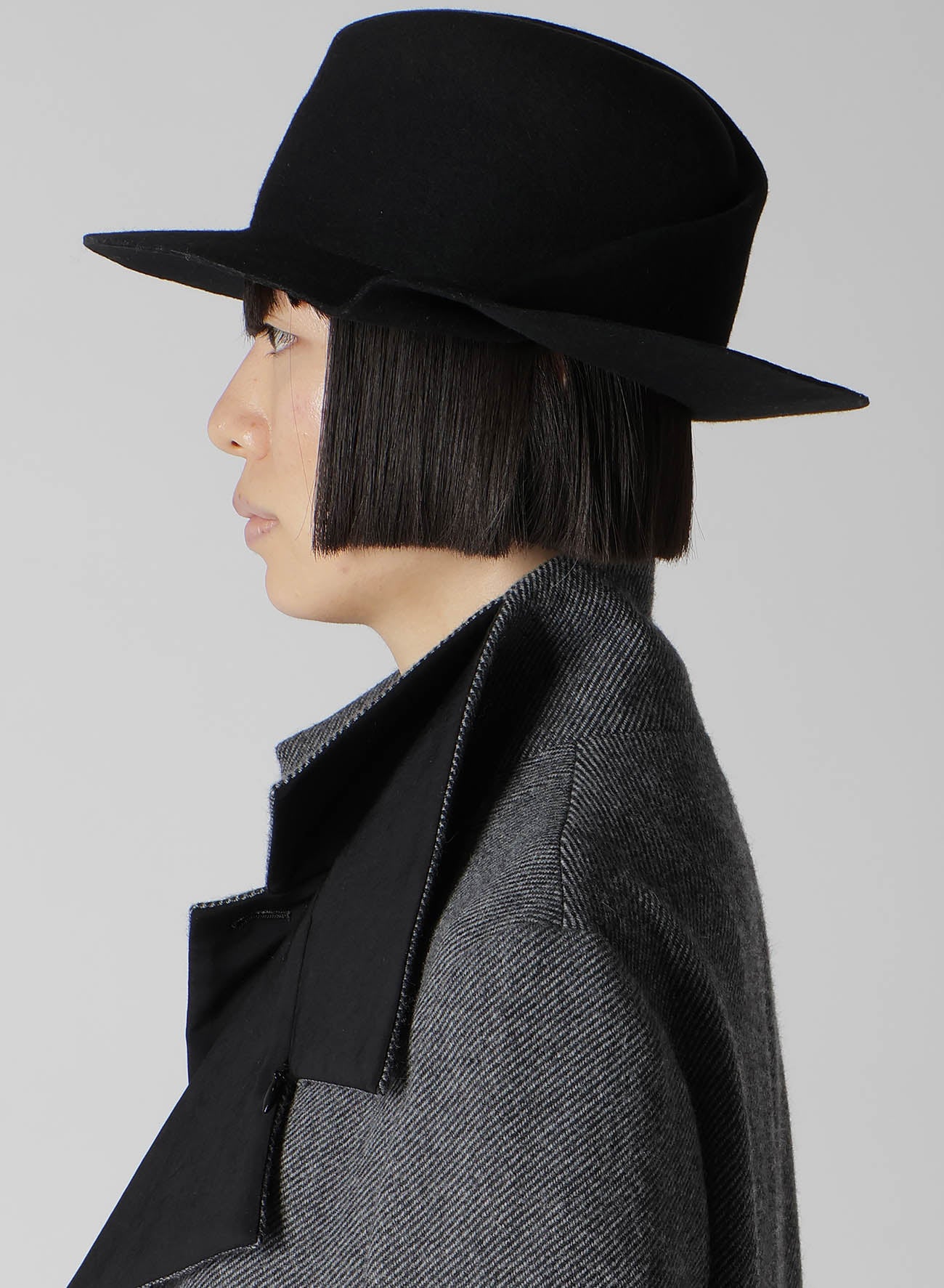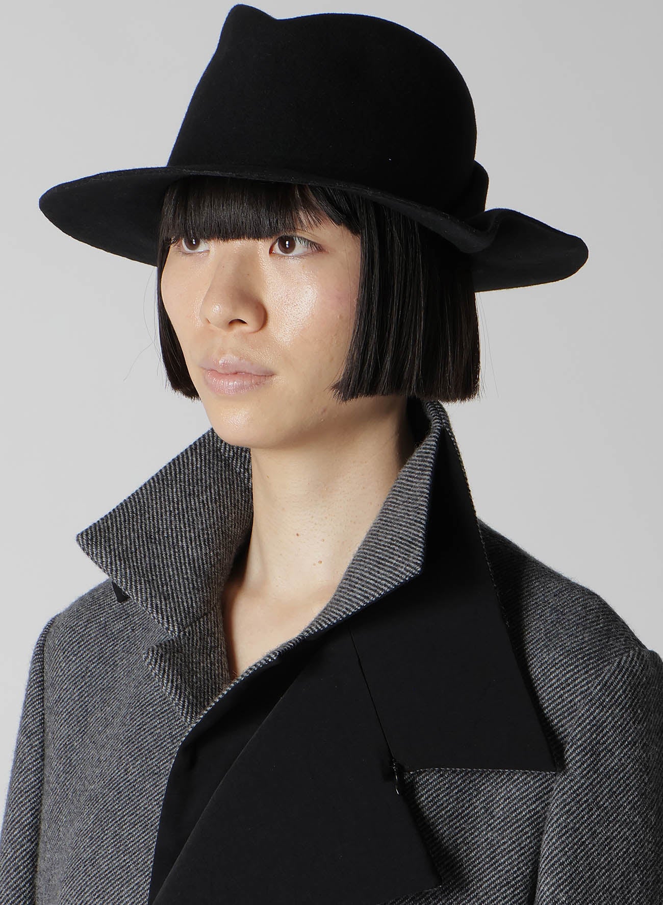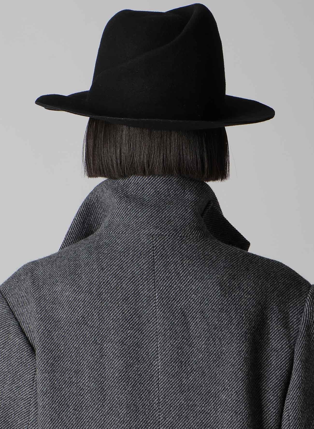 用羊毛氈製作的這款中折帽,以帽頂和帽沿的褶皺設計,展現優雅的收縮效果。將時尚與功能完美融合,提供經典的吸引力,適合各種季節穿著。 - 羊毛氈製,經典中折帽造型。 - 帽頂與帽沿的優雅褶皺設計。 - 適合多種搭配和季節穿著。