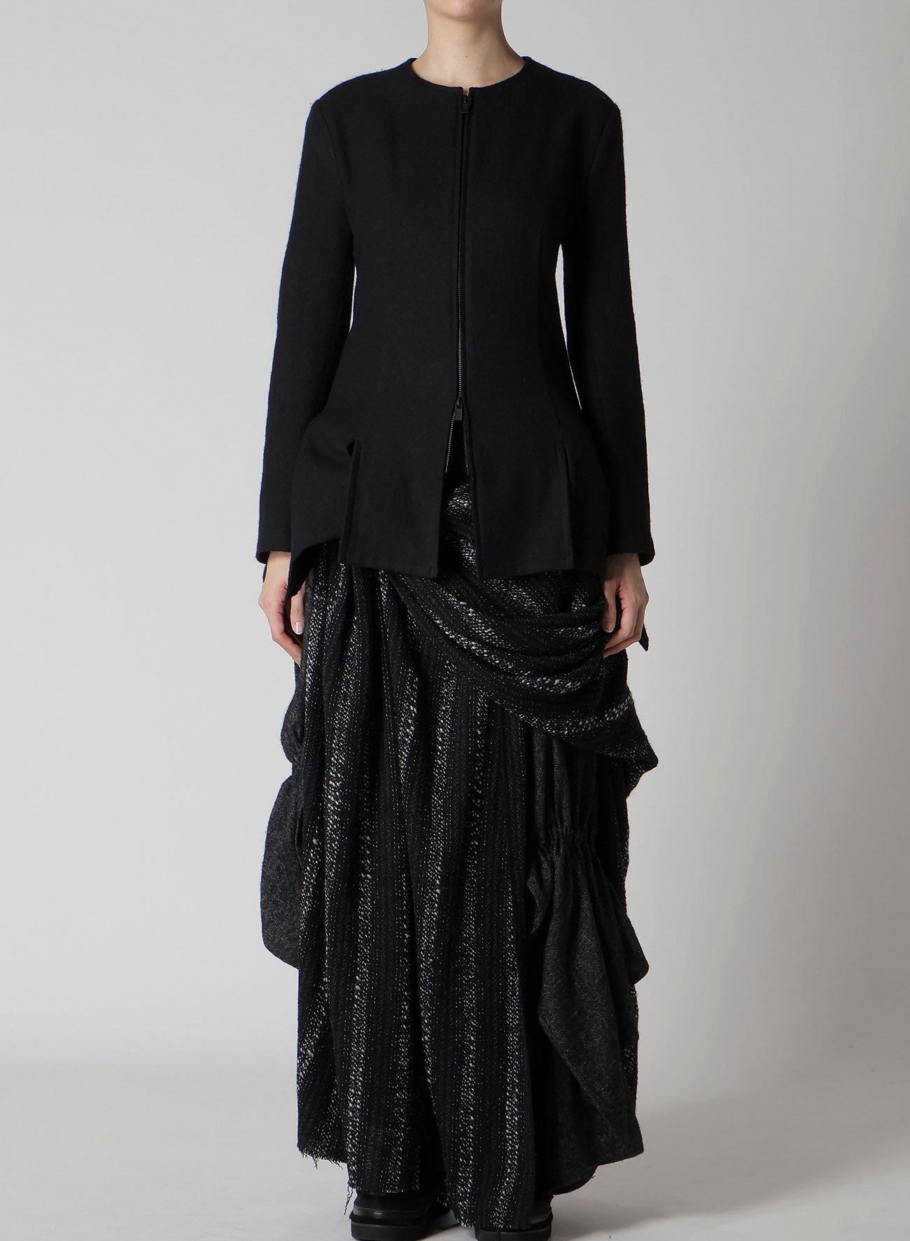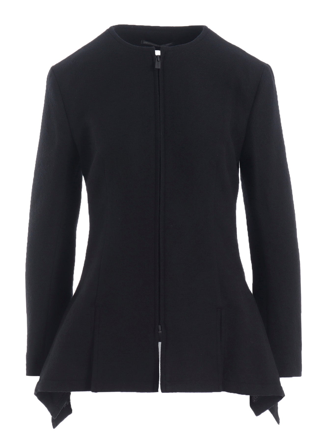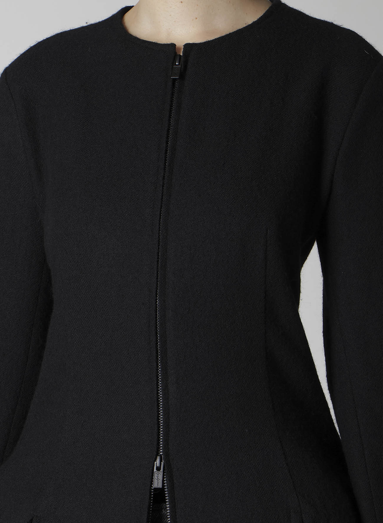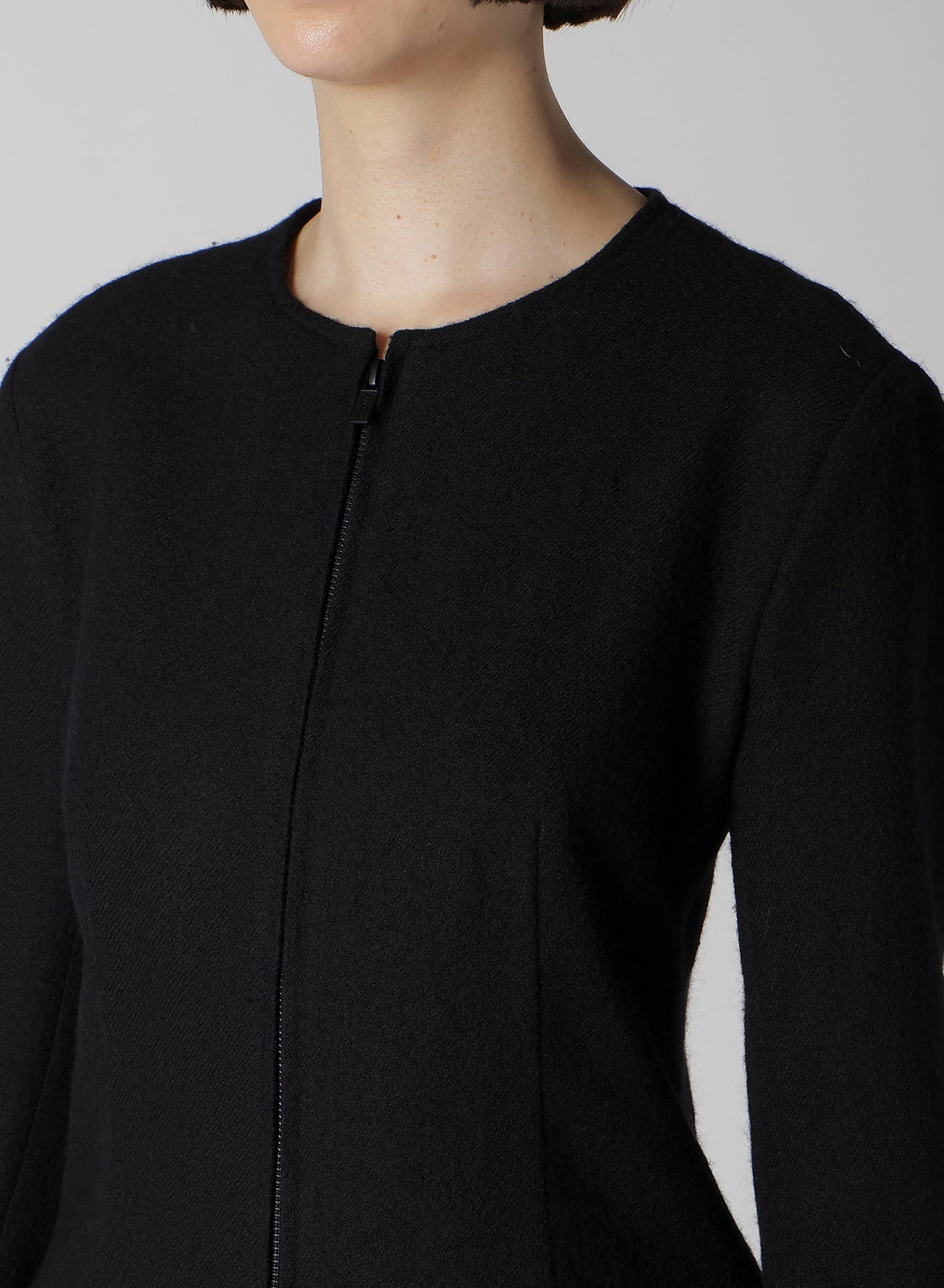 這款Viyella夾克採用無領設計,展現俐落腰部線條,配備雙拉鏈方便穿著。其多用途的風格適合搭配寬鬆褲子,實品可能與樣品圖片略有不同。請參考SIZE INFO獲取準確尺寸。