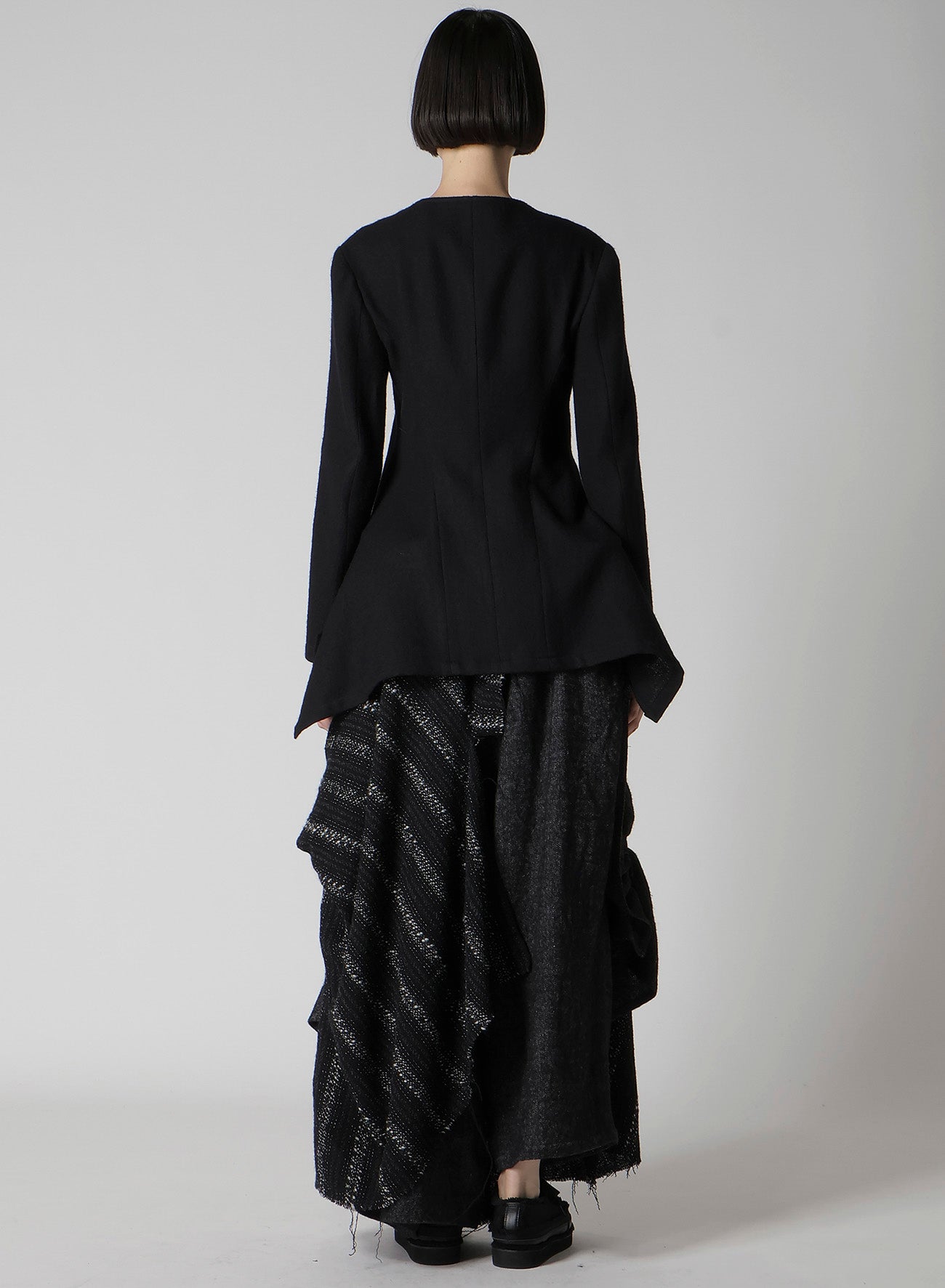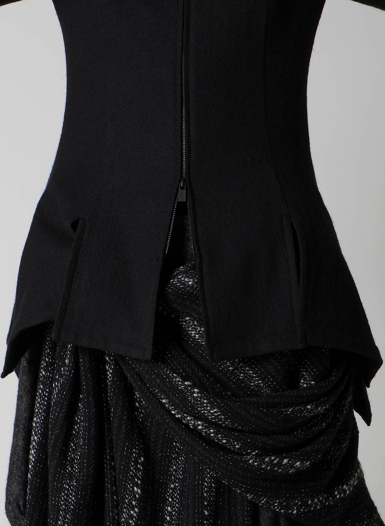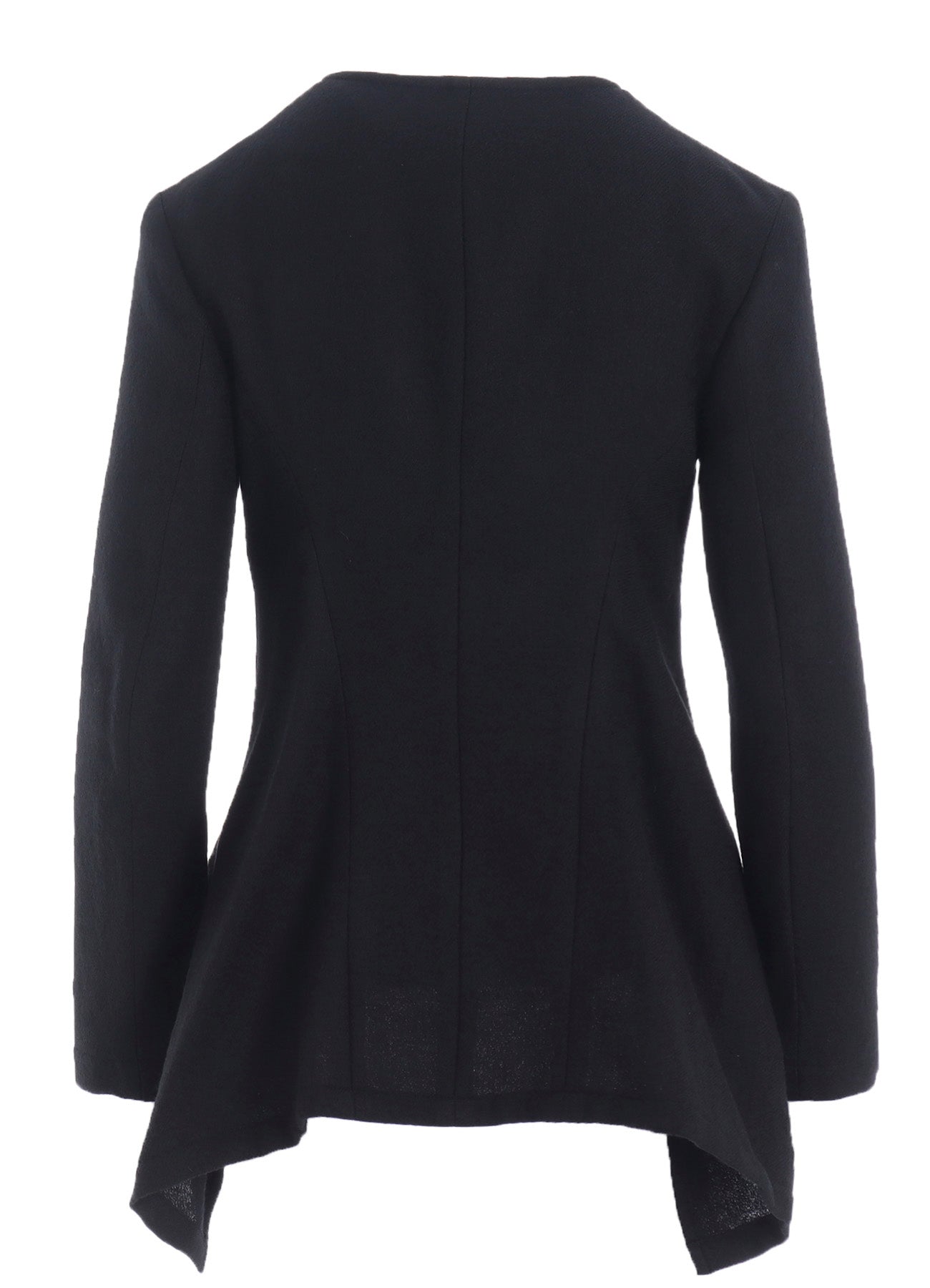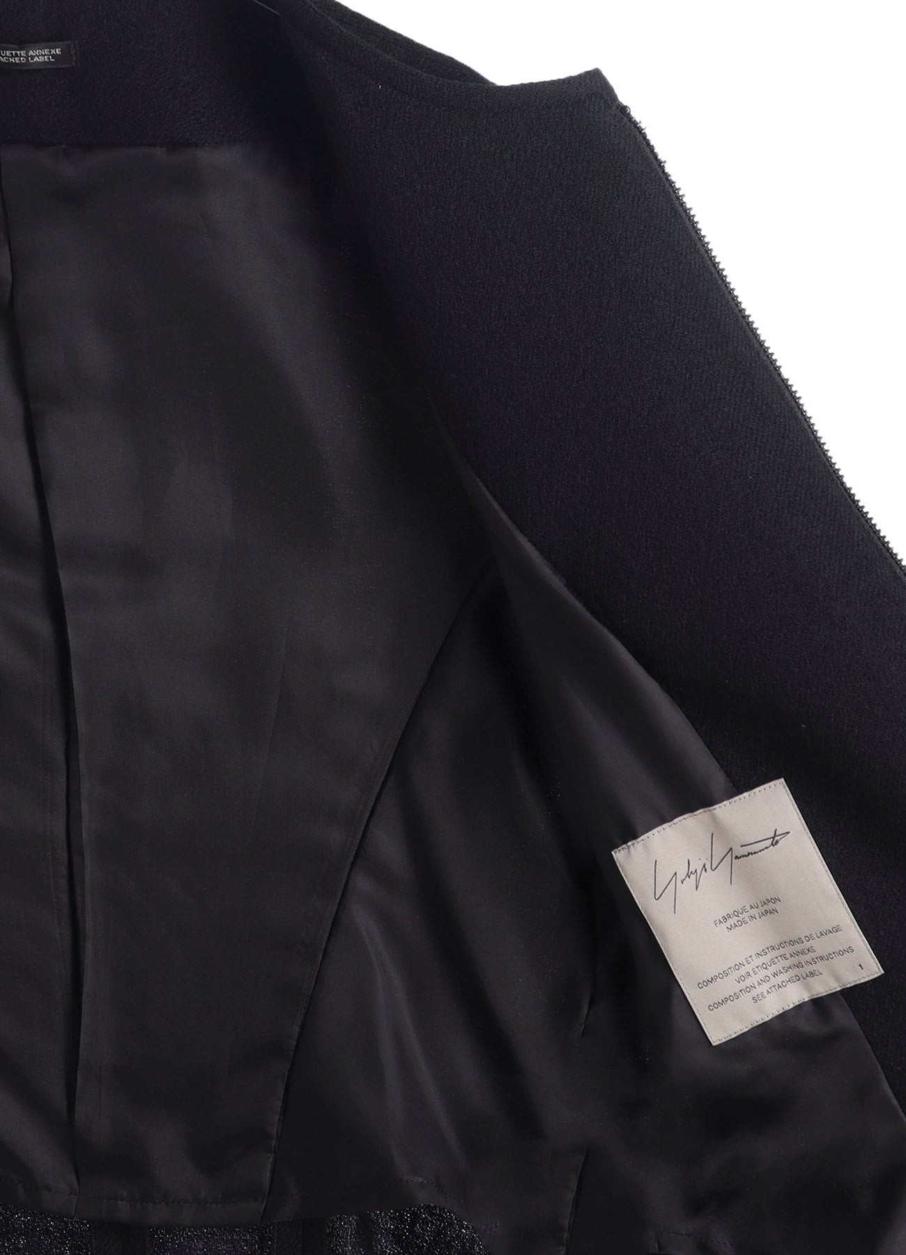 這款Viyella夾克採用無領設計,展現俐落腰部線條,配備雙拉鏈方便穿著。其多用途的風格適合搭配寬鬆褲子,實品可能與樣品圖片略有不同。請參考SIZE INFO獲取準確尺寸。