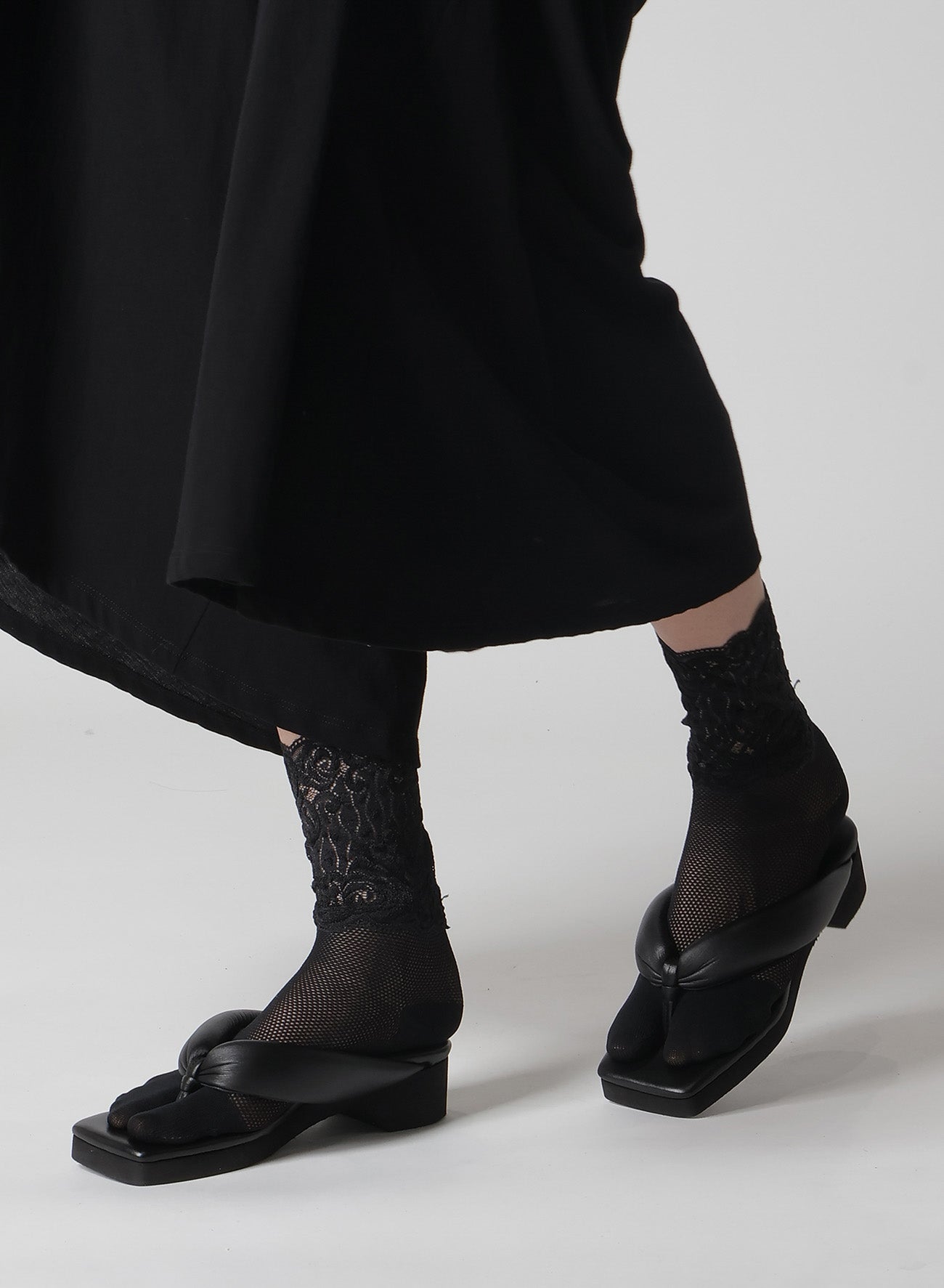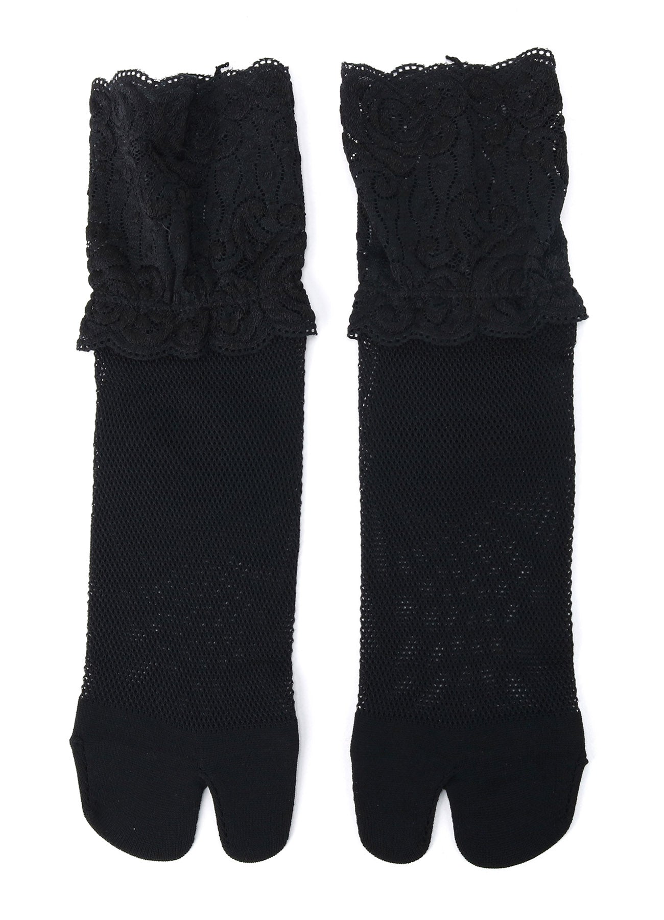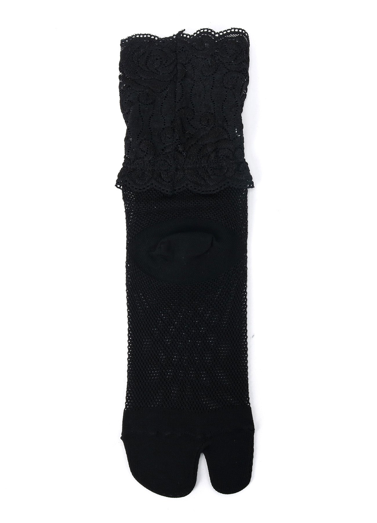 這款趾襪擁有蕾絲邊的開口,增添時尚感。採用彈性蕾絲,穿著舒適,並以透氣網布製成。圖案在每件產品之間可能有所不同,尺寸選擇範圍從23.0cm到25.5cm。