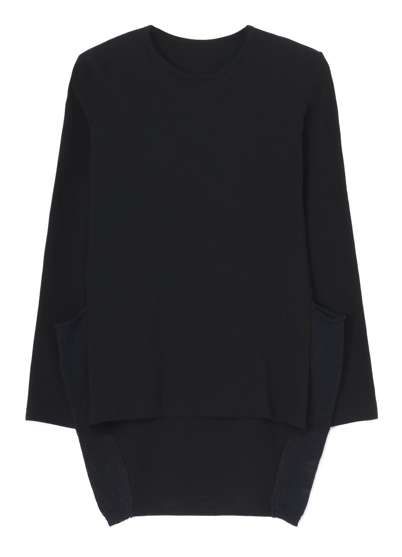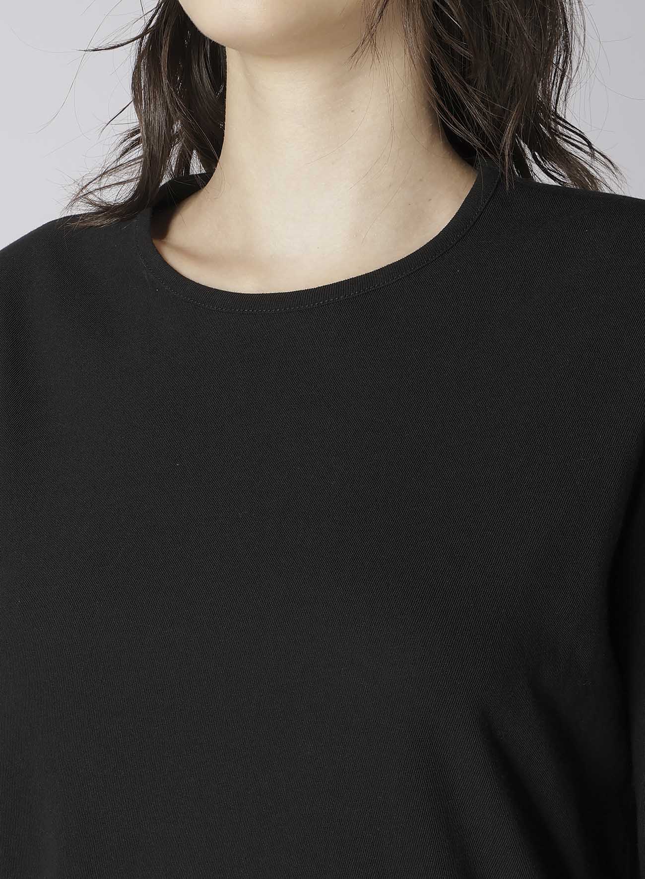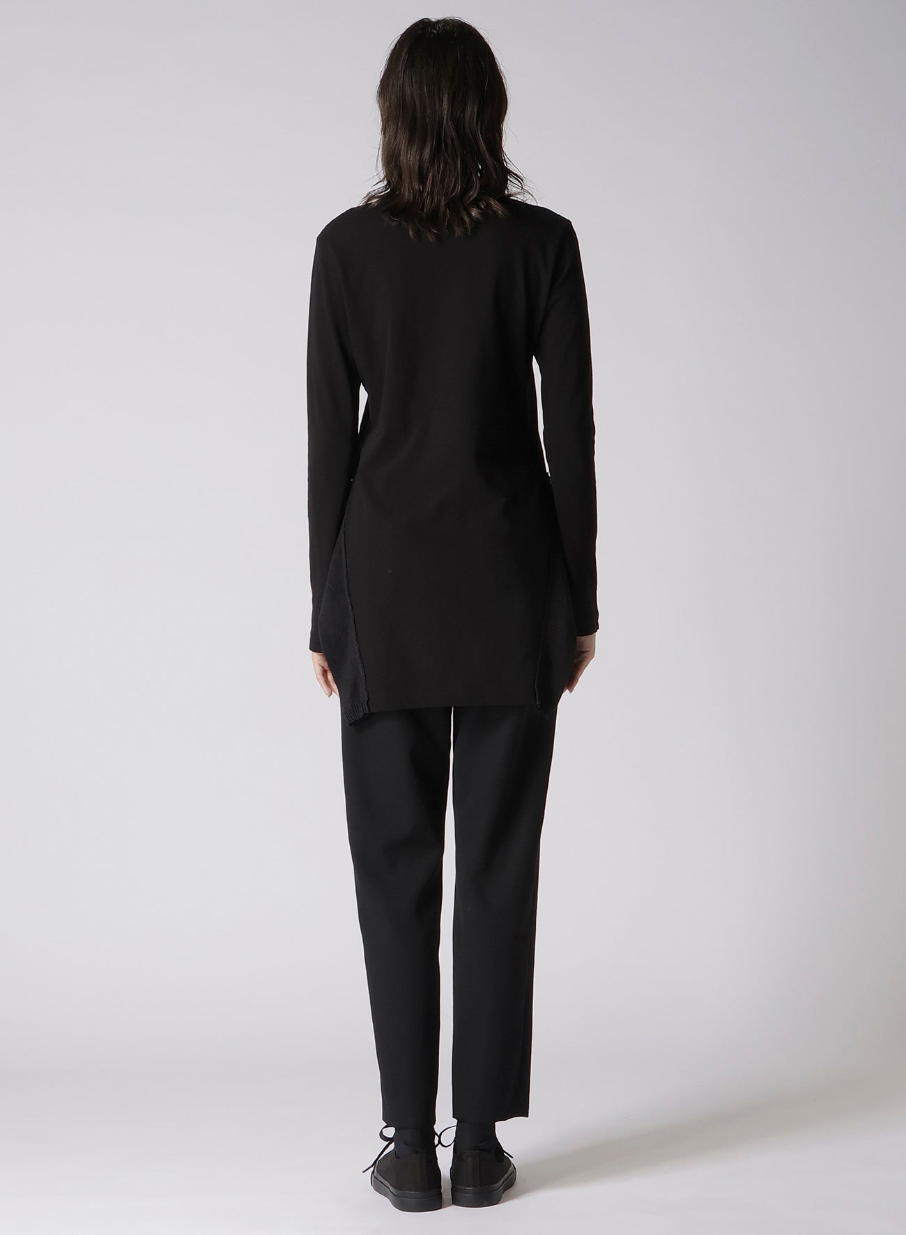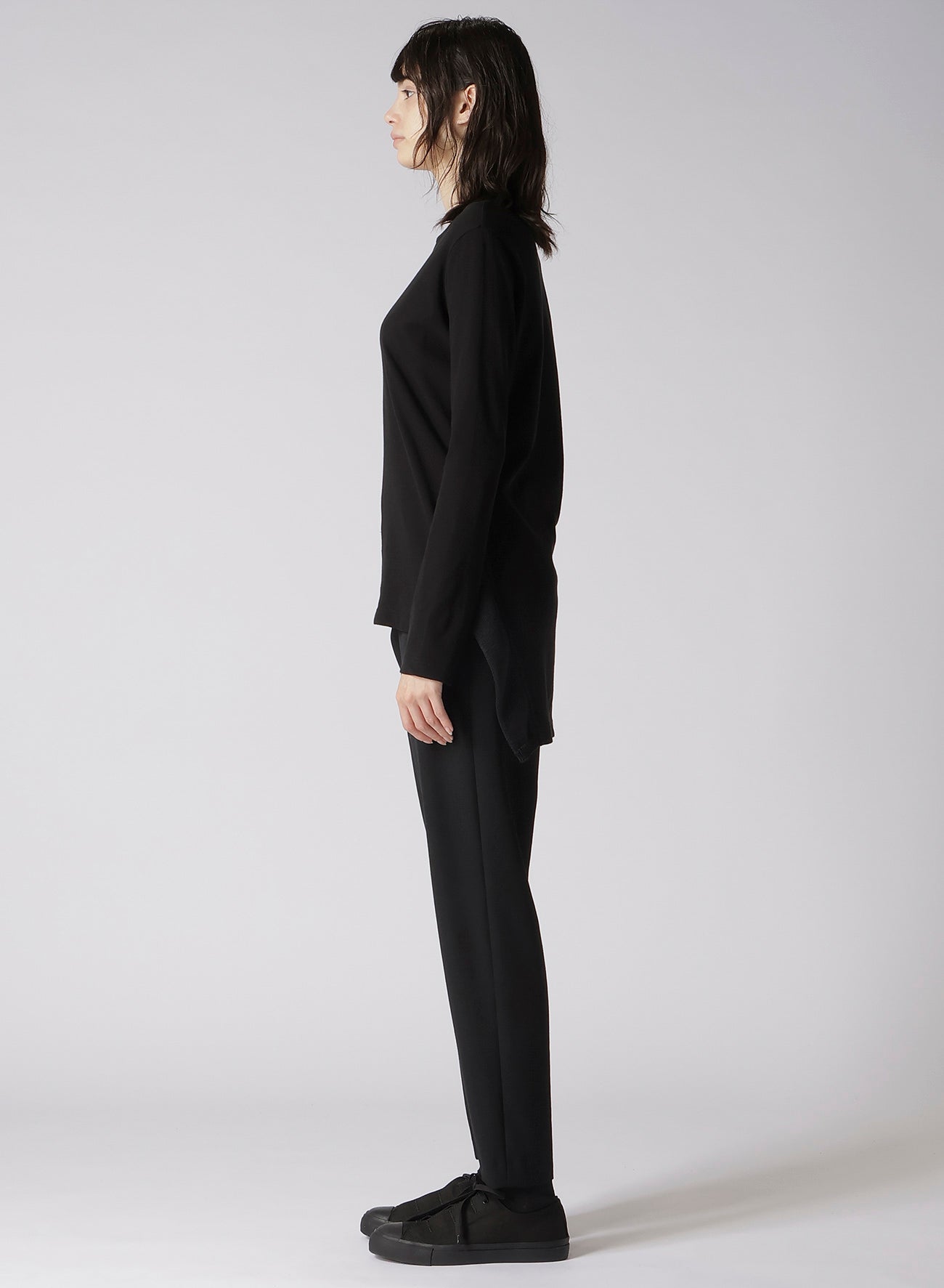 這款圓領長袖上衣採用一種以乾淨質感、垂墜感和透氣性著稱的面料製作。清晰、低毛絨的表面賦予其優雅的外觀。設計上採用不對稱下擺,與任何褲子搭配都很合適。請注意,模特圖片使用的是樣品,可能與最終產品略有不同。詳情請參考尺寸資訊。