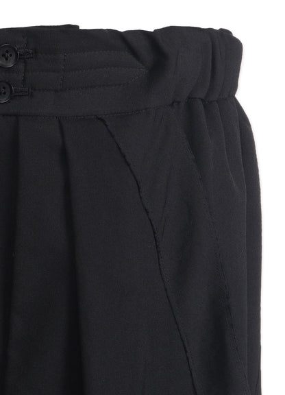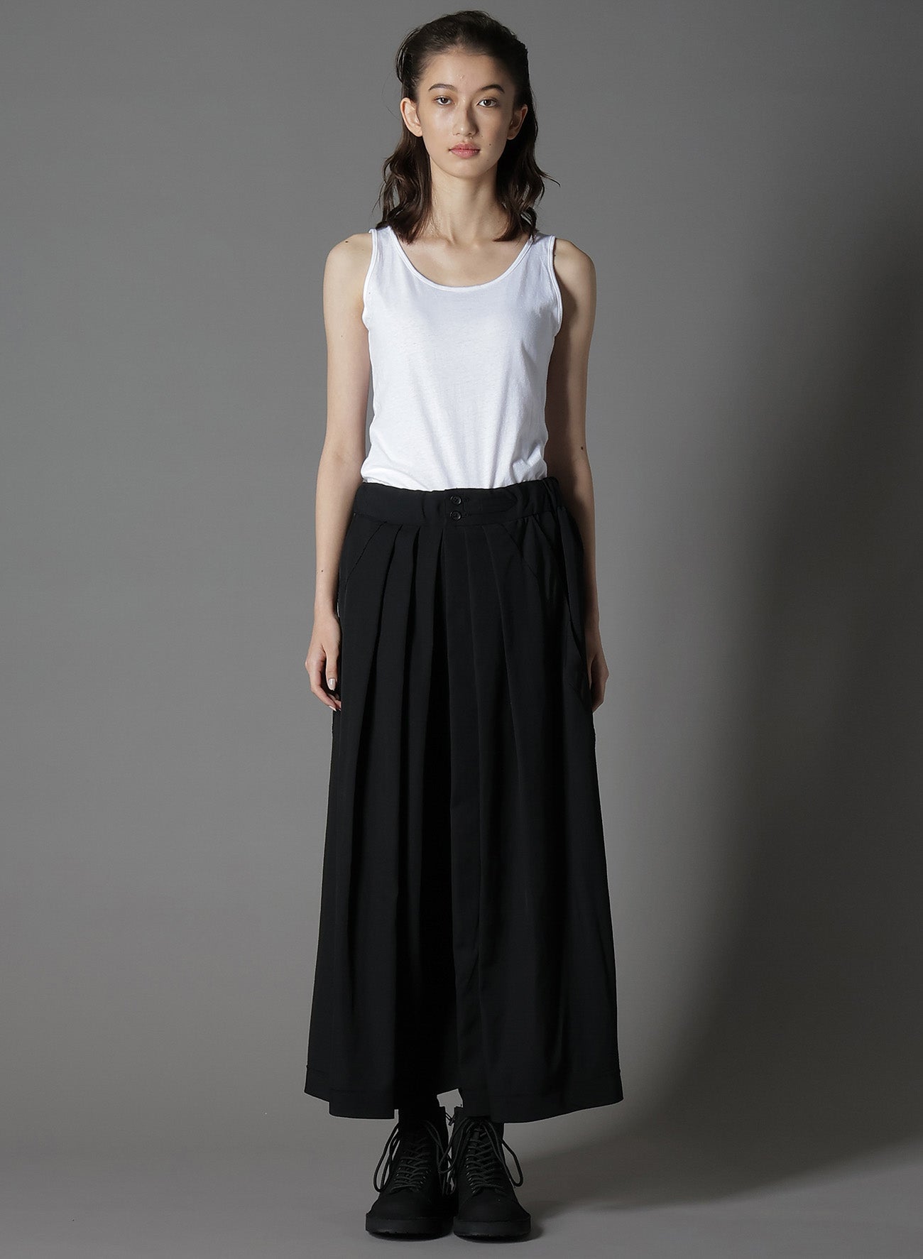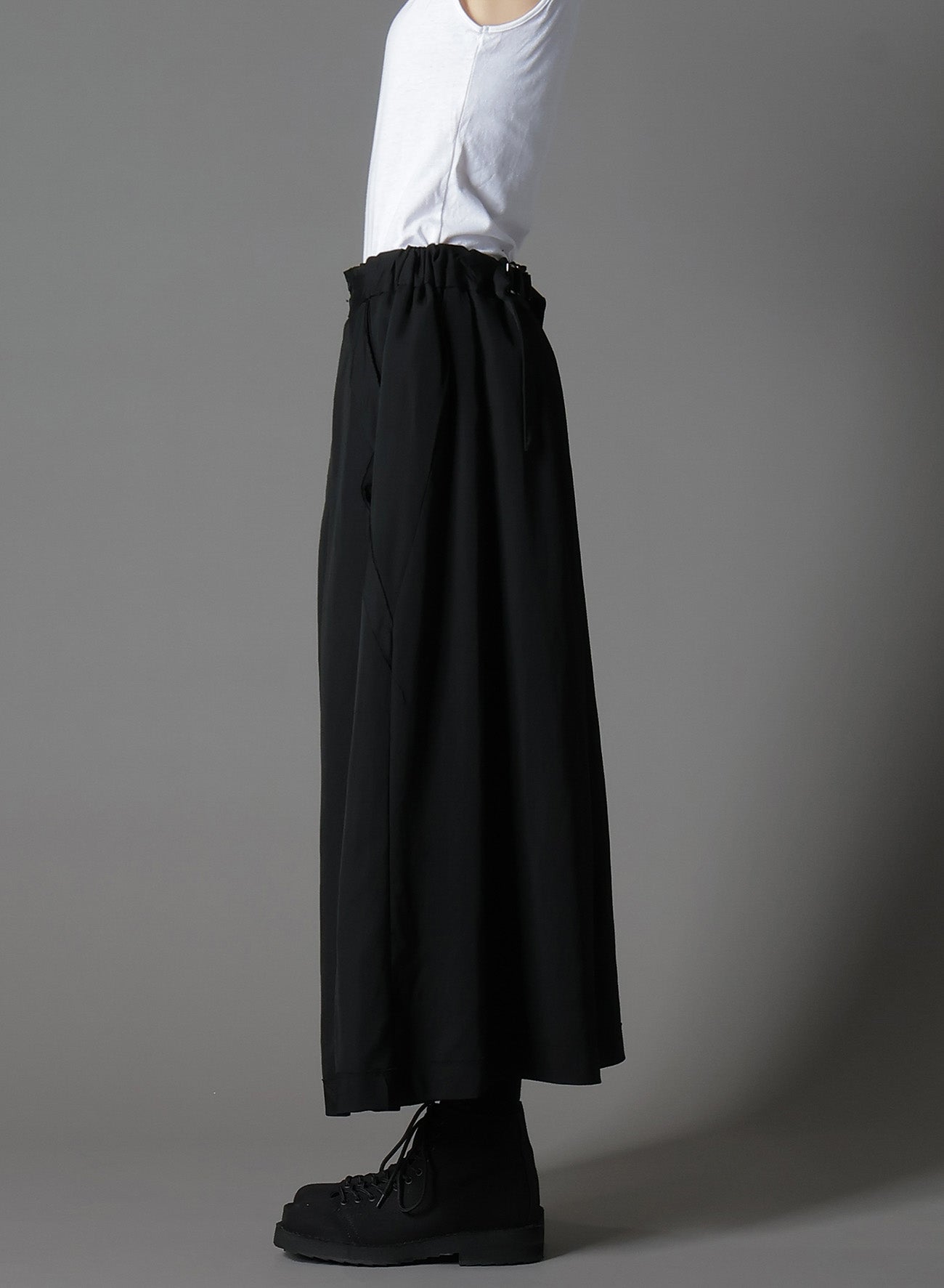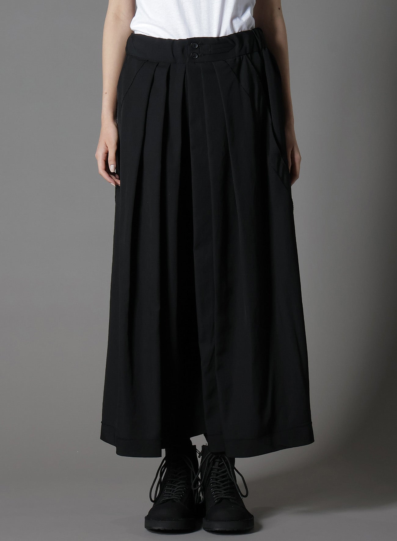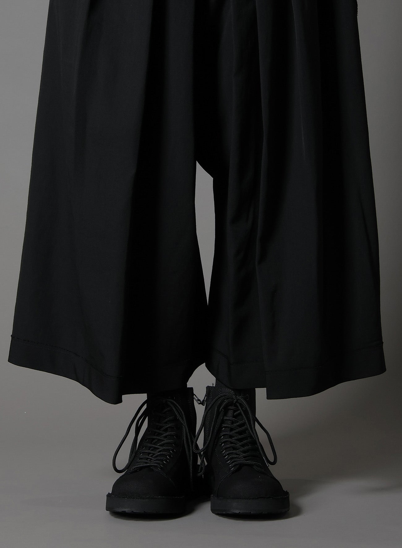 體驗 Ground Y 2025 春夏系列設計褲的動感布料。這條褲子展示了受傳統武術袴啟發的圖案,採用 Yohji Yamamoto 的標誌性材質毛呢斜紋布,提供高雅的質感,並附有獨特的皺紋斜紋布效果。