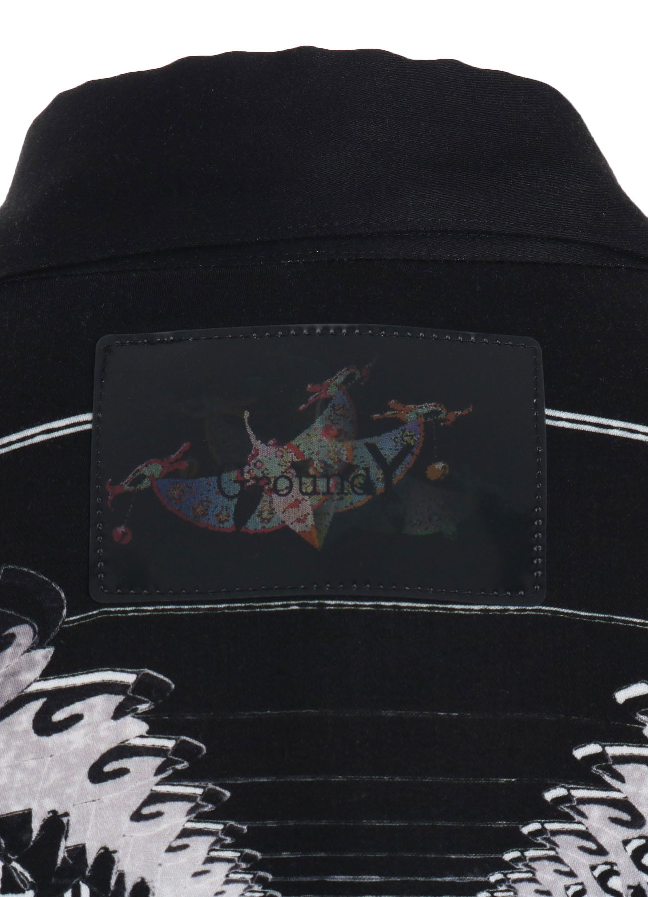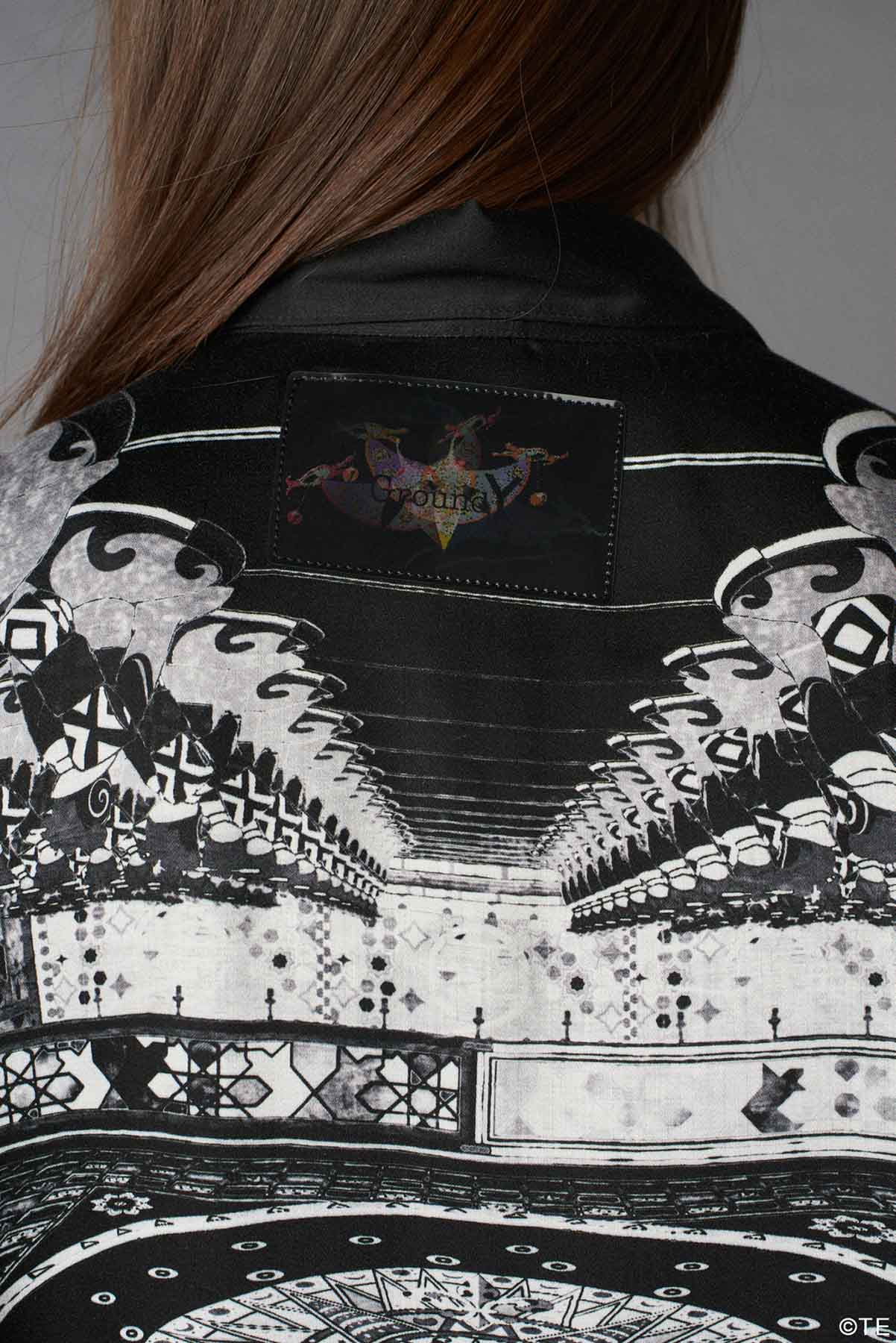 Ground Y×Mononoke 合作推出一款以“Mononoke”電影中的大廳圖案為特色的襯衫。由人造絲緞製成,襯衫的圓弧下擺設計展現出簡潔輪廓,讓穿著者沉浸於電影世界。《Mononoke》源自《Ayakashi》的系列將於2025年推出續集。
