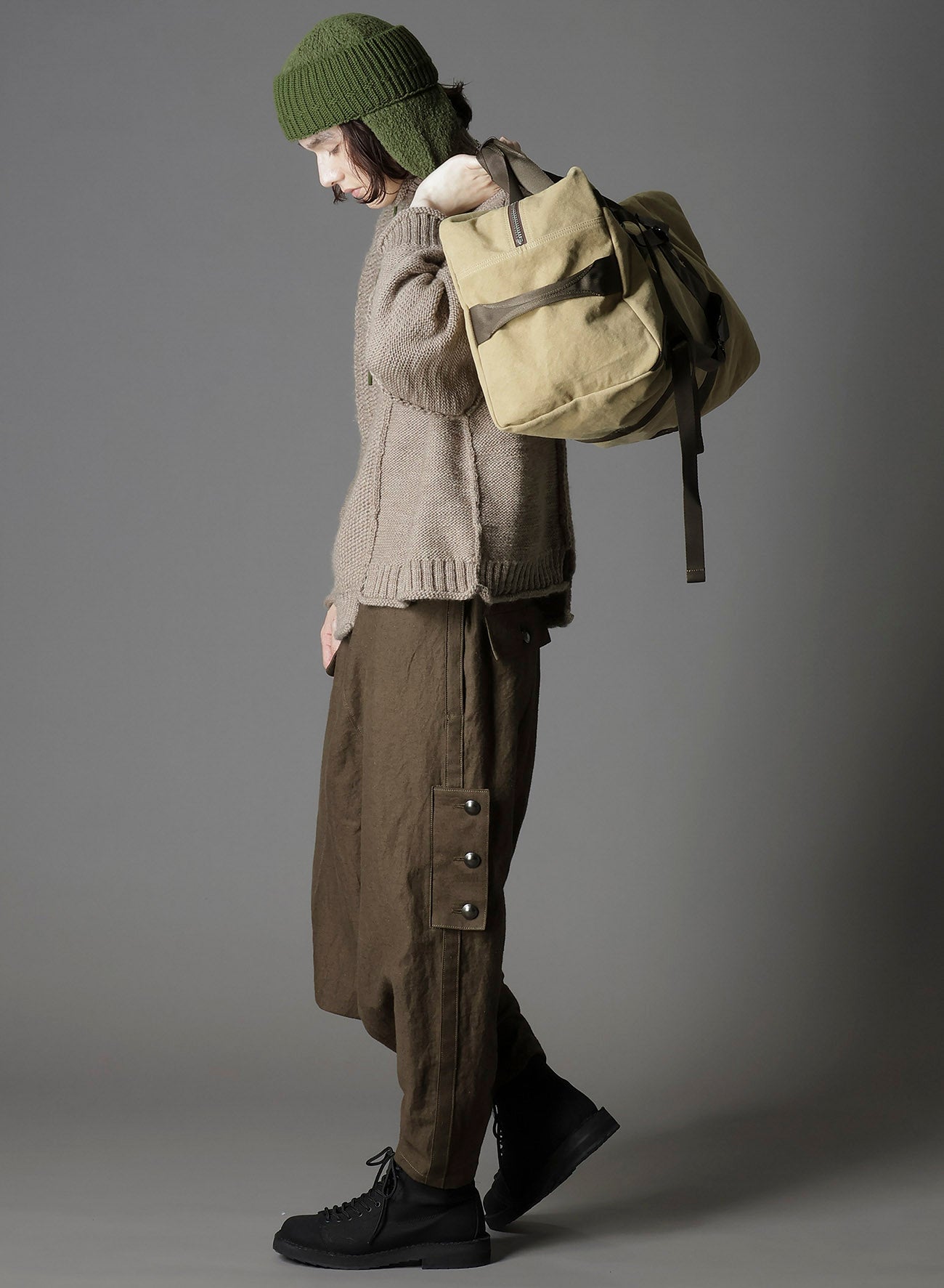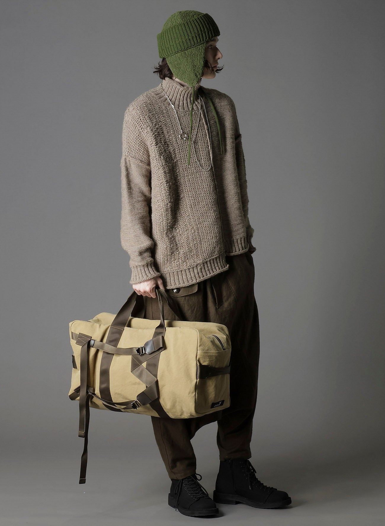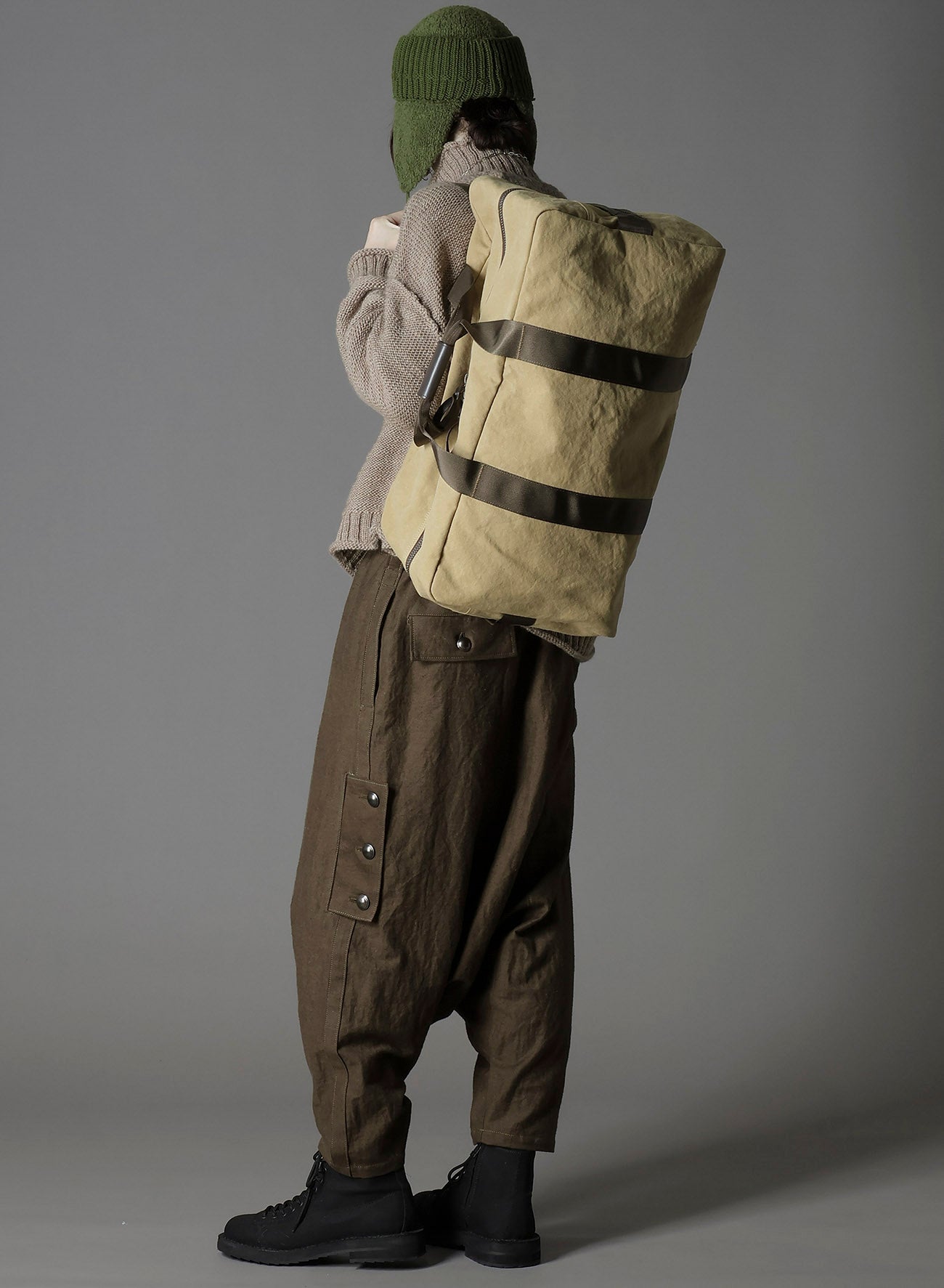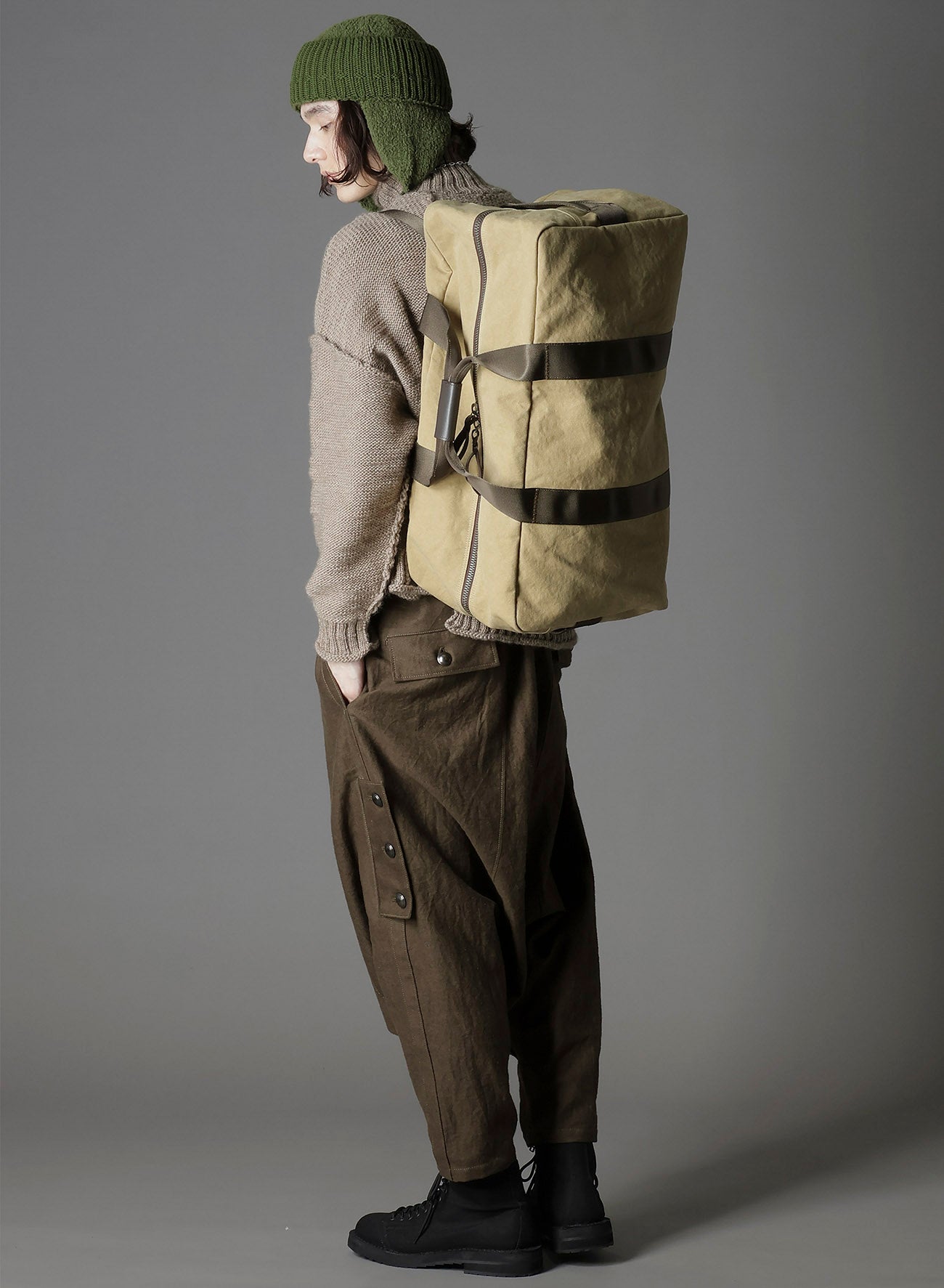 這款2WAY duffel bag來自Ground Y's 2025-26秋冬系列,靈感來自海軍使用的個人物品袋,賦予實用的時尚風格。它配有肩帶,可如背包般穿戴,採用具有洗水效果的帆布製成,提供獨特的質感。
