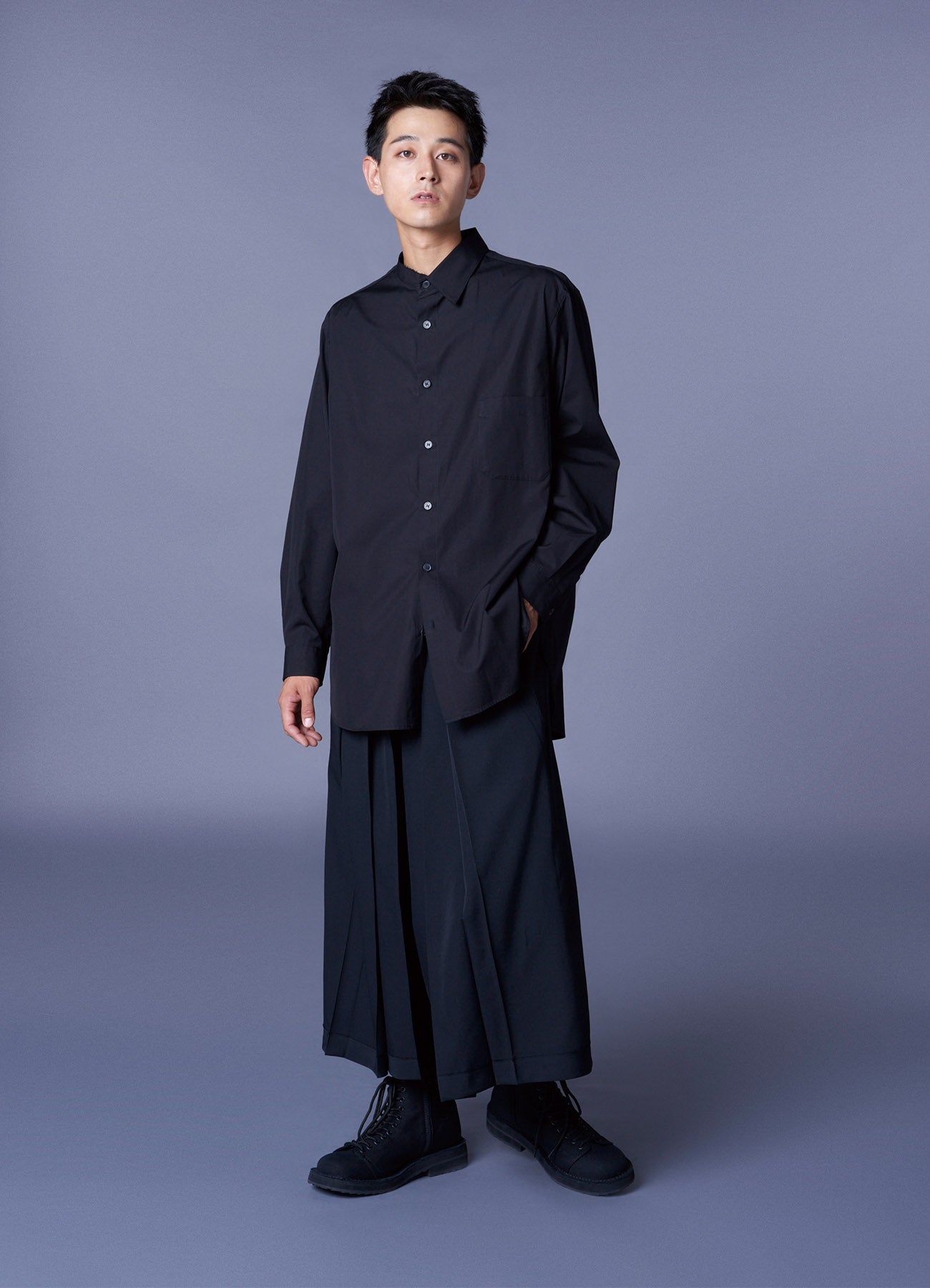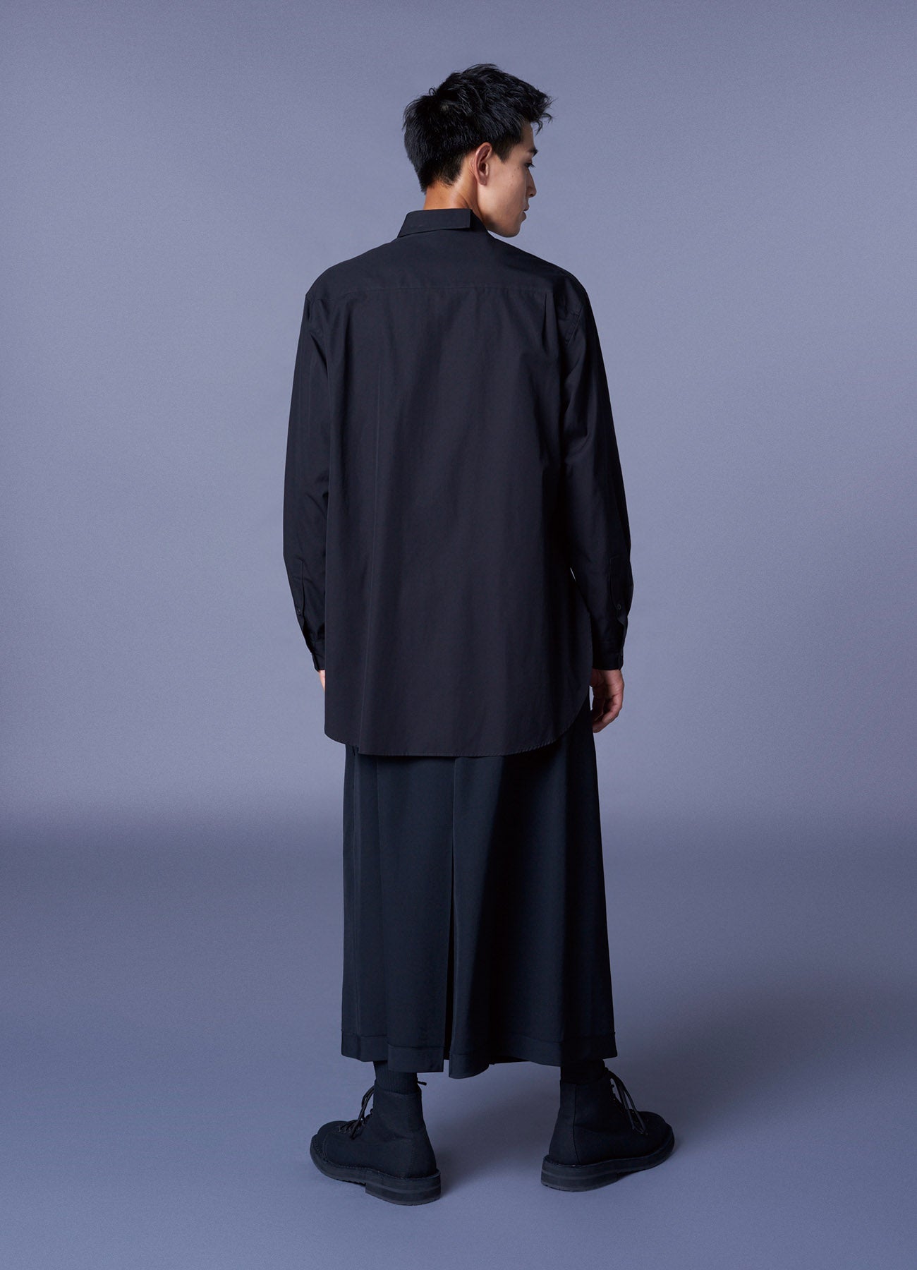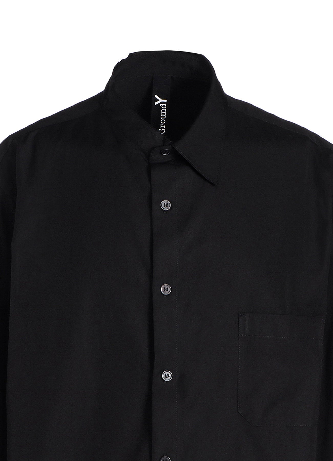 Ground Y 2025 春夏系列推出襯衫,具有原邊領設計,形成背部略長的輪廓,適合所有性別。此系列使用100%純棉府紗布,以其光滑的質感和舒適性著稱,適合全年穿著。