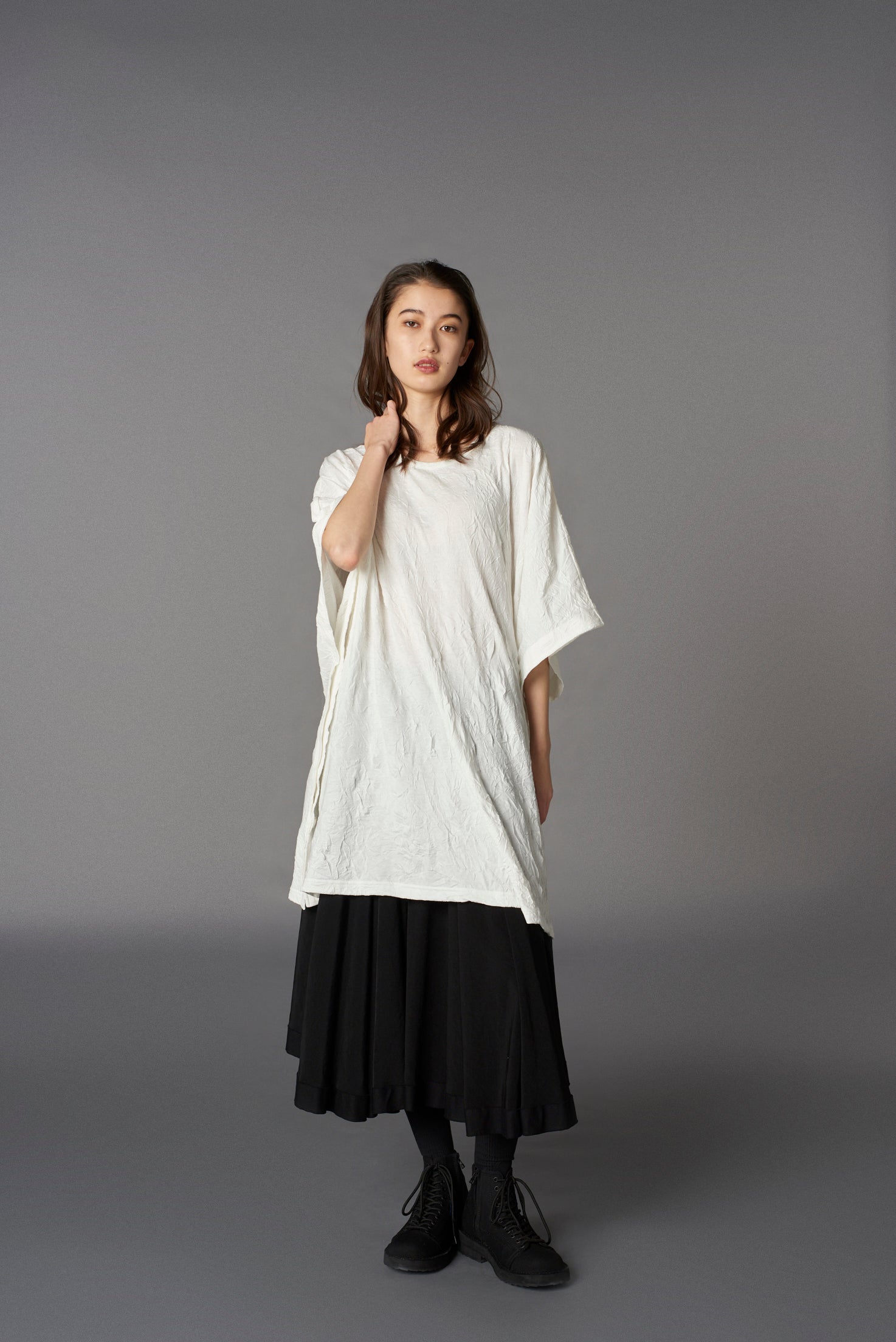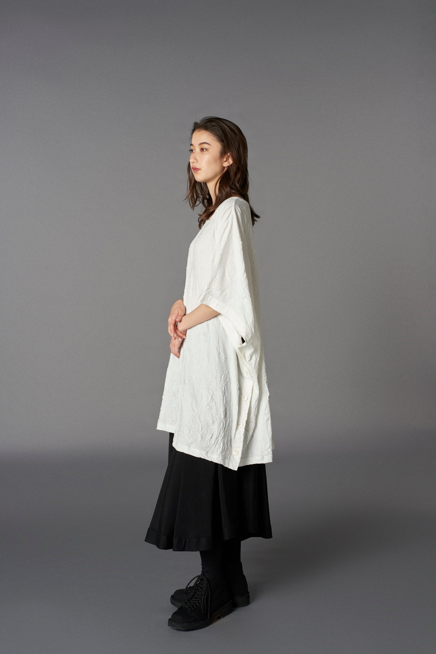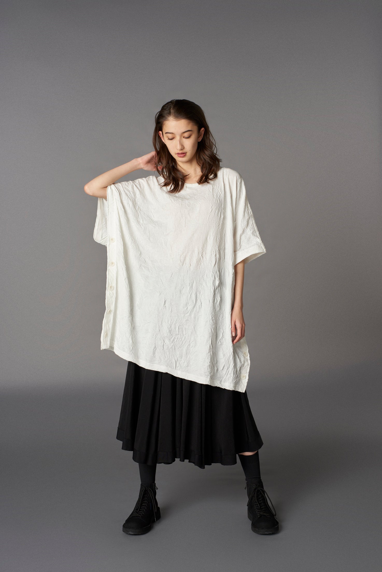 - A字形上衣,斗篷風格設計 - 側邊鈕扣增添風格 - 由棉和聚酯纖維混紡而成 - 手工皺摺處理,紋理獨特 - 適合與襯衫層疊搭配Model height:176cm