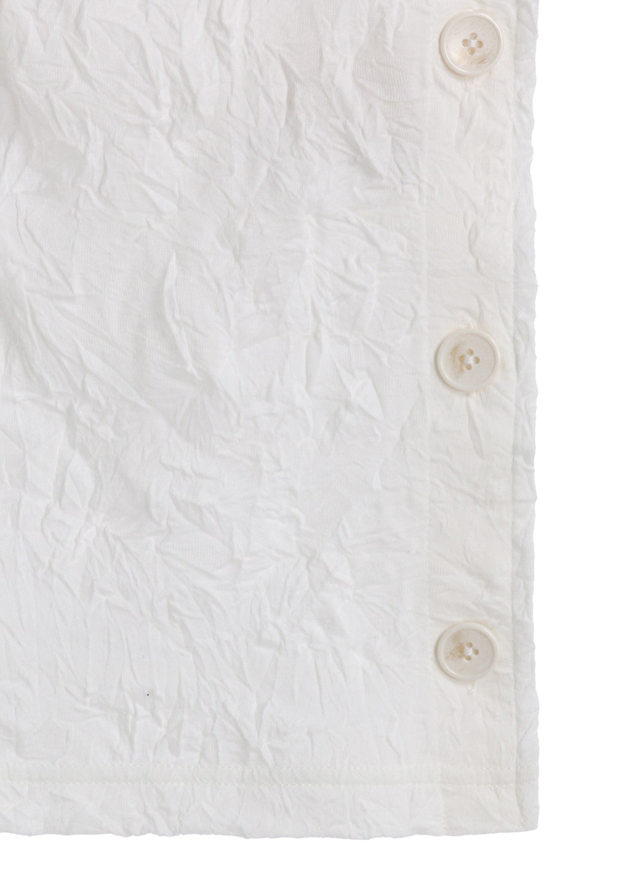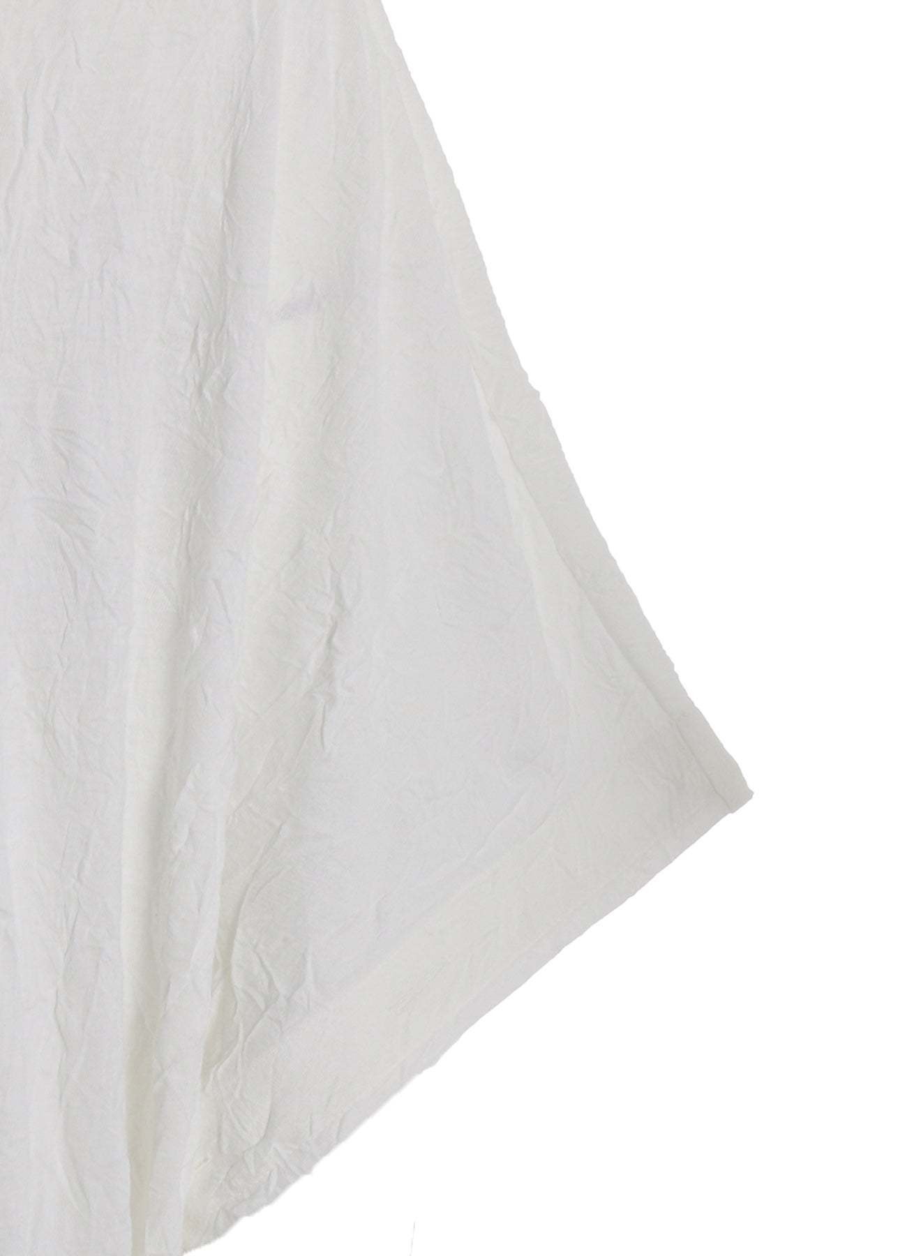 2025春夏系列的Ground Y展現出一款具有斗篷設計的A字形上衣,側邊鈕扣是其特色。可搭配襯衫,打造多變造型。這款面料由棉和聚酯纖維混紡製成,通過手工皺摺處理,擁有自然的質感和獨特的紋理。