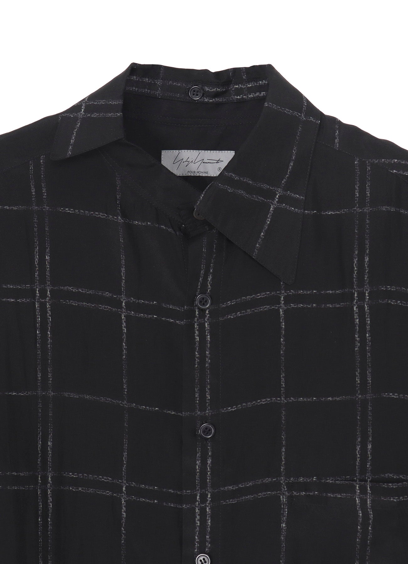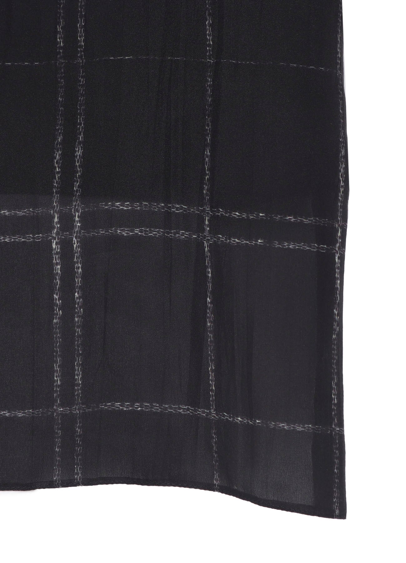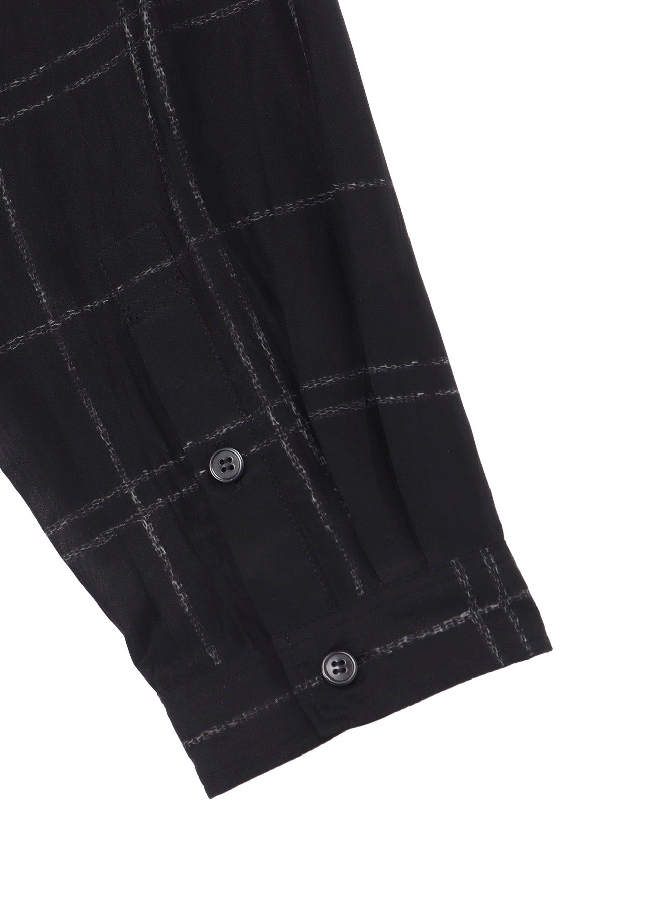 這款不對稱上衣採用光澤細膩的Habutae面料製成,8 monme Habutae賦予衣服獨特的平衡和時尚的懸垂感。透過京都工廠的噴墨印刷工藝,將圖案精緻印製於面料上,呈現出細膩的格紋。