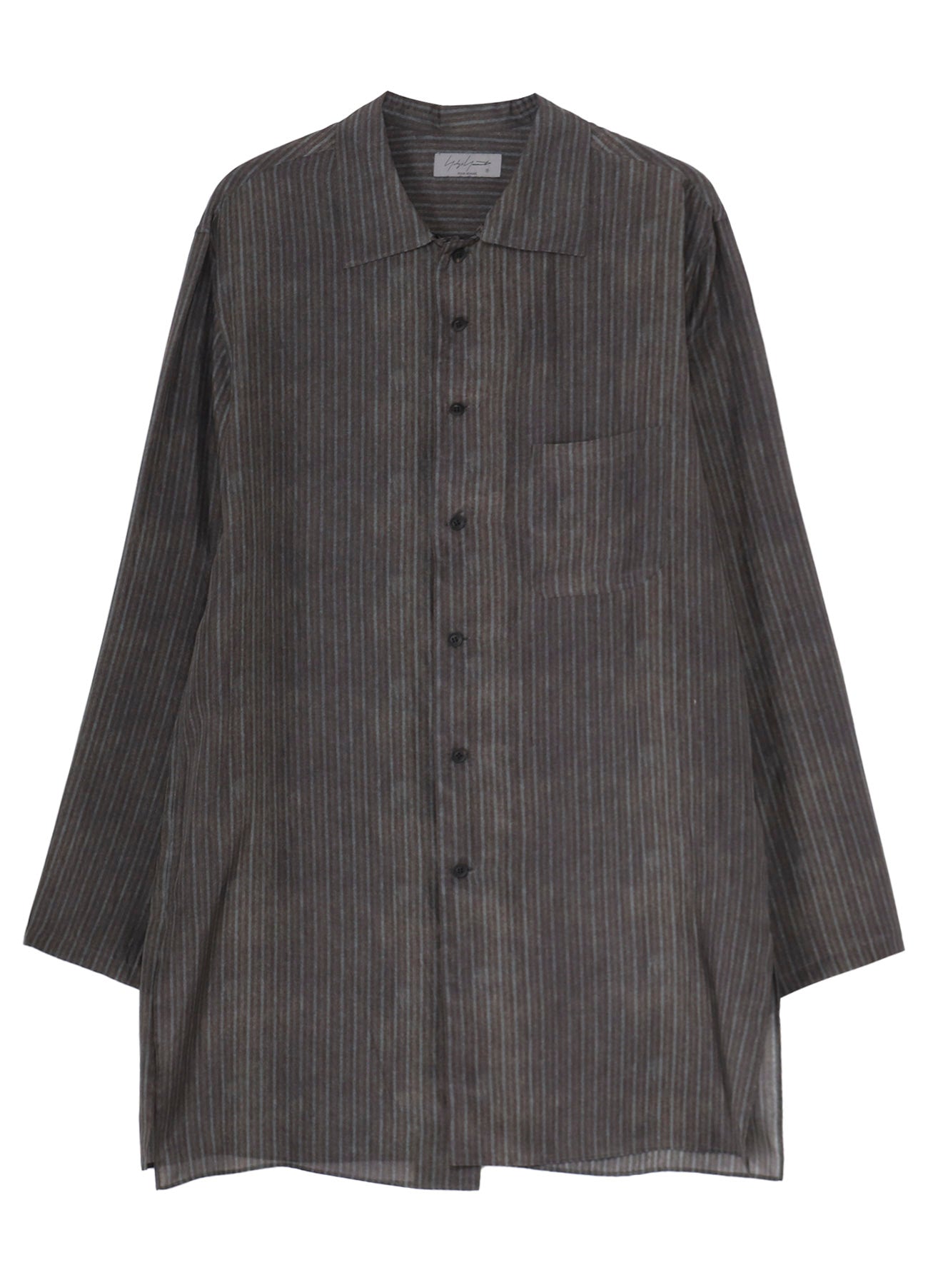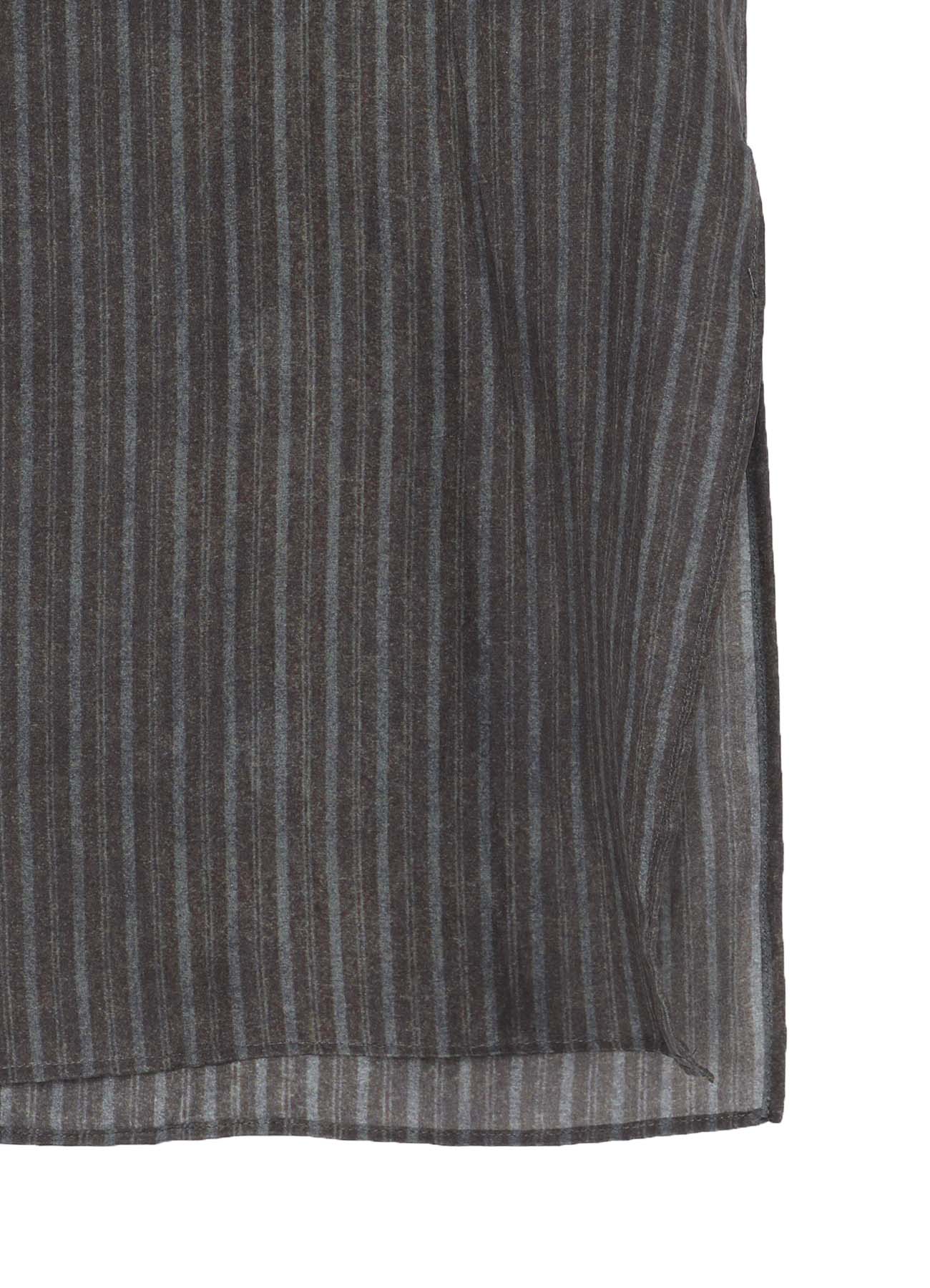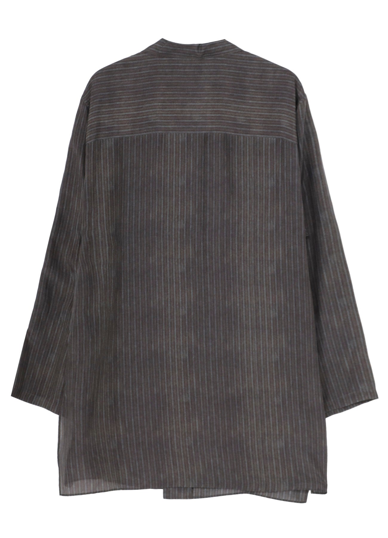 這款絲綢上衣具有獨特的感性感和優雅的光澤,採用的是在京都設施中進行的噴墨打印工藝製成的獨特手工染色條紋圖案,其獨一無二的質感來自於墨染工藝,並會隨著時間的流逝優雅地變化。