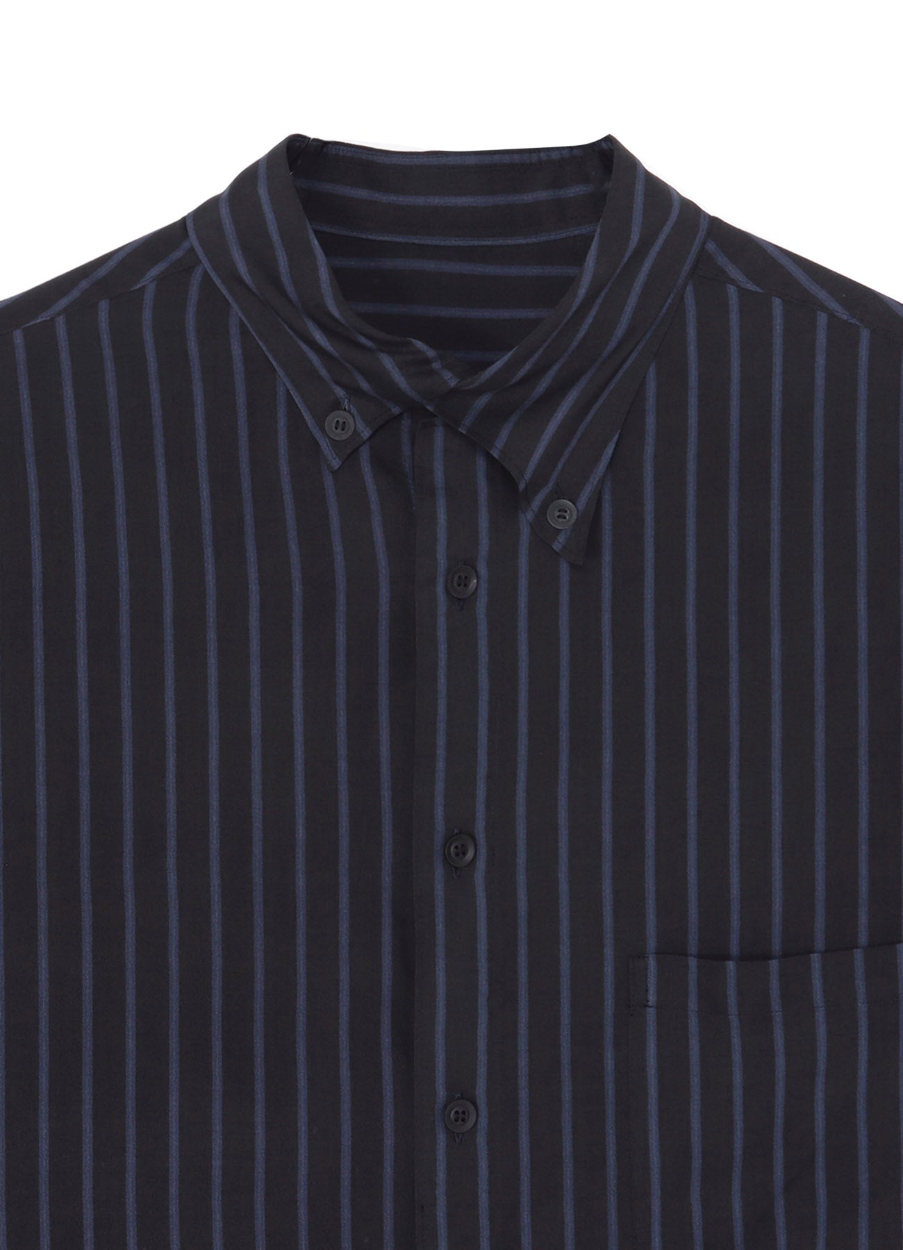 這款襯衫使用細支的micromodal lawn布料,搭配格子圖案,展現柔軟和舒適的觸感,並具有輕微的透視感。衣領和正面不對稱的設計營造出獨特的外觀。