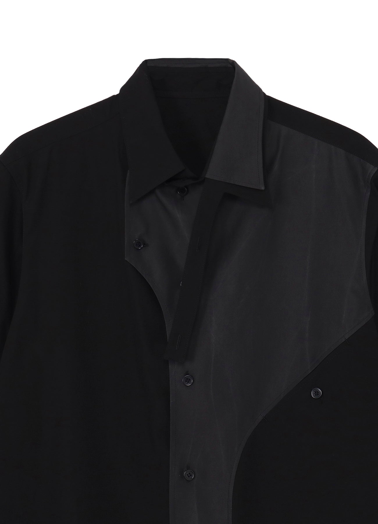 來自Yohji Yamamoto POUR HOMME S/S 2026系列的非對稱短袖上衣,以100支双糸經緯密度編織的高密度府綢製成。該面料具有表面清晰、質感精緻的特點。經過水洗滾筒整理工藝,呈現出立體感與豐富的質地效果。