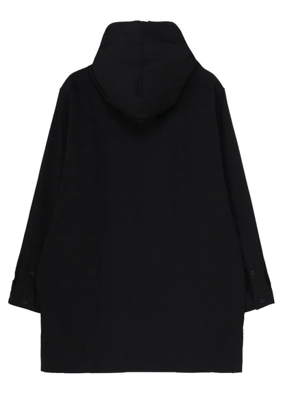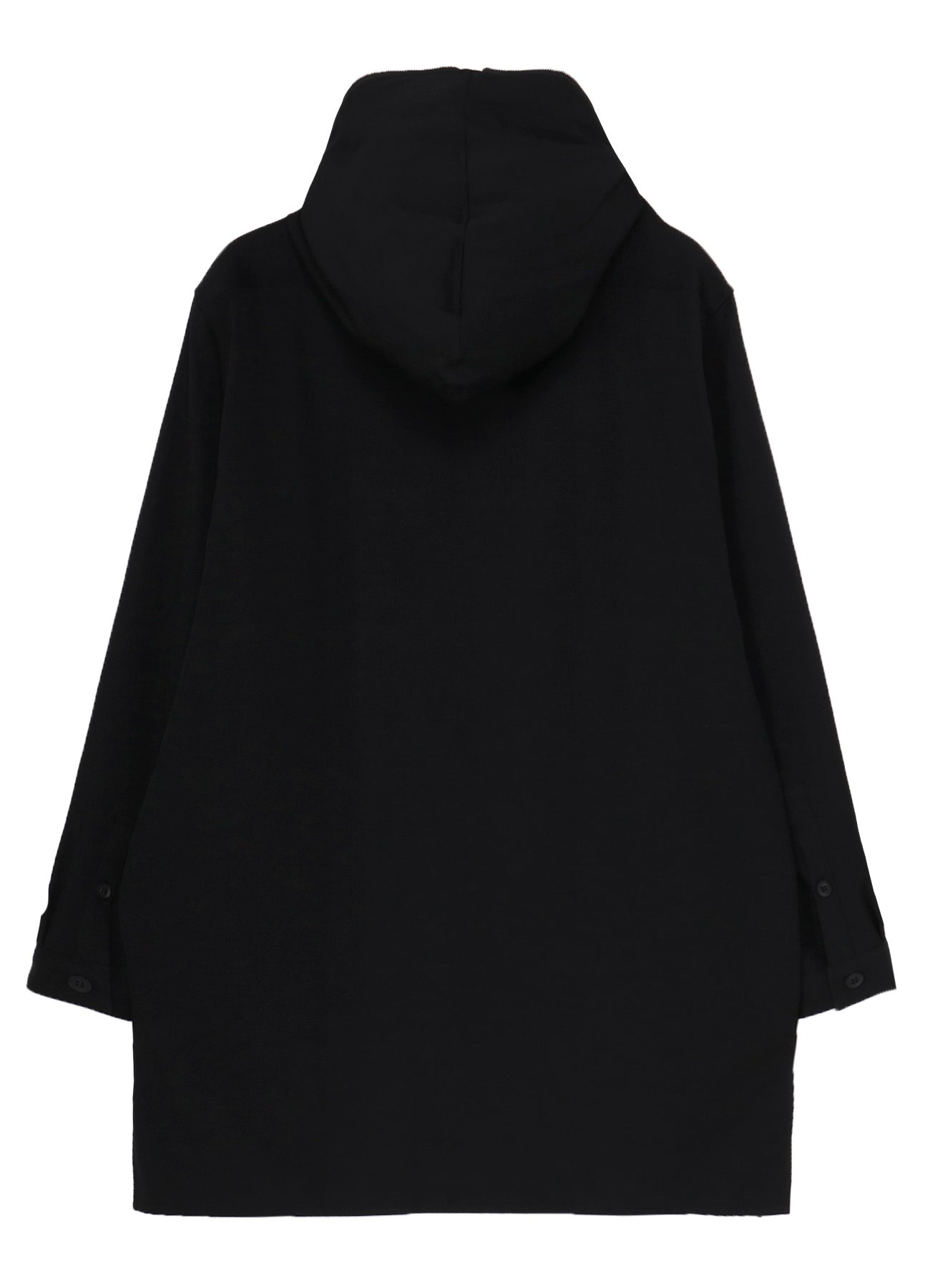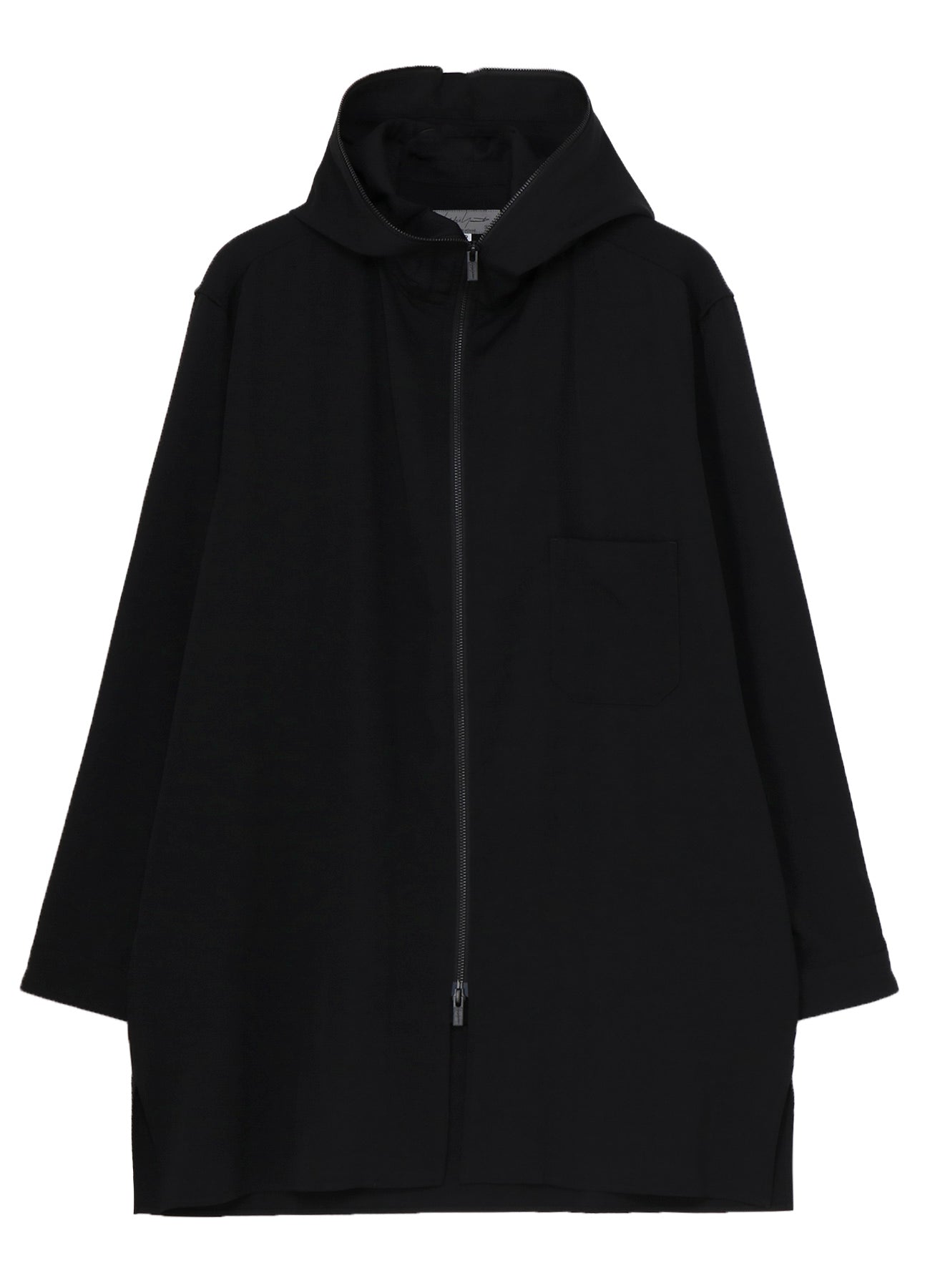 WOOL GABARDINE ZIPUP HOODED BLOUSE