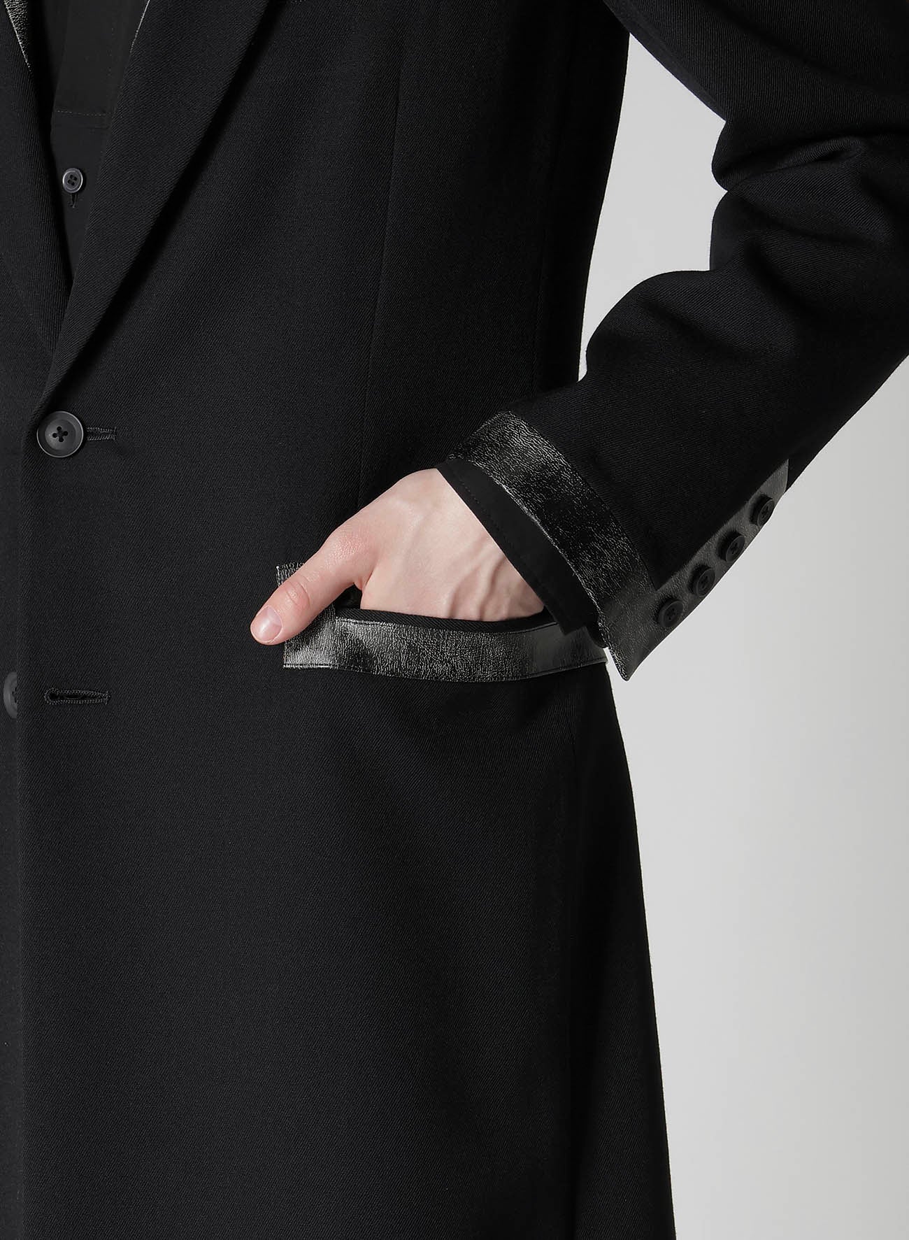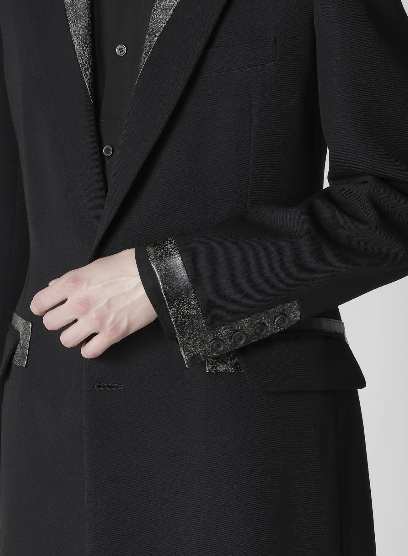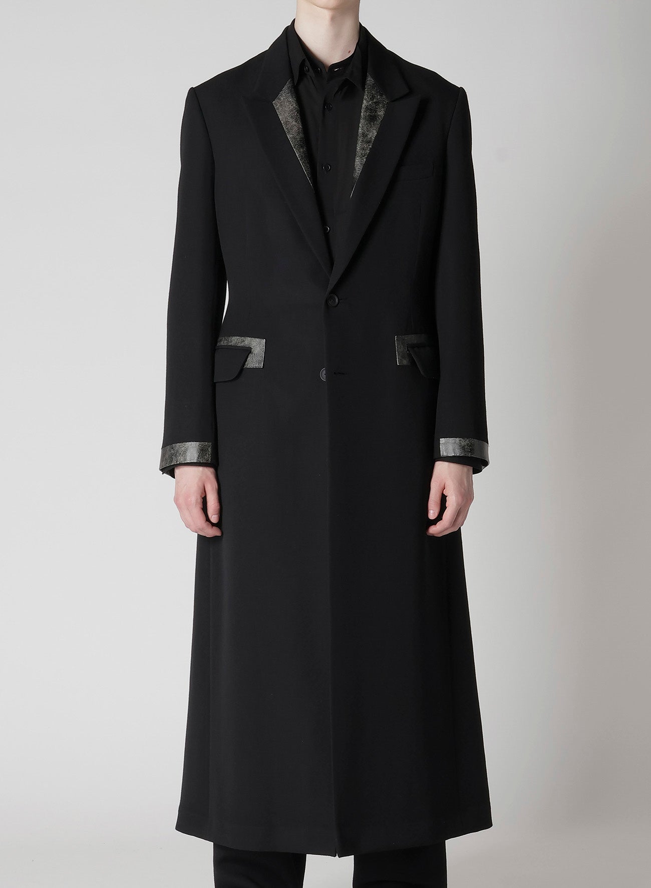 ARMY GABARDINE LEATHER SWITCH LONG JACKET