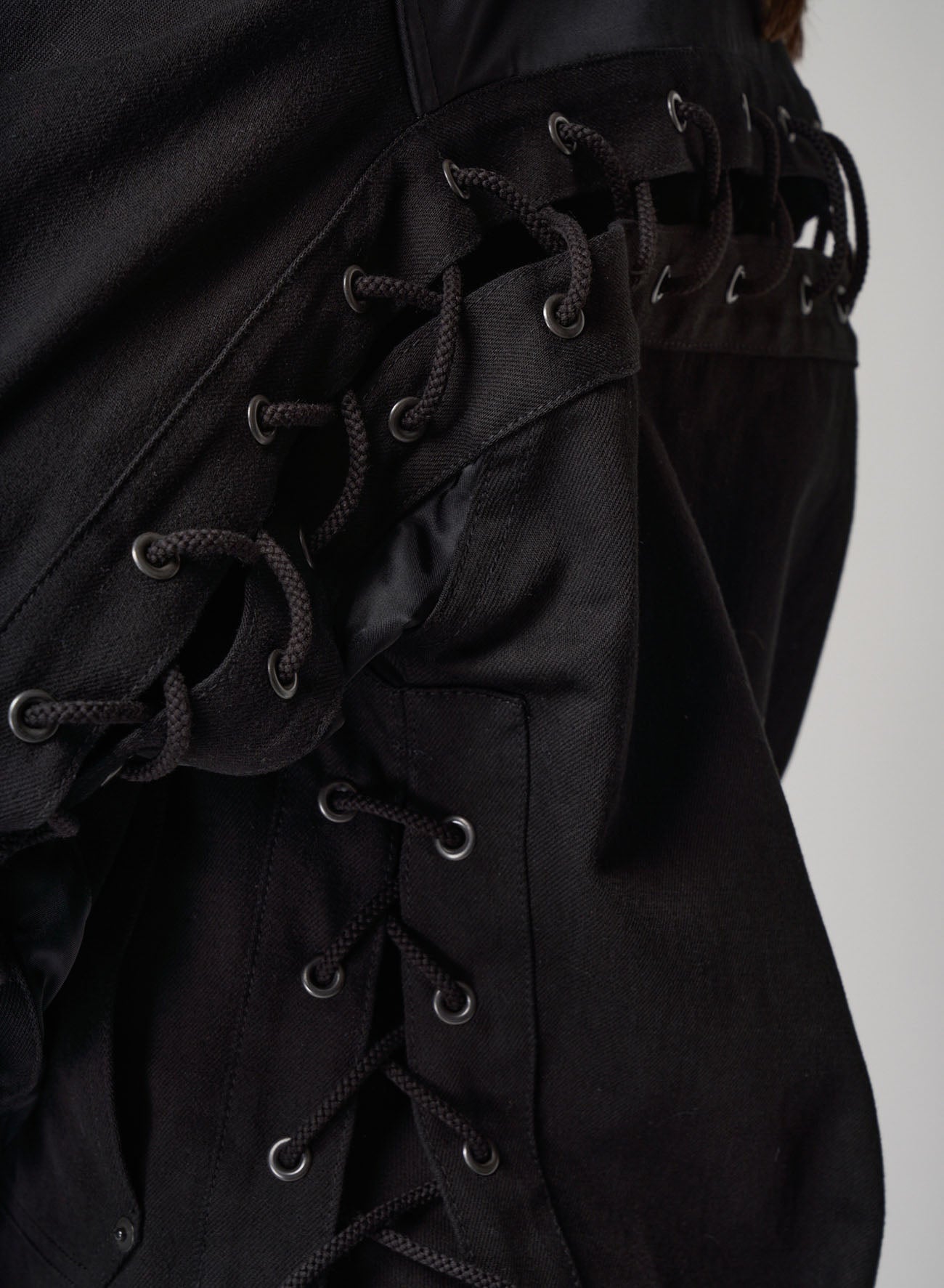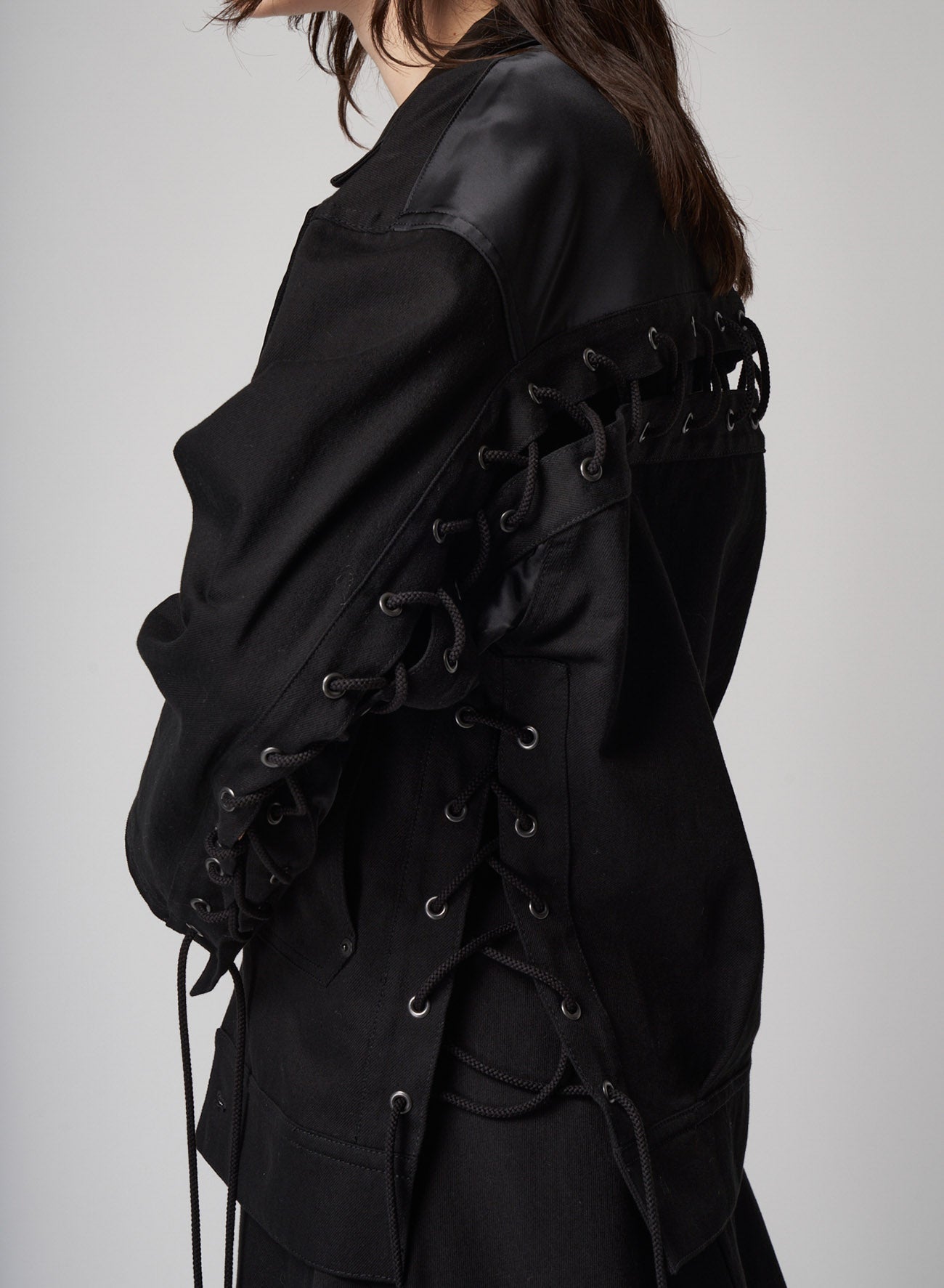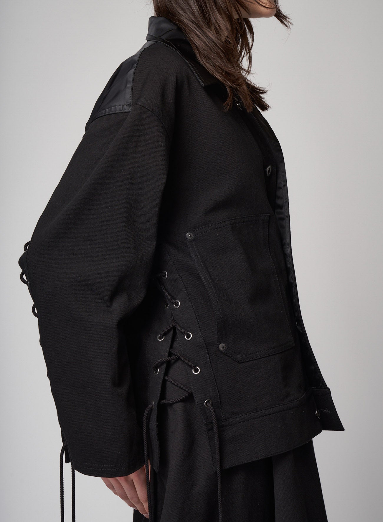 Denim + Ny Twill Combination Back Lace Up Blouson