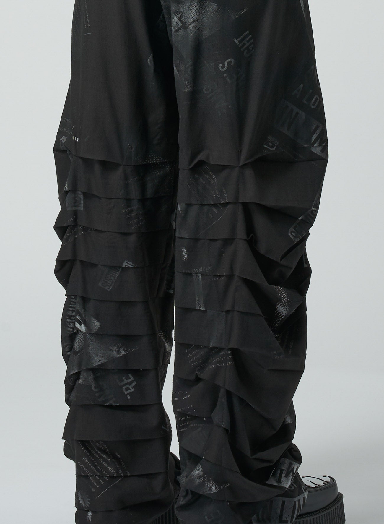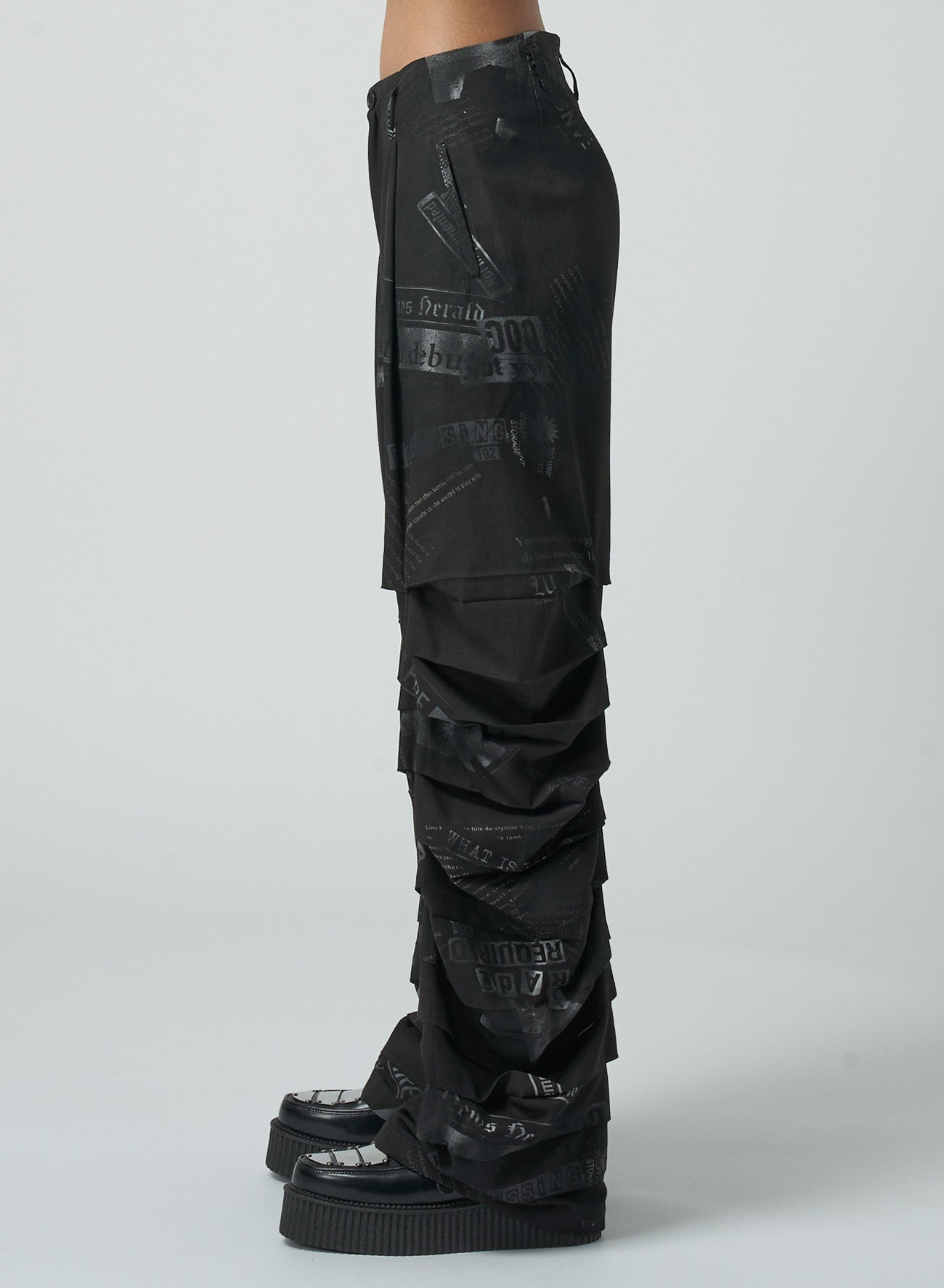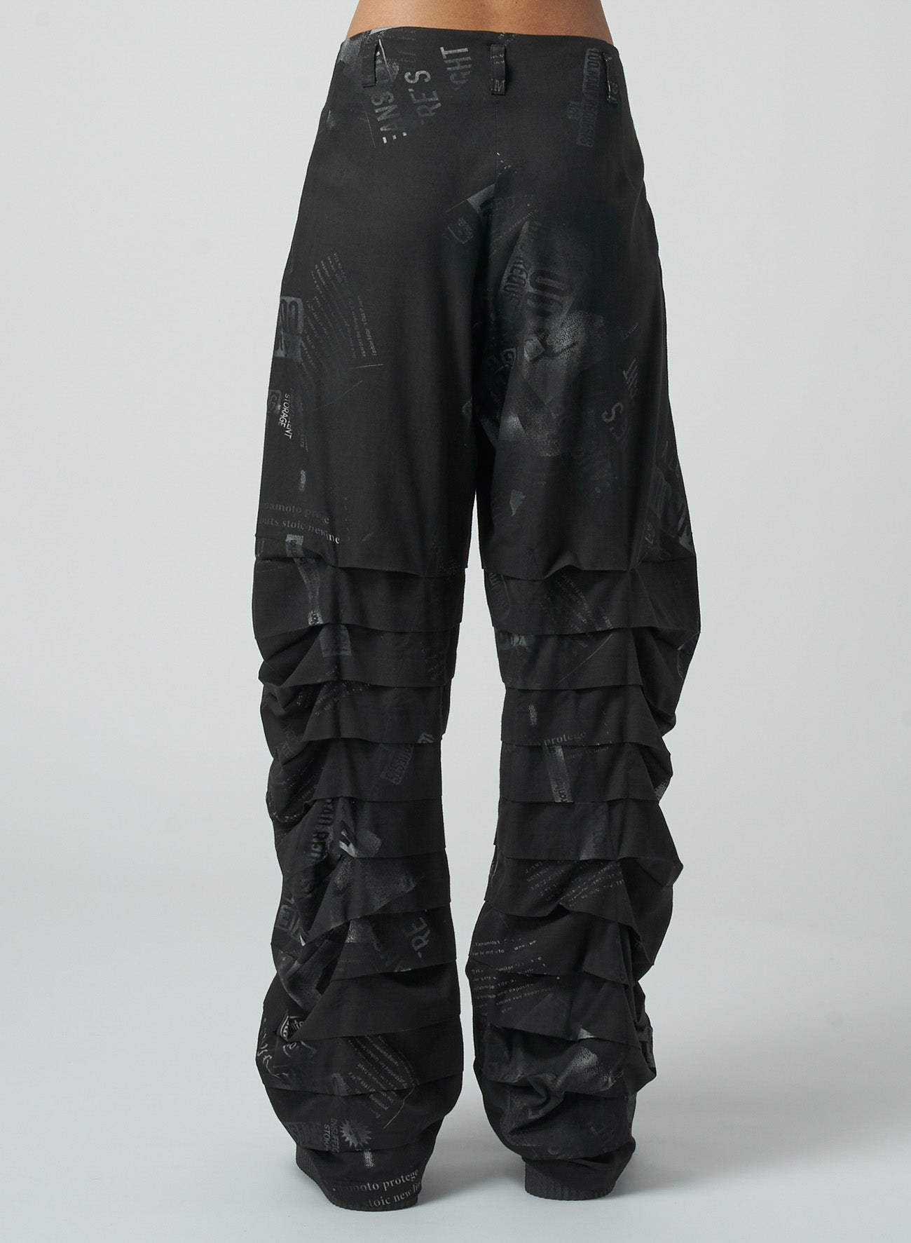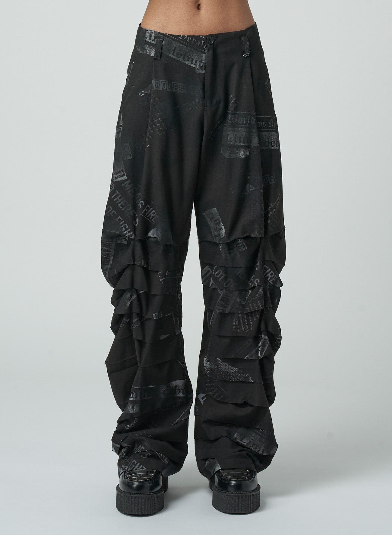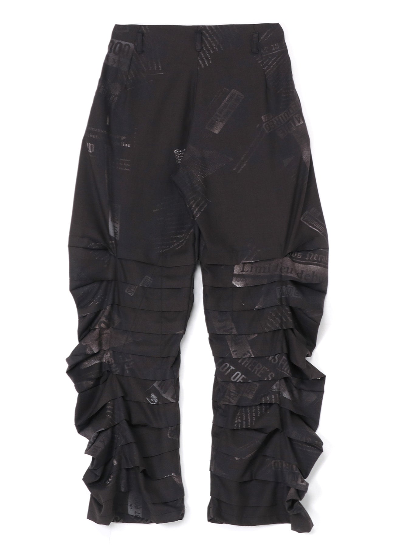 NEWSPAPER PRINT PANTS WITH HORIZONTAL PLEATS