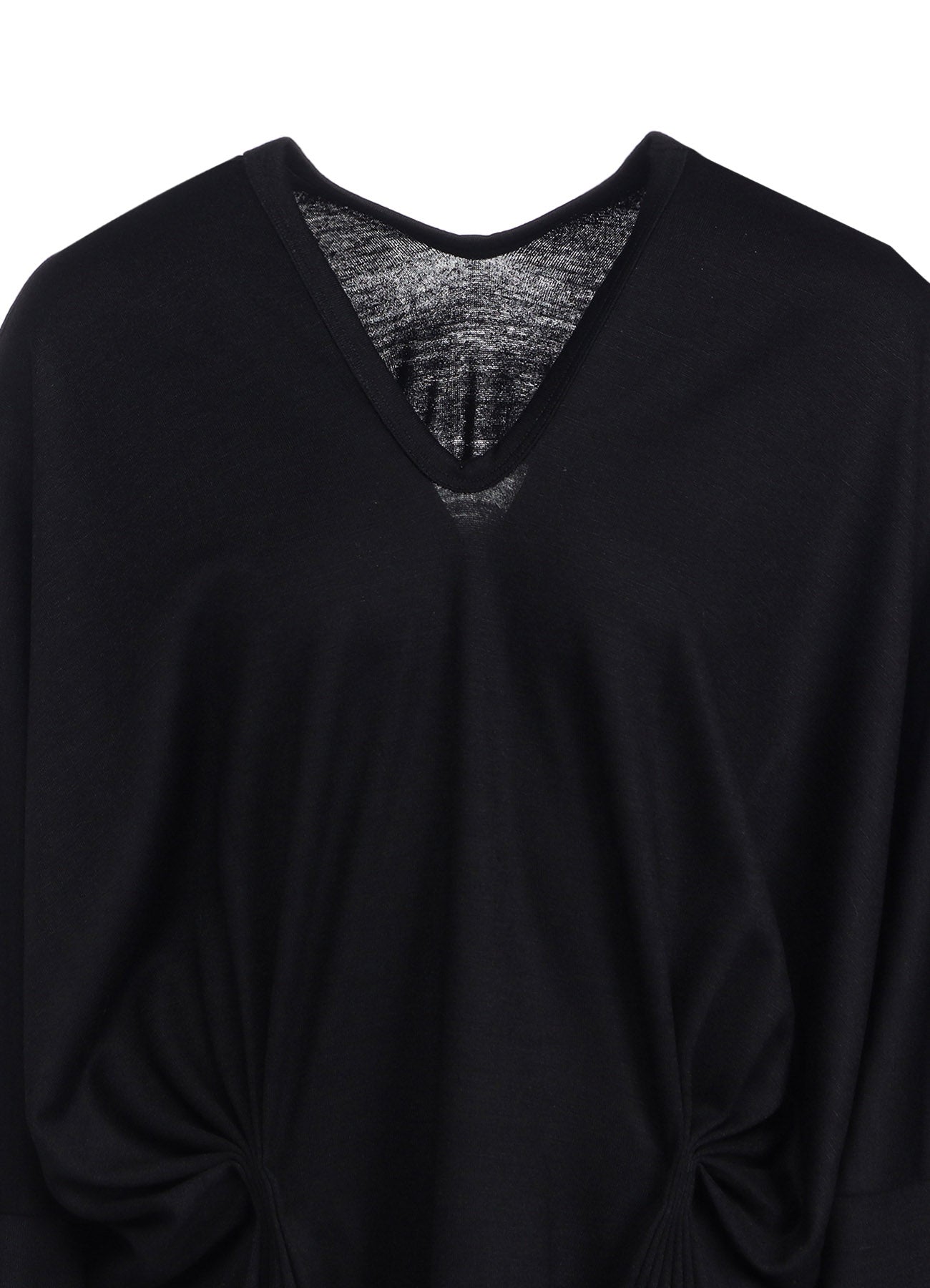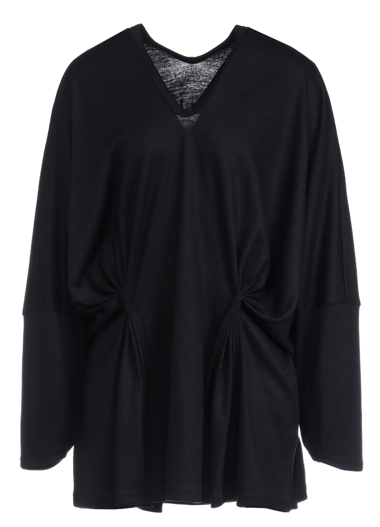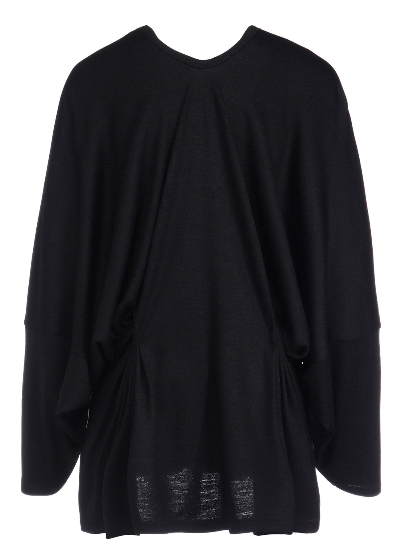 這款輕盈柔軟的羊毛面料具備清晰的質感、良好的垂墜性及高彈性。它是一件具備寬擺線條的女性上衣,袖子舒適,V形領口及腰圍設計提供無壓的舒適感,同時保持精緻的外觀。