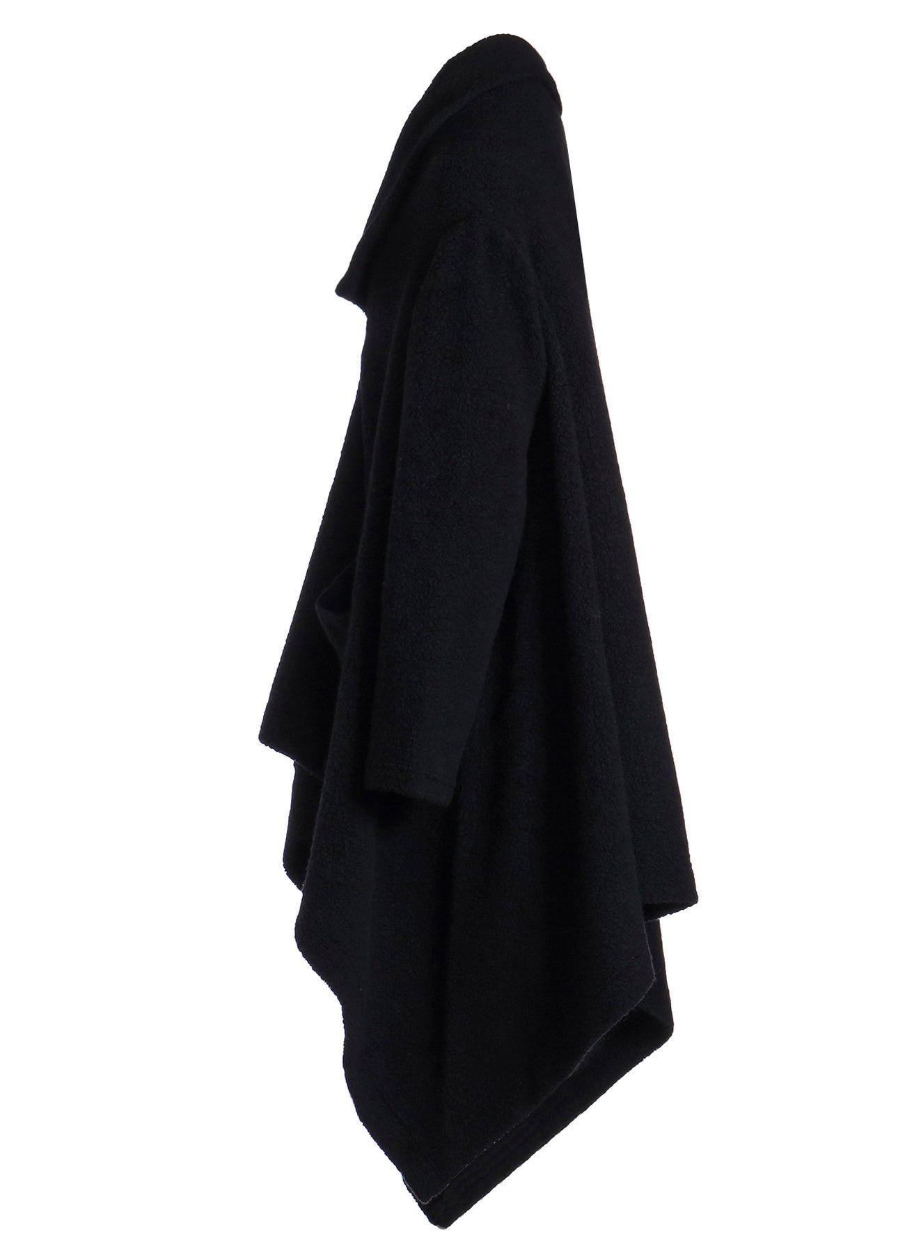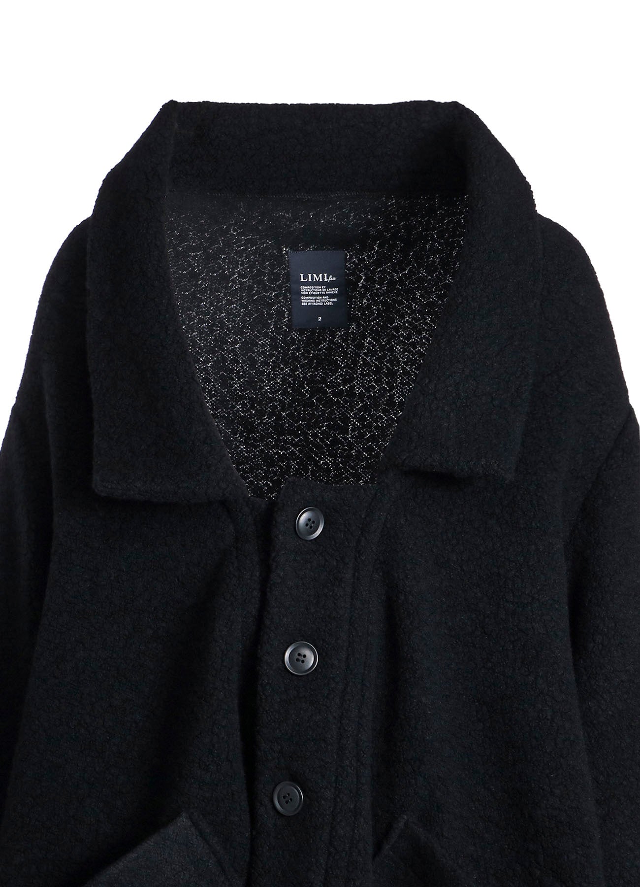 這款外套採用蓬鬆的羊毛堆料製成,具有類似羊毛的柔軟、溫暖和輕盈的質感。廣闊的領口設計,讓下擺展現披風般的輪廓,即便外觀厚實,輕便的材質依然適合日常穿著。