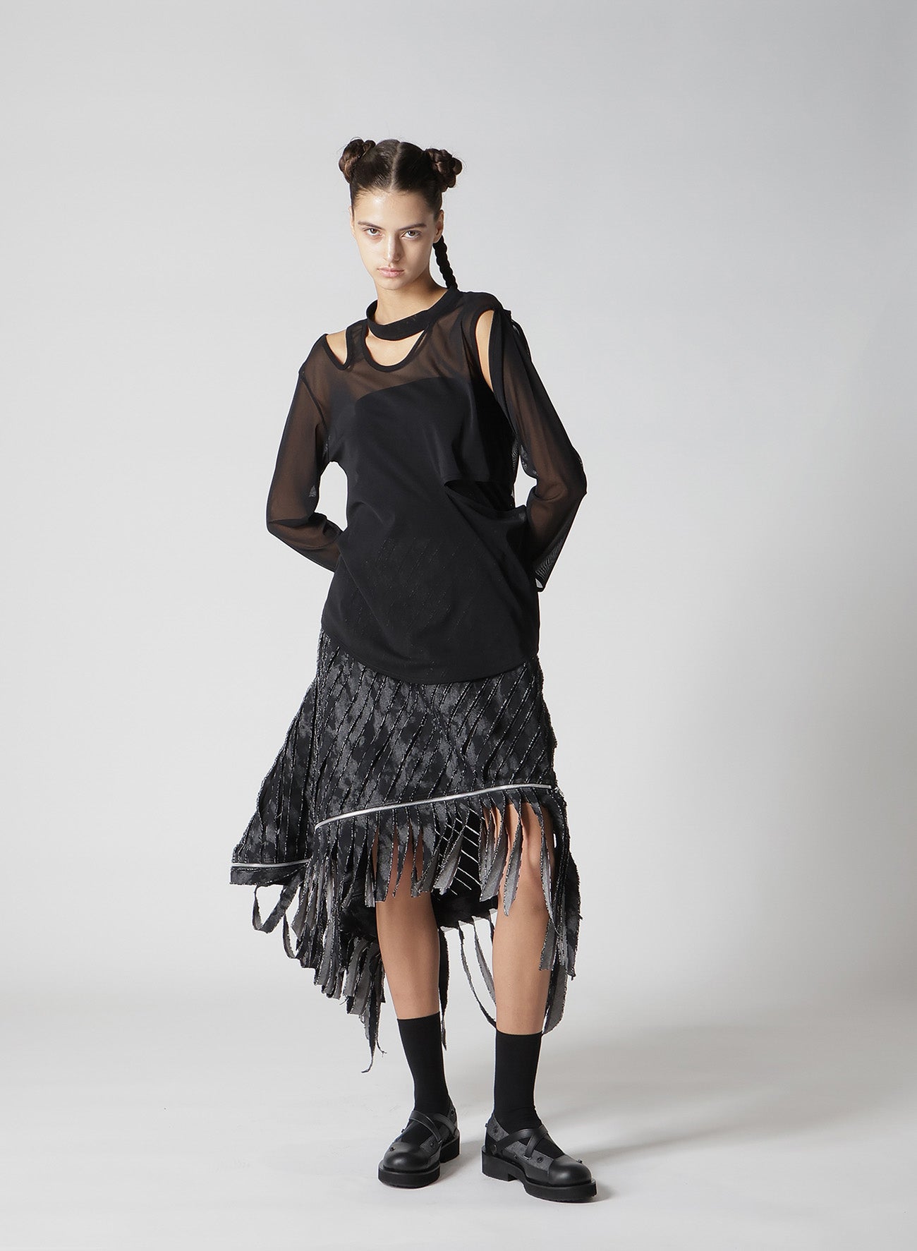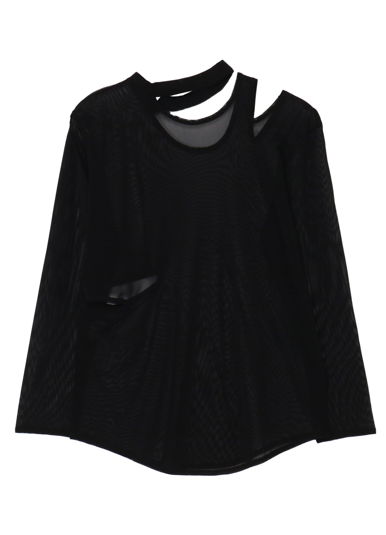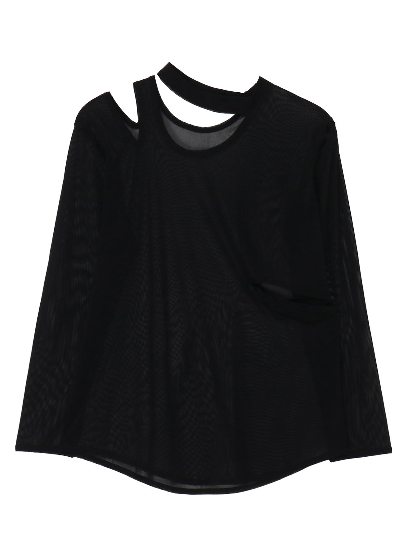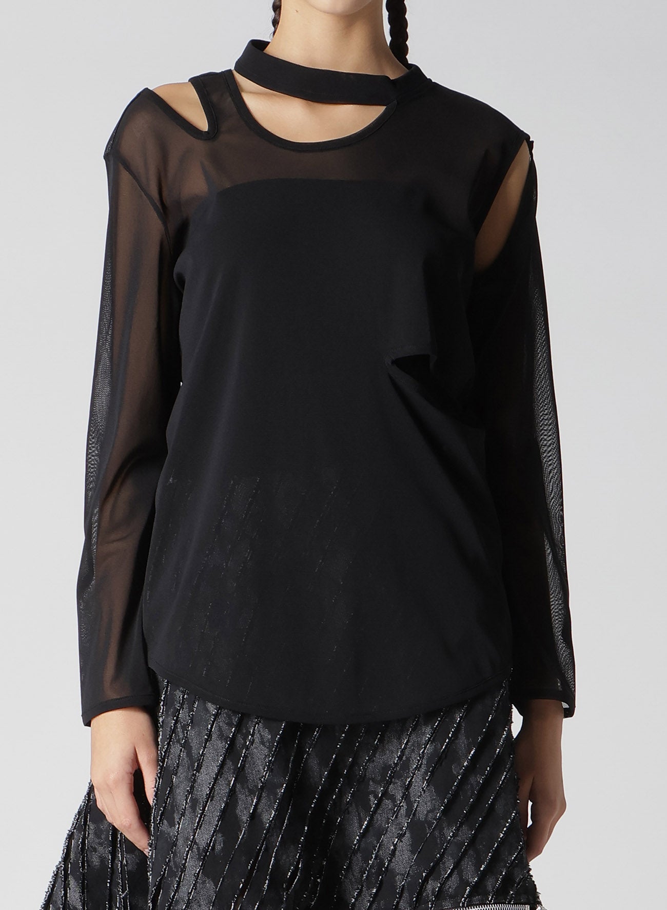 TULLE SLIT LONG SLEEVE T-SHIRT