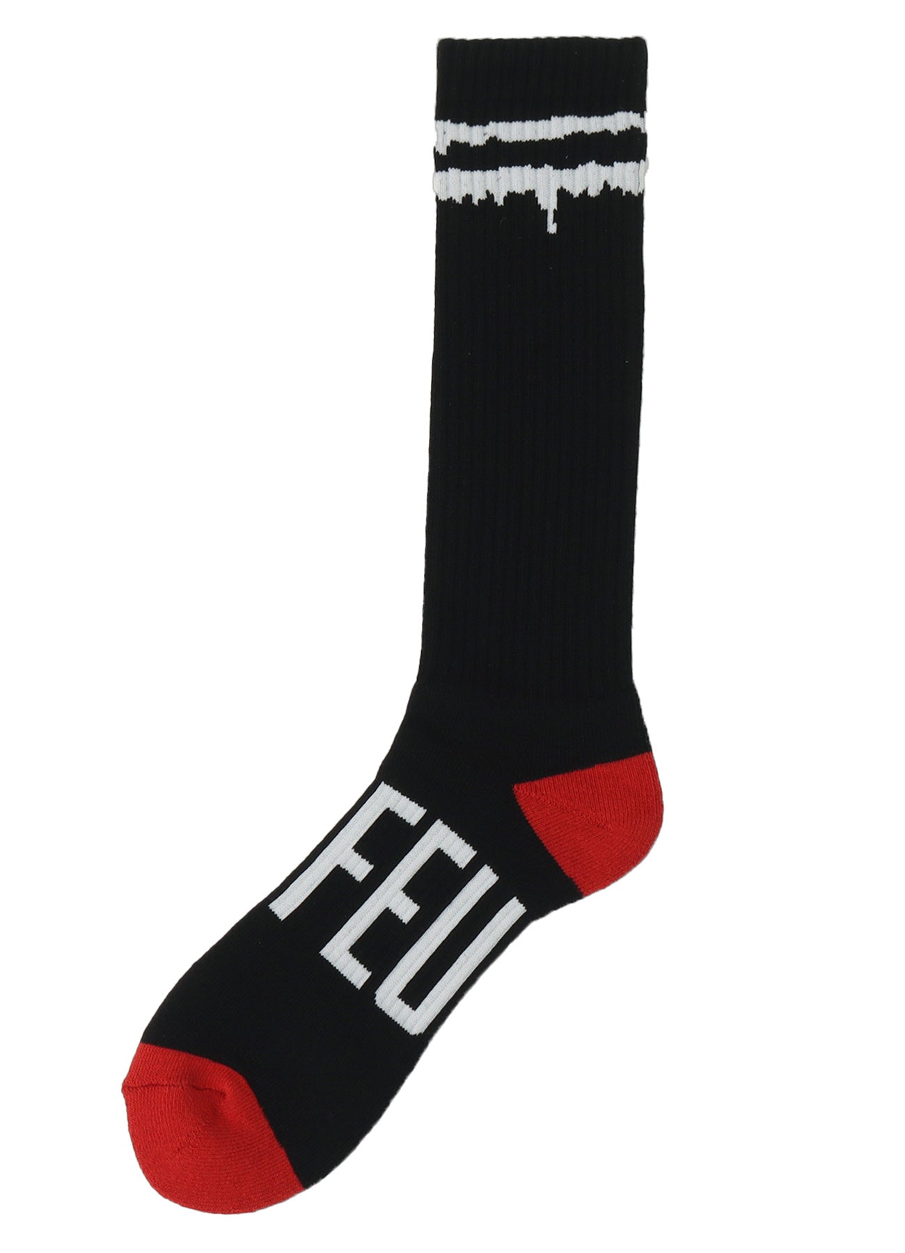 這款滑板襪採用厚絨面料,手感奢華。它與本季時尚的高筒運動鞋搭配得宜。設計包括滴落條紋和顯眼的標誌在腳背上。