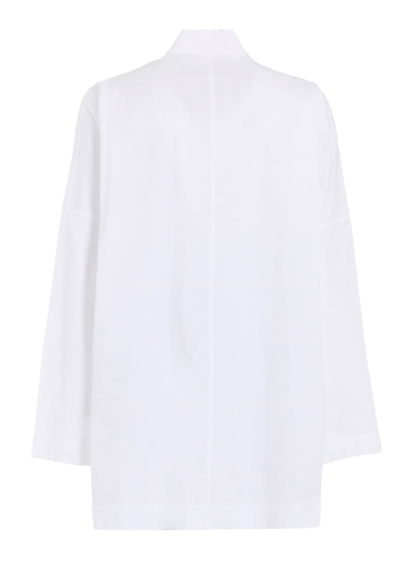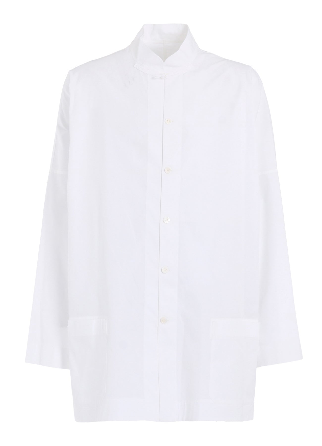 這款棉質平紋襯衫採用品牌的高密度面料,表面光滑。襯衫第一顆鈕扣獨特的佛頭鈕扣設計,搭配其輕鬆的輪廓,是一件兼具風格與舒適的獨立單品。