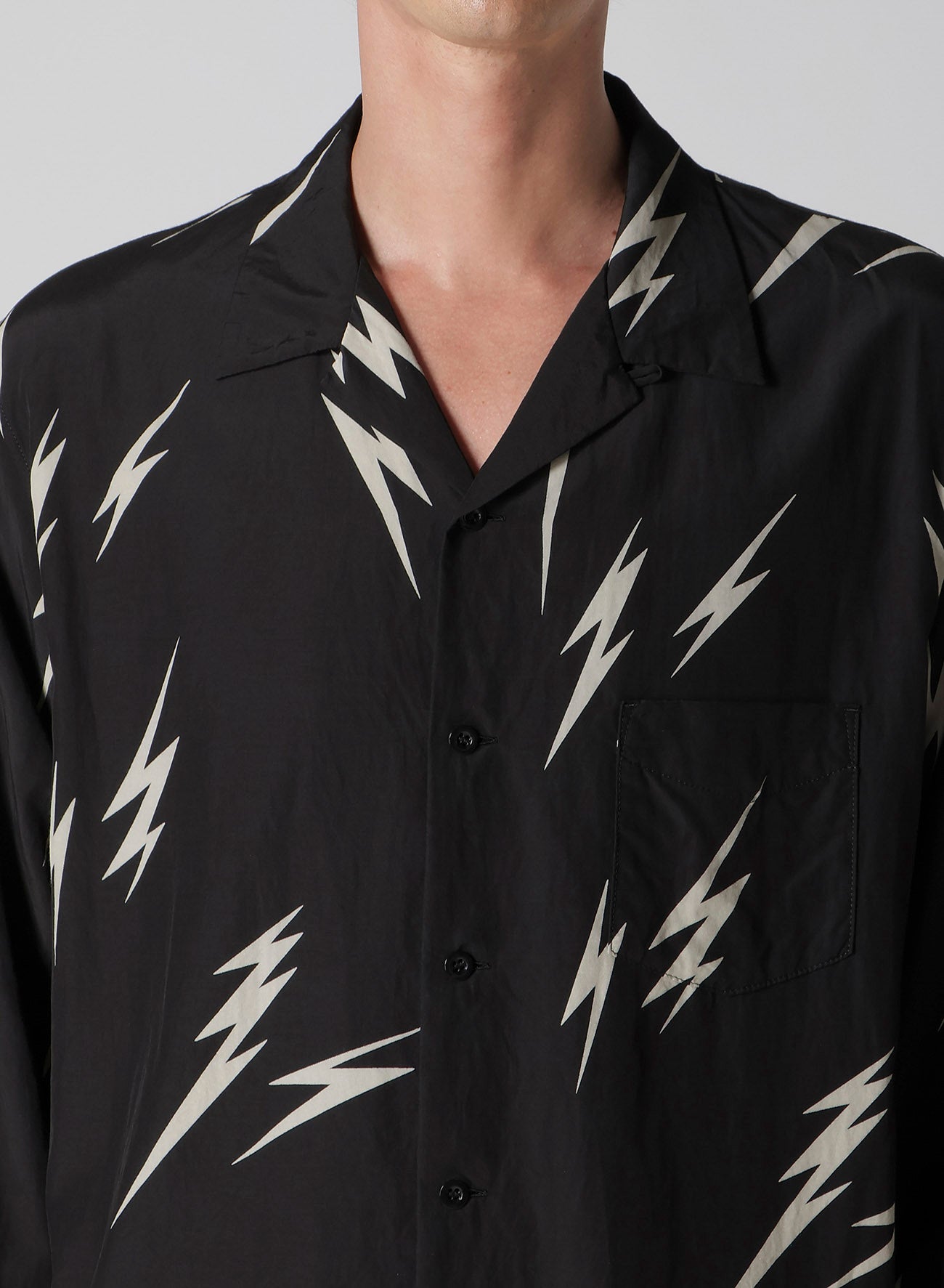 This unique Y's for men × MASSES collaboration features a lightning-patterned long-sleeve open-collared shirt made with a stripe fabric that mimics the texture of dobby weave. The classic elements include a sharp collar, patch pocket, loop closure on the first button, and box-shaped hem. Matching pants are available.