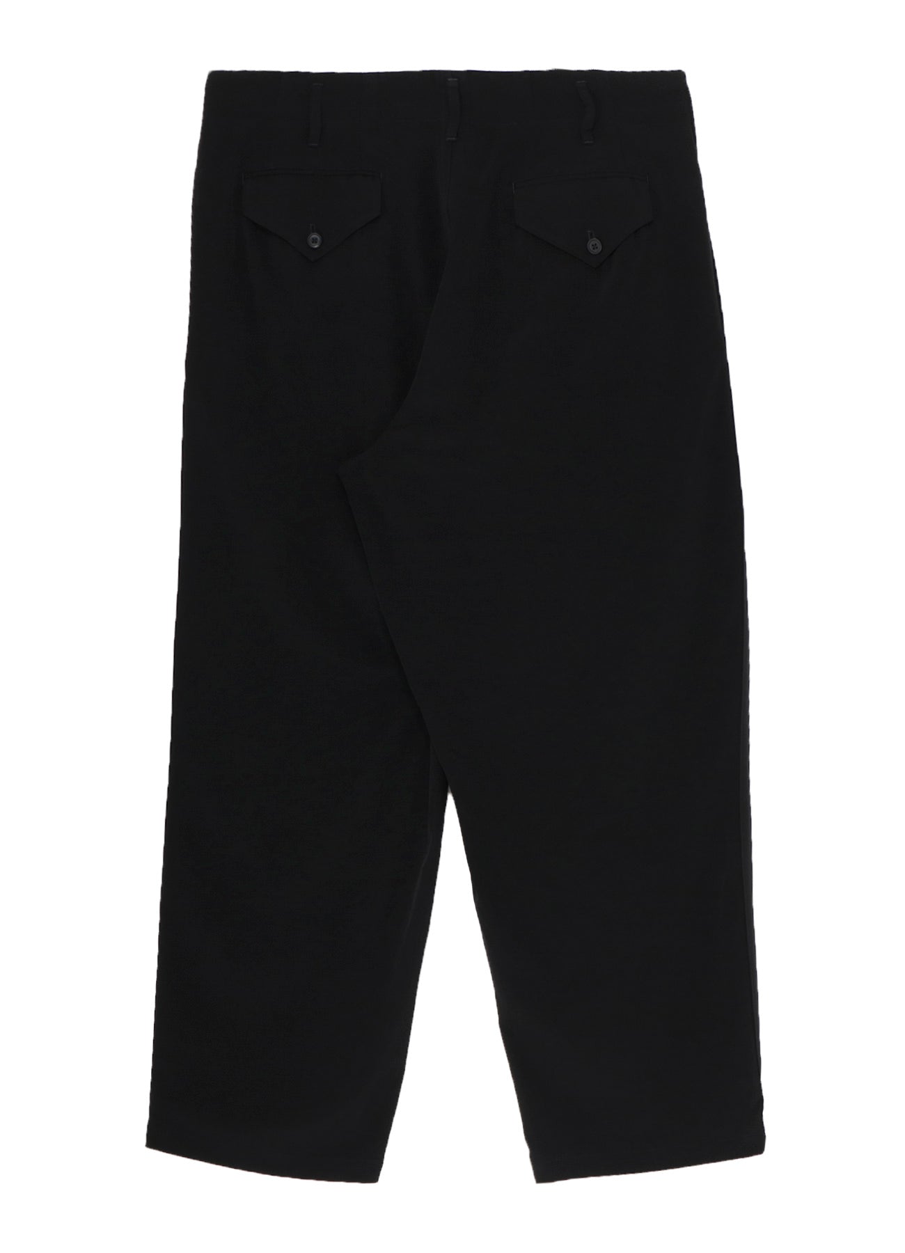一款Yohji Yamamoto褲子,採用其招牌醋酸纖維/聚酯布料,設計特點在於從腰帶環延伸至褲腳的側邊裝飾帶。此款設計結合微光澤和奢華感,因其抗皺特性,非常適合日常穿著。 - 使用招牌醋酸纖維/聚酯材料 - 腰帶環至褲腳的側邊裝飾帶,風格獨特 - 微光澤帶來奢華感受 - 高抗皺性,適合日常穿著 - Yohji Yamamoto設計